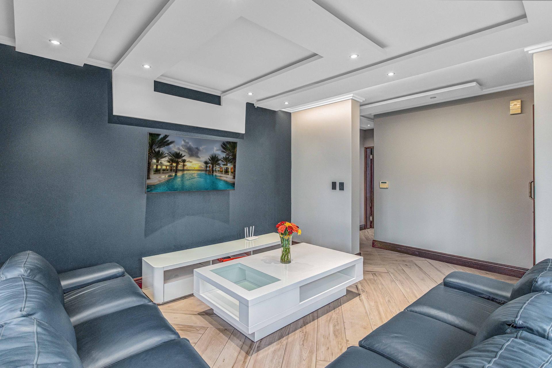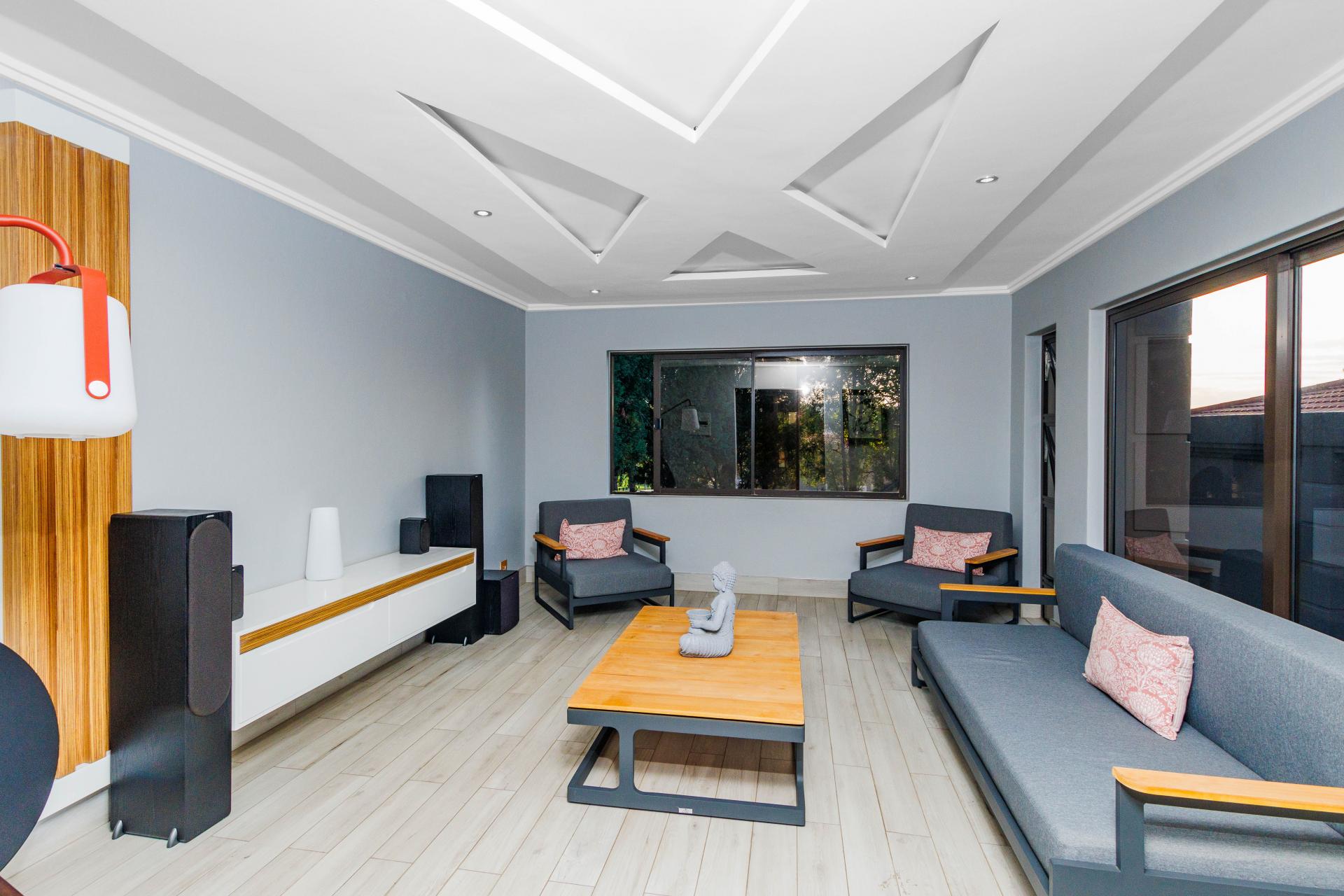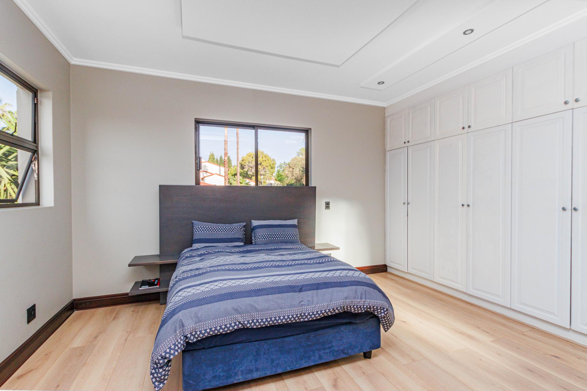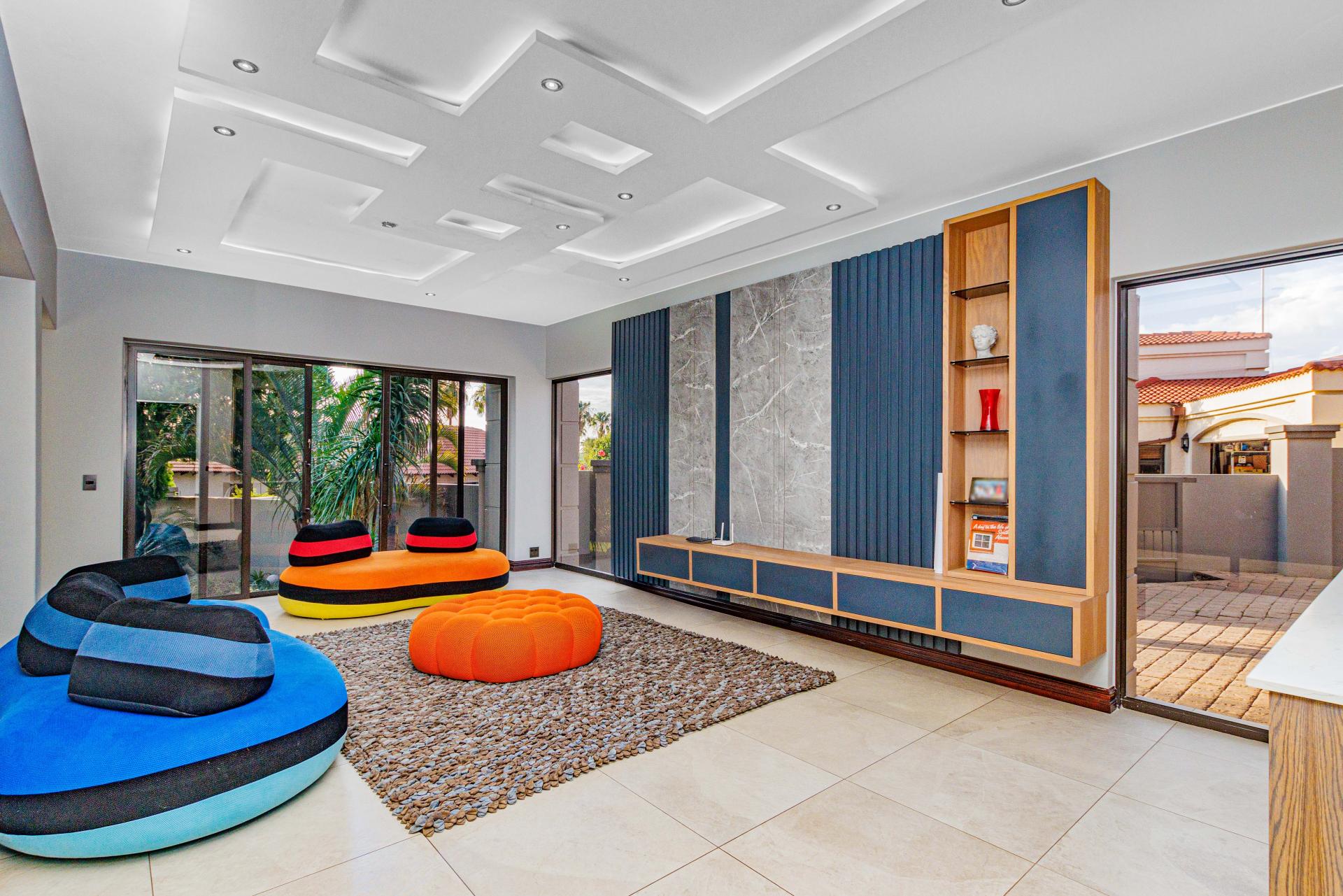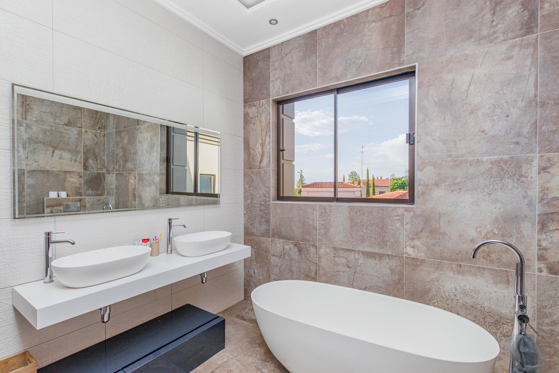 The standout main suite is a true sanctuary, offering panoramic views of Dainfern Ridge, a grand ensuite bathroom, a walk-in dressing room, and a private balcony, double staff accommodation, 3 car automated garage and backup power.