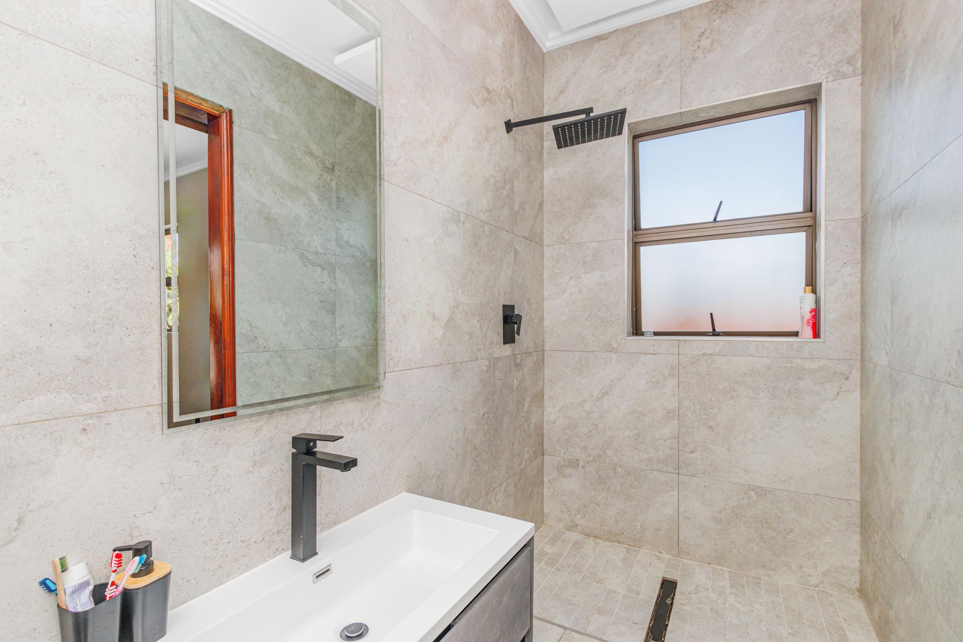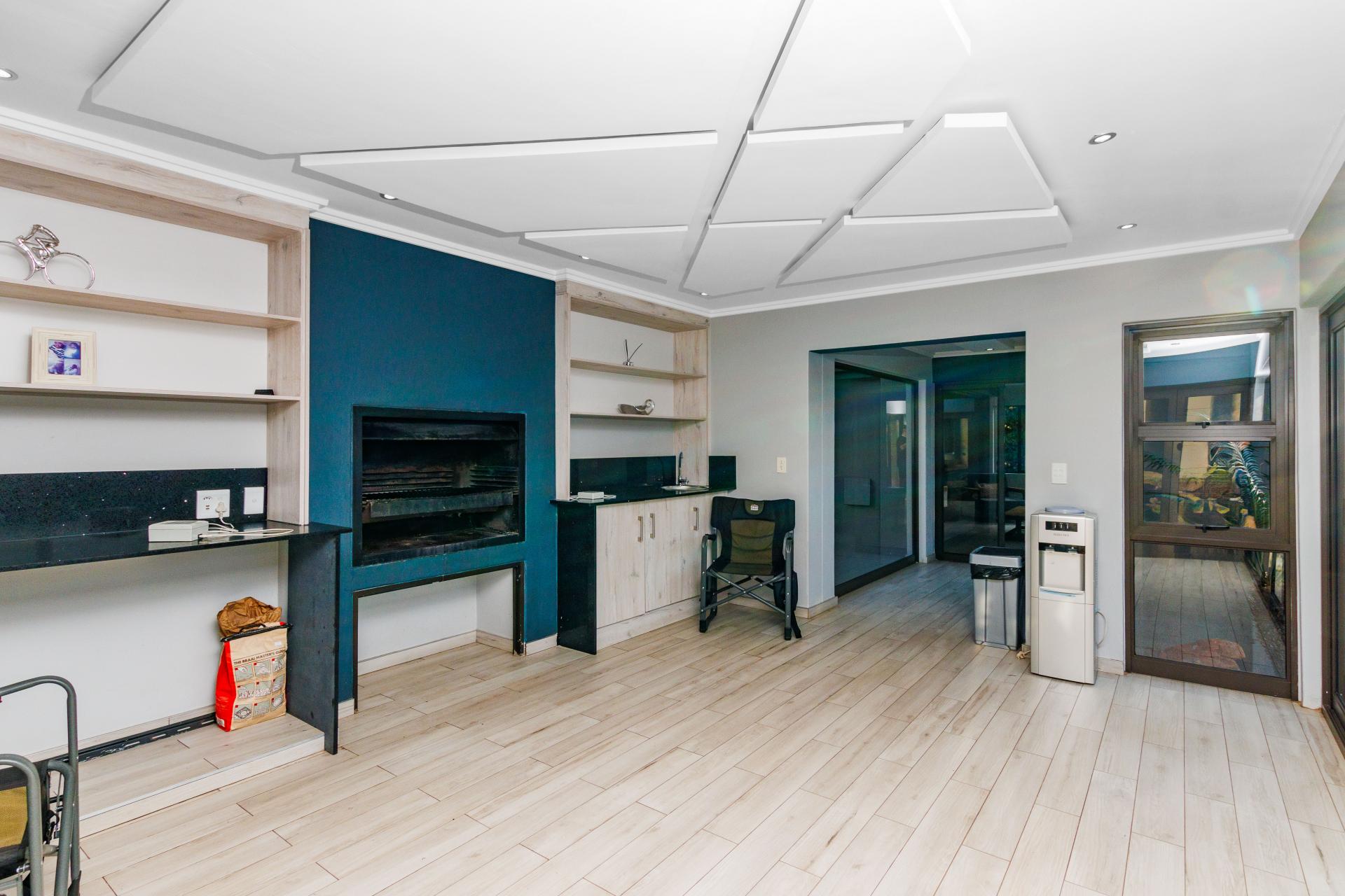 Descend to the pool house, where you’ll find a large patio with a built-in braai (barbecue) and outdoor kitchen, as well as a games room – an ideal space for entertaining family and friends. The 2-bedroom cottage is fully self-contained, with a separate lounge, bathroom, and space for a kitchenette, providing excellent accommodation for guests or extended family.