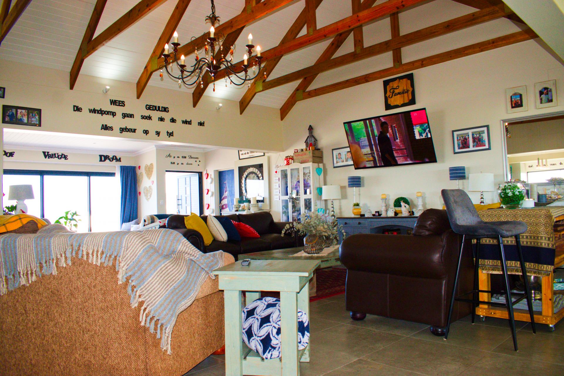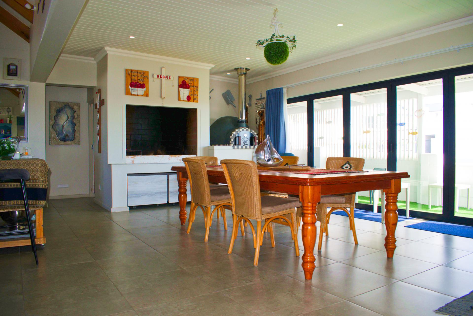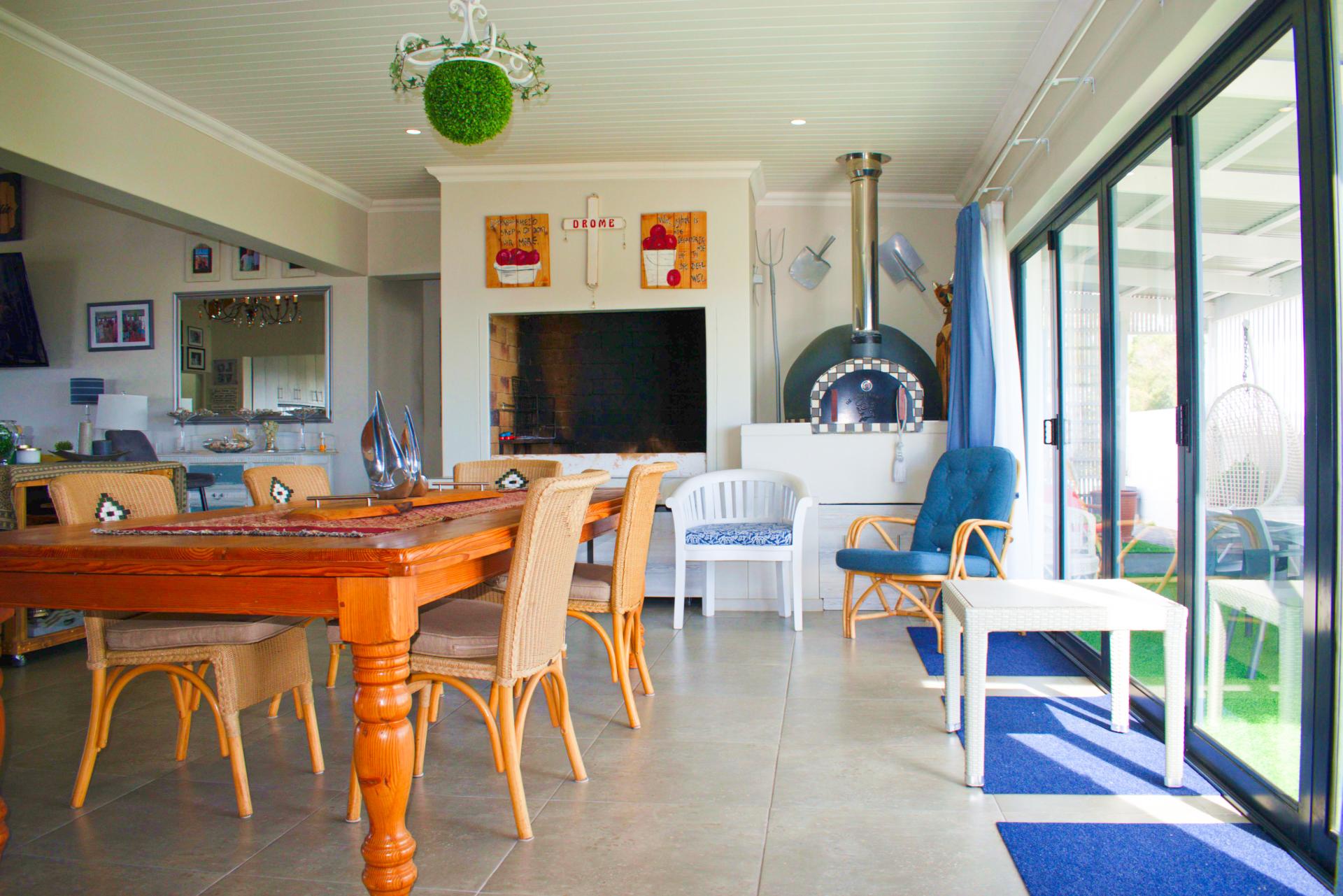 * Large open-plan living area. The lounge leading into the entertainment area with a large build-in braai & pizza oven