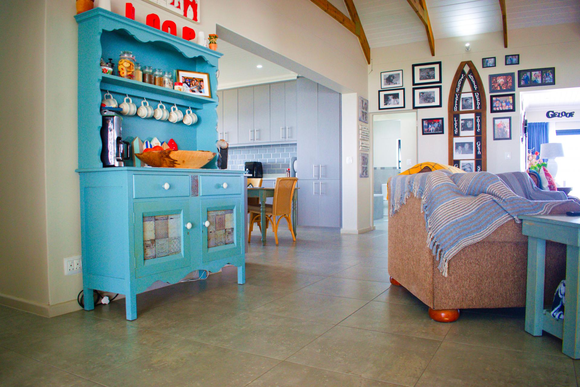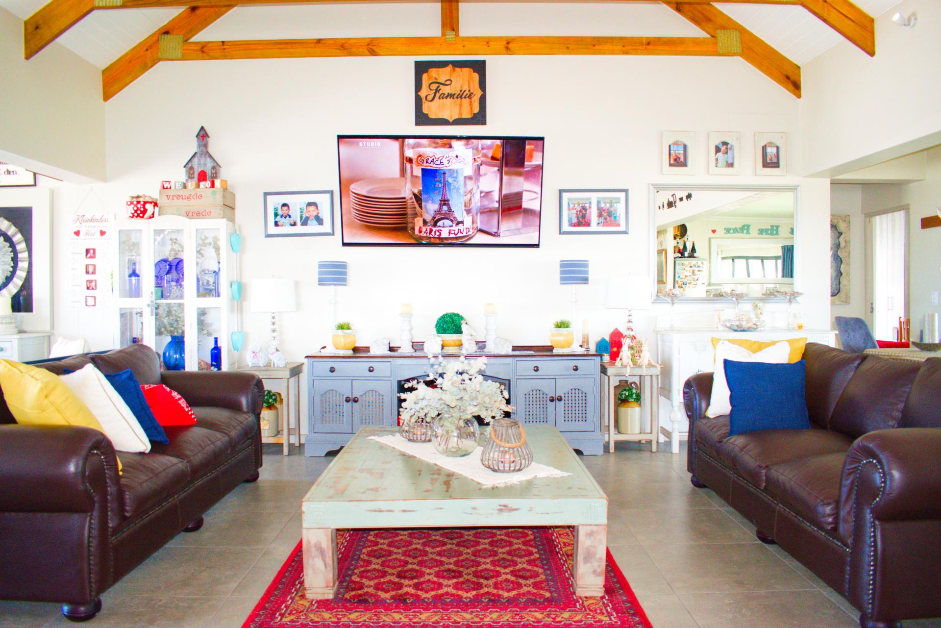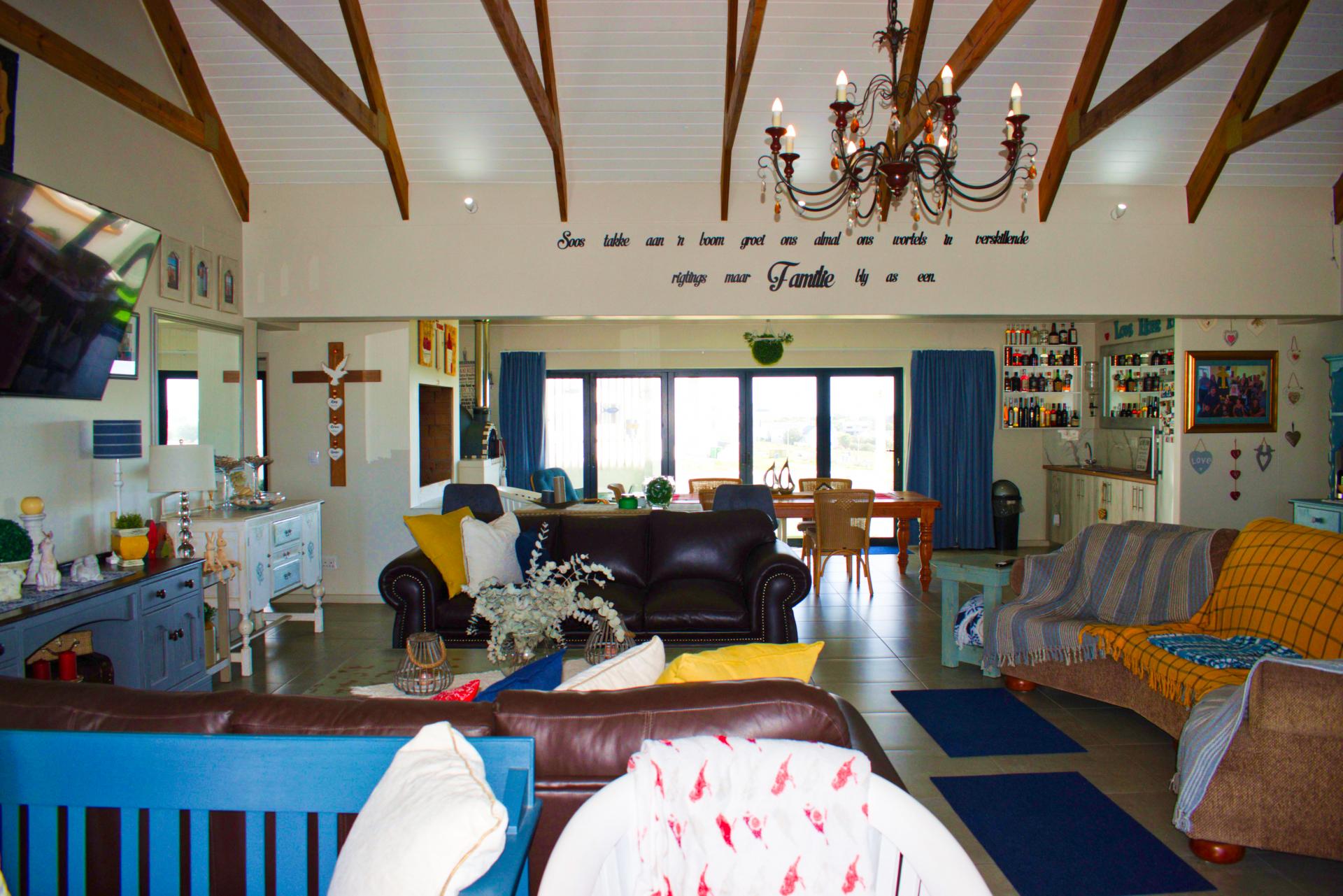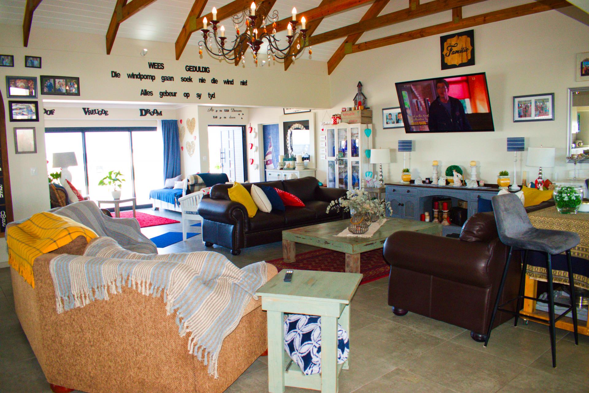 * Large open-plan living area. The lounge leading into the entertainment area with a large build-in braai & pizza oven