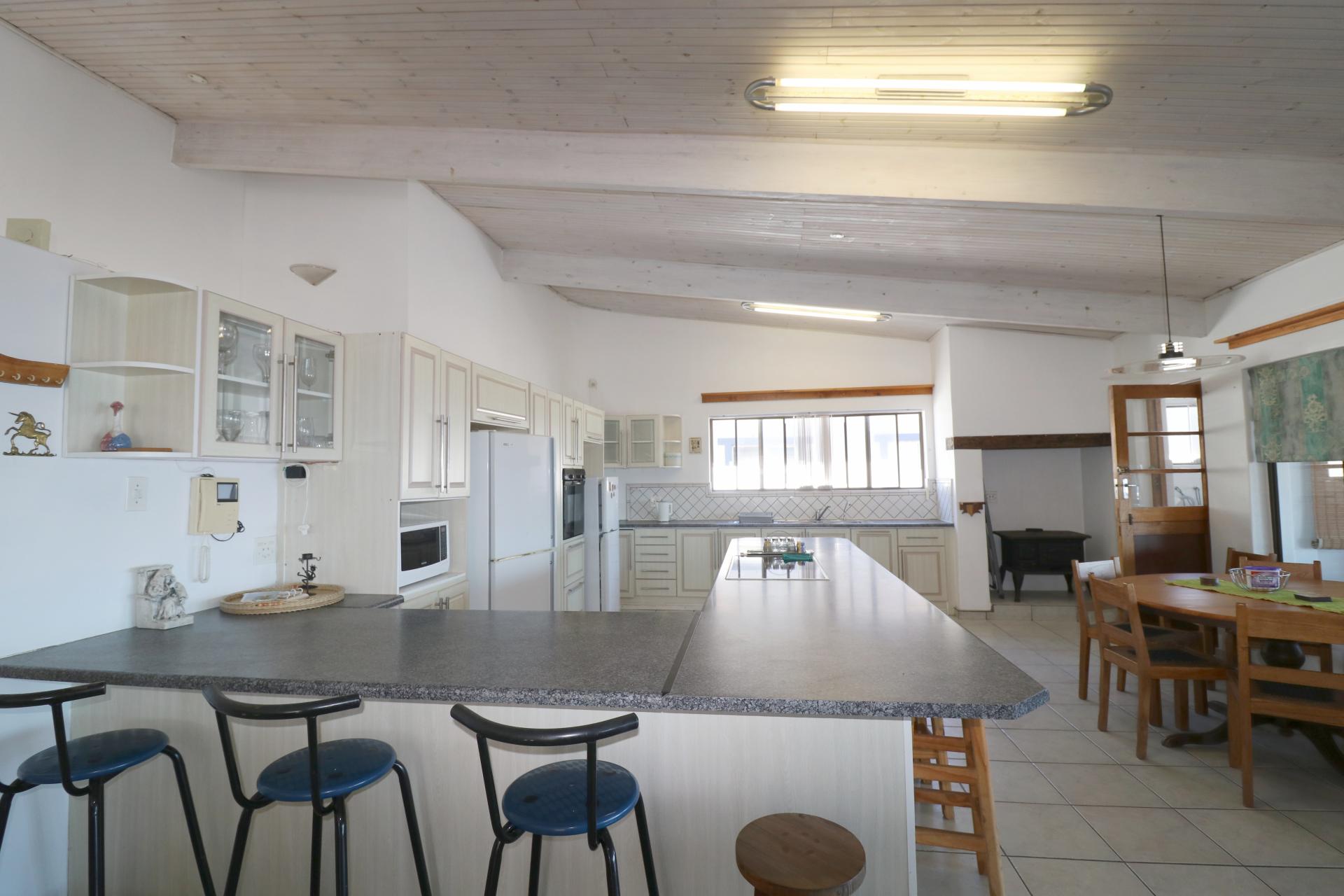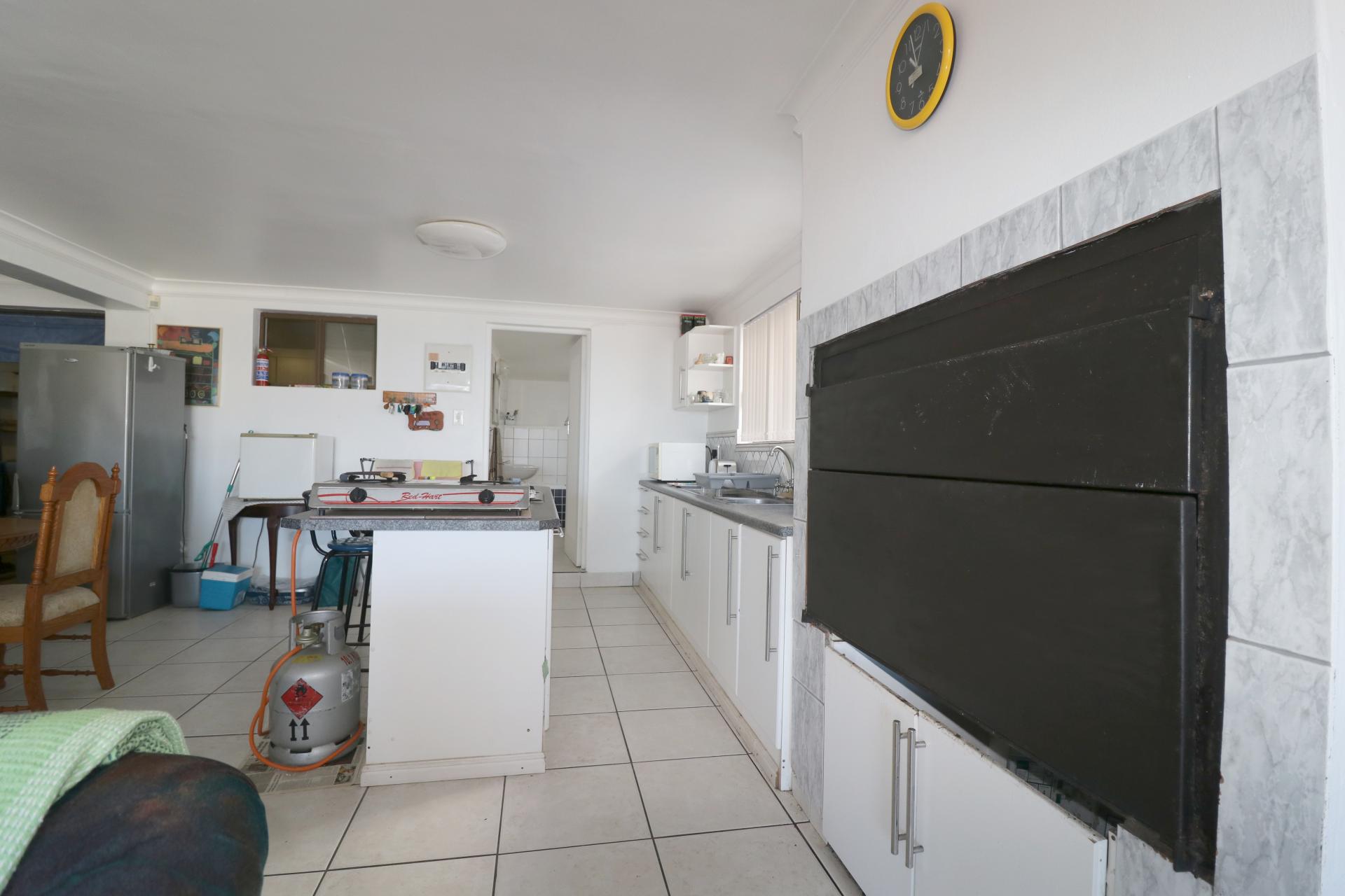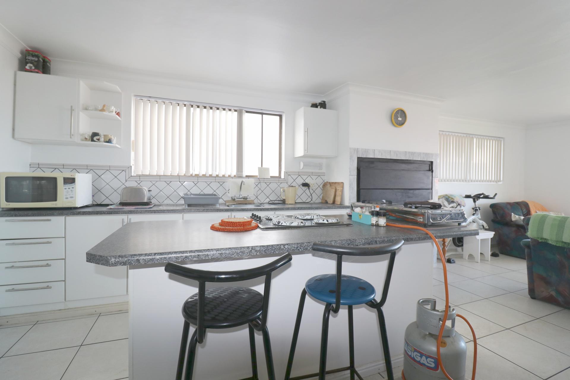Team Merle Nicholls – based in Yzerfontein, selling the lifestyle I live. Nestled in the heart of the old part of Yzerfontein, this family home offers breathtaking sea views and is just a short drive from the beach, shops and essential amenities. Situated on a generous 868m2 stand, the house itself is 600m2 including the two verandas and is the perfect property for those seeking both comfort and coastal charm. The property features a main dwelling along with a separate two bedroom flat. The main living area upstairs welcomes you with a spacious entrance hall, leading into an open plan lounge and dining area with a built in braai, seamlessly connected to a well designed kitchen. The kitchen features a wrap around countertop, an eye level oven and a separate laundry for added convenience. From the living area, sliding doors open onto a sunny enclosed veranda, extending to an open veranda with a built in braai, ideal for entertaining while soaking in the ocean views.