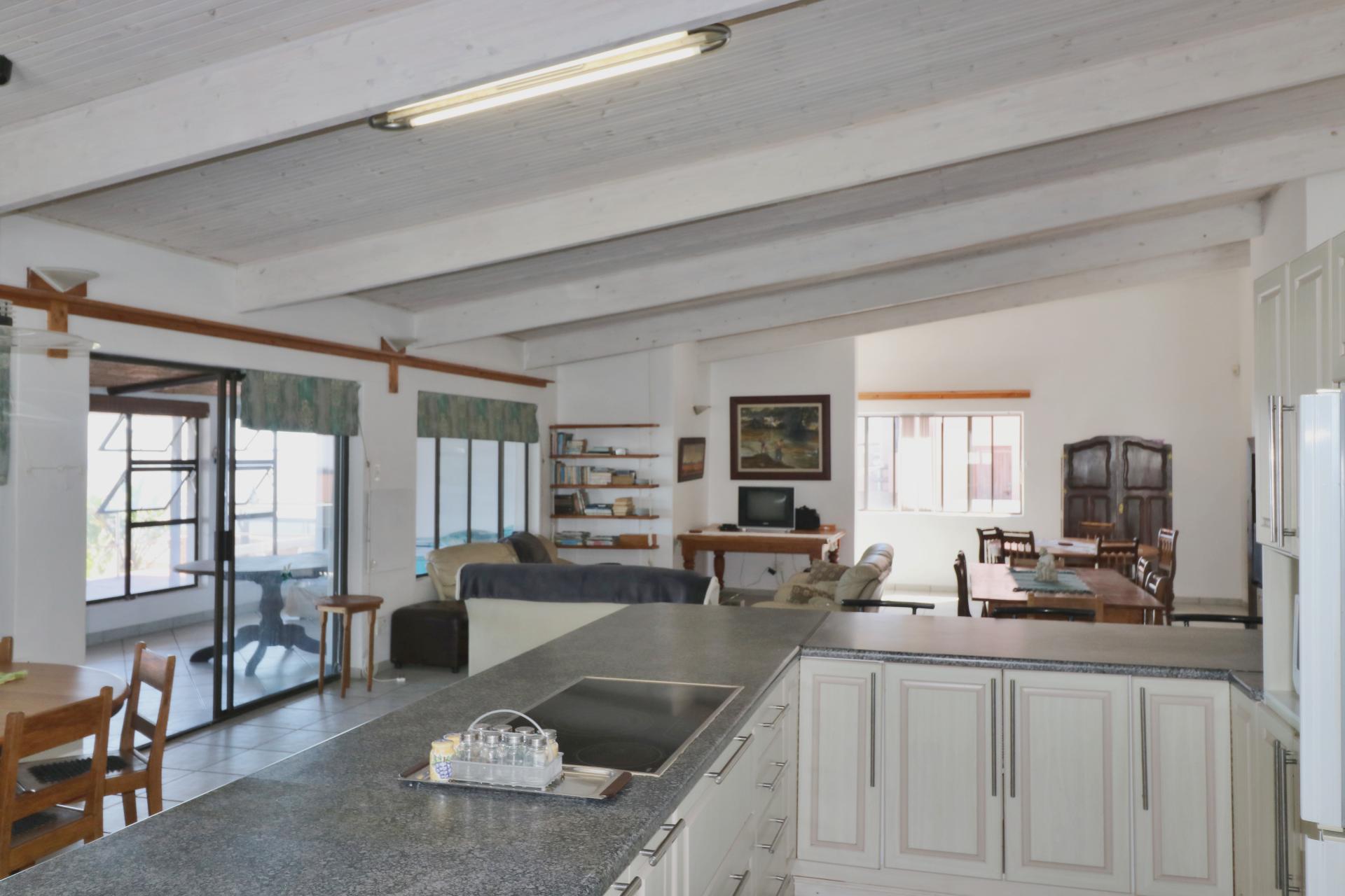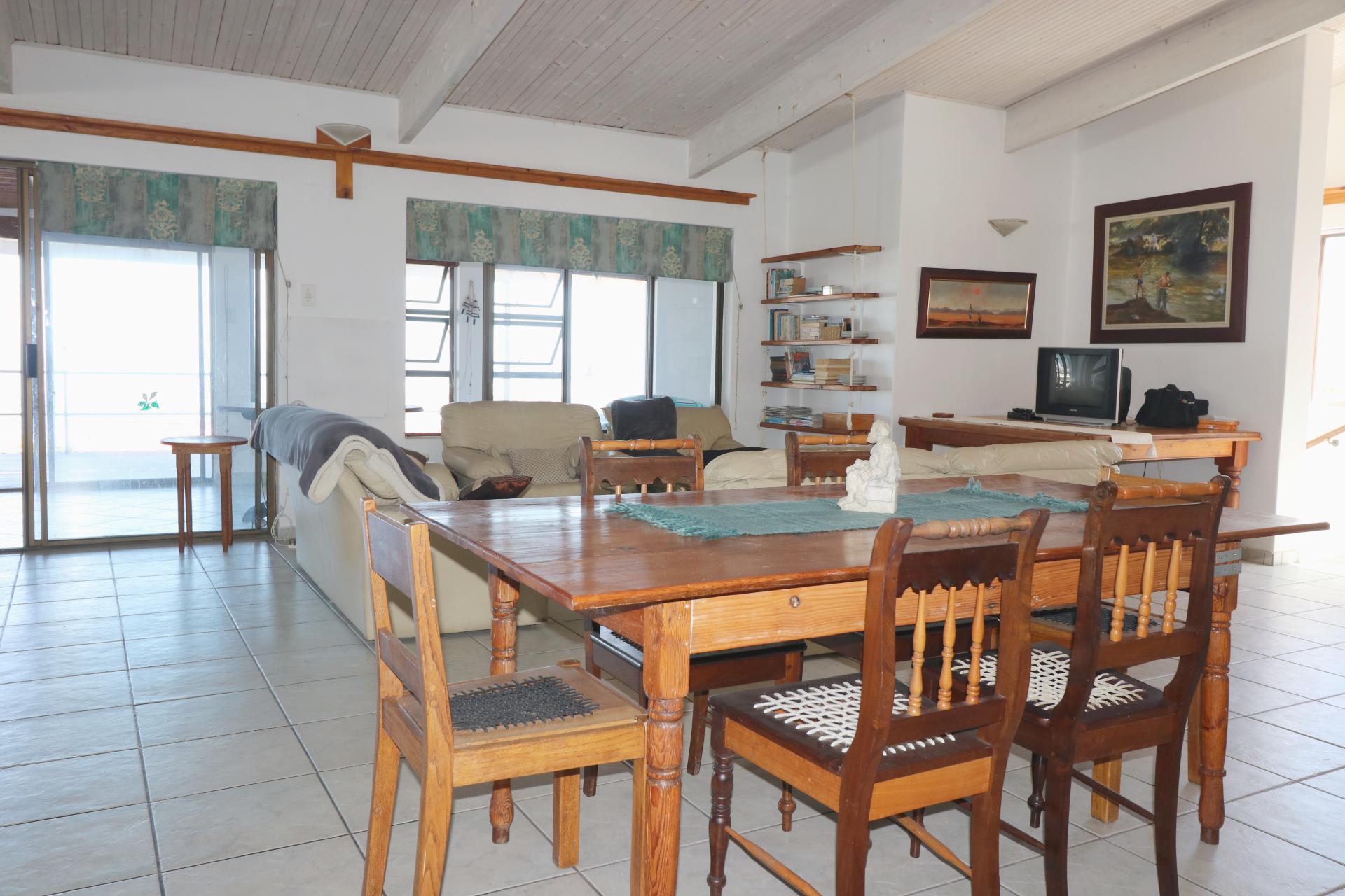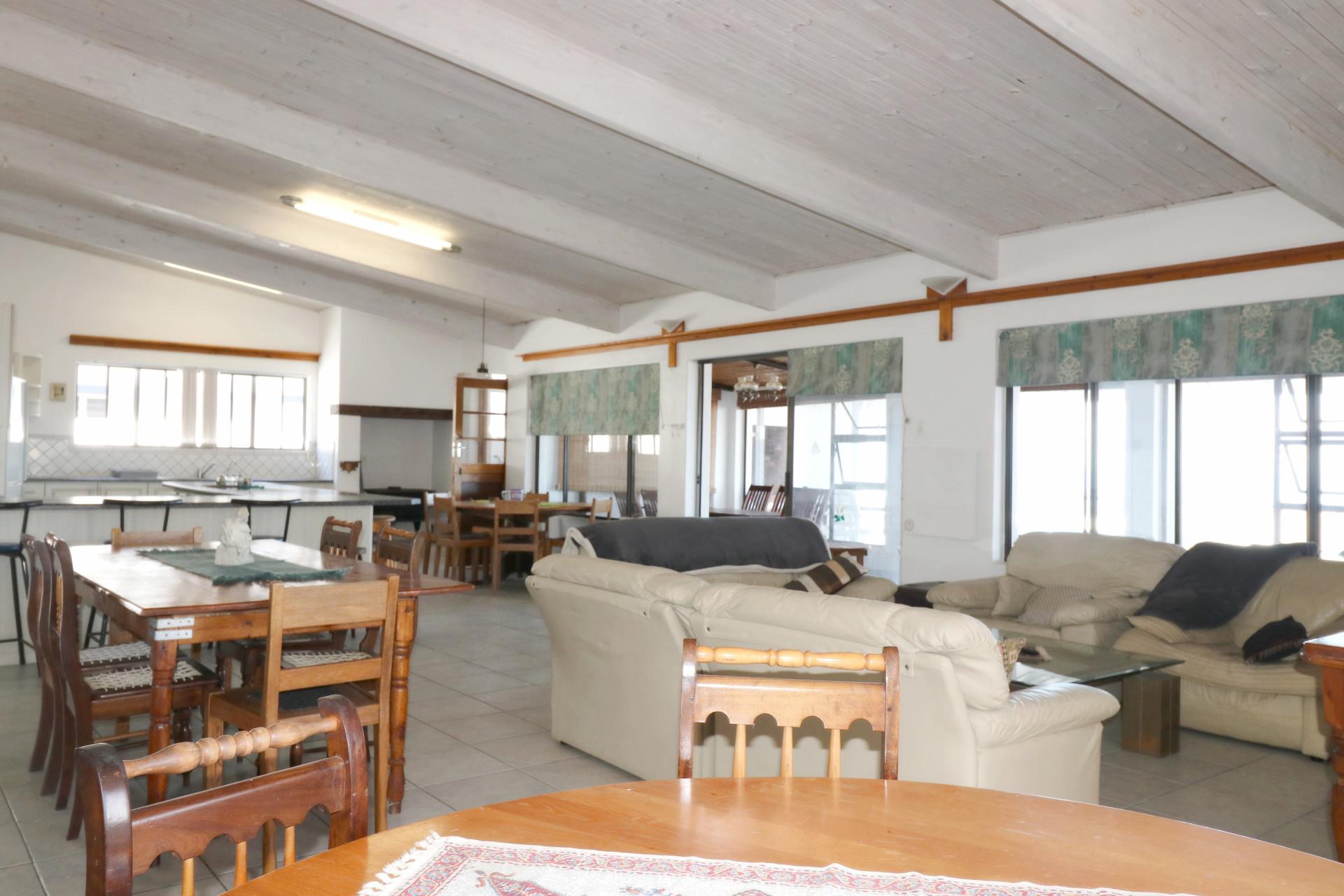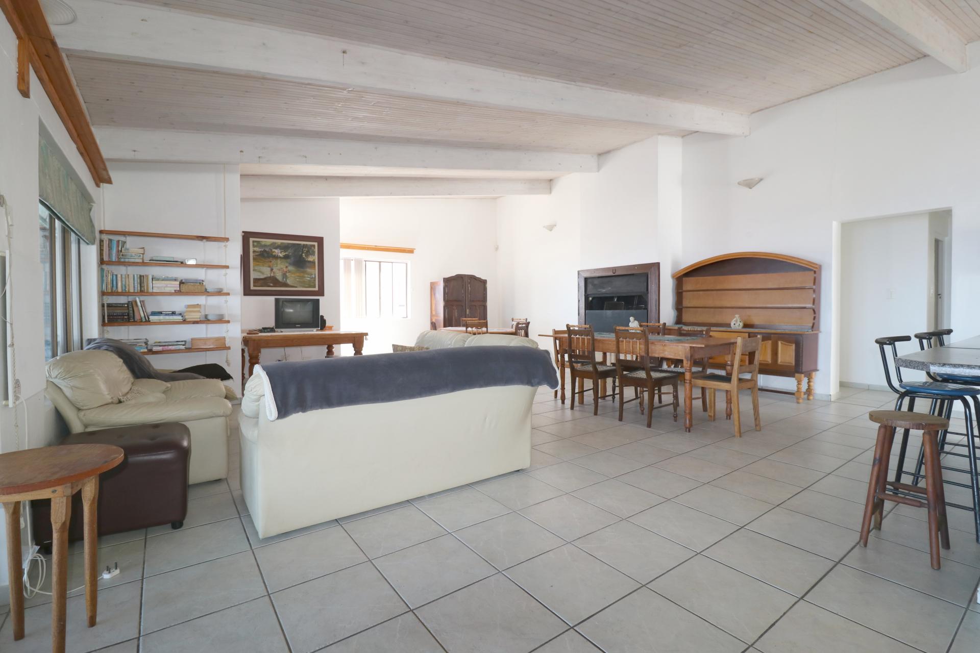 Team Merle Nicholls – based in Yzerfontein, selling the lifestyle I live. Nestled in the heart of the old part of Yzerfontein, this family home offers breathtaking sea views and is just a short drive from the beach, shops and essential amenities. Situated on a generous 868m2 stand, the house itself is 600m2 including the two verandas and is the perfect property for those seeking both comfort and coastal charm. The property features a main dwelling along with a separate two bedroom flat. The main living area upstairs welcomes you with a spacious entrance hall, leading into an open plan lounge and dining area with a built in braai, seamlessly connected to a well designed kitchen. The kitchen features a wrap around countertop, an eye level oven and a separate laundry for added convenience. From the living area, sliding doors open onto a sunny enclosed veranda, extending to an open veranda with a built in braai, ideal for entertaining while soaking in the ocean views.