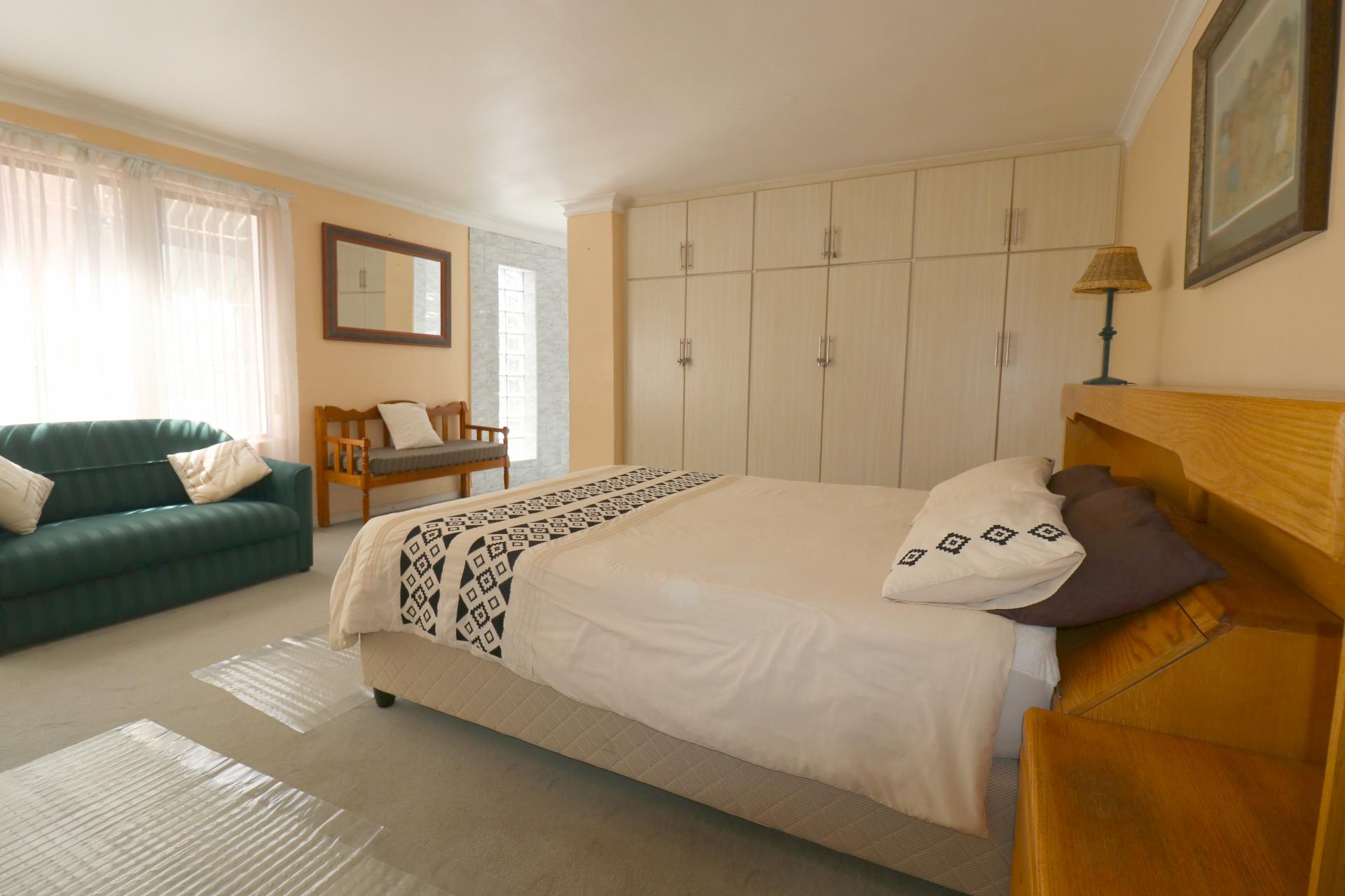 The north-facing master bedroom is a private retreat, offering a king size bedroom with wall to wall built in cupboards and a full en suite bathroom with double basins/ On the opposite wing. you'll find a second king size bedroom, a third bedroom with built in cupboards and a full guest bathroom.