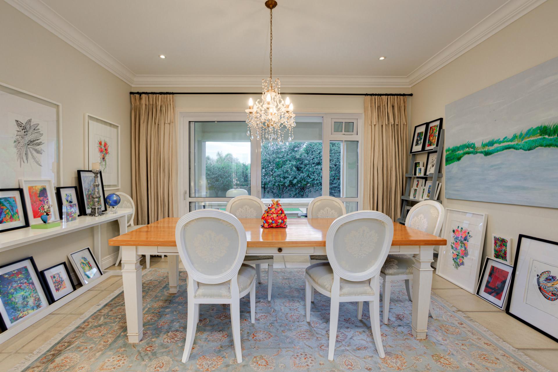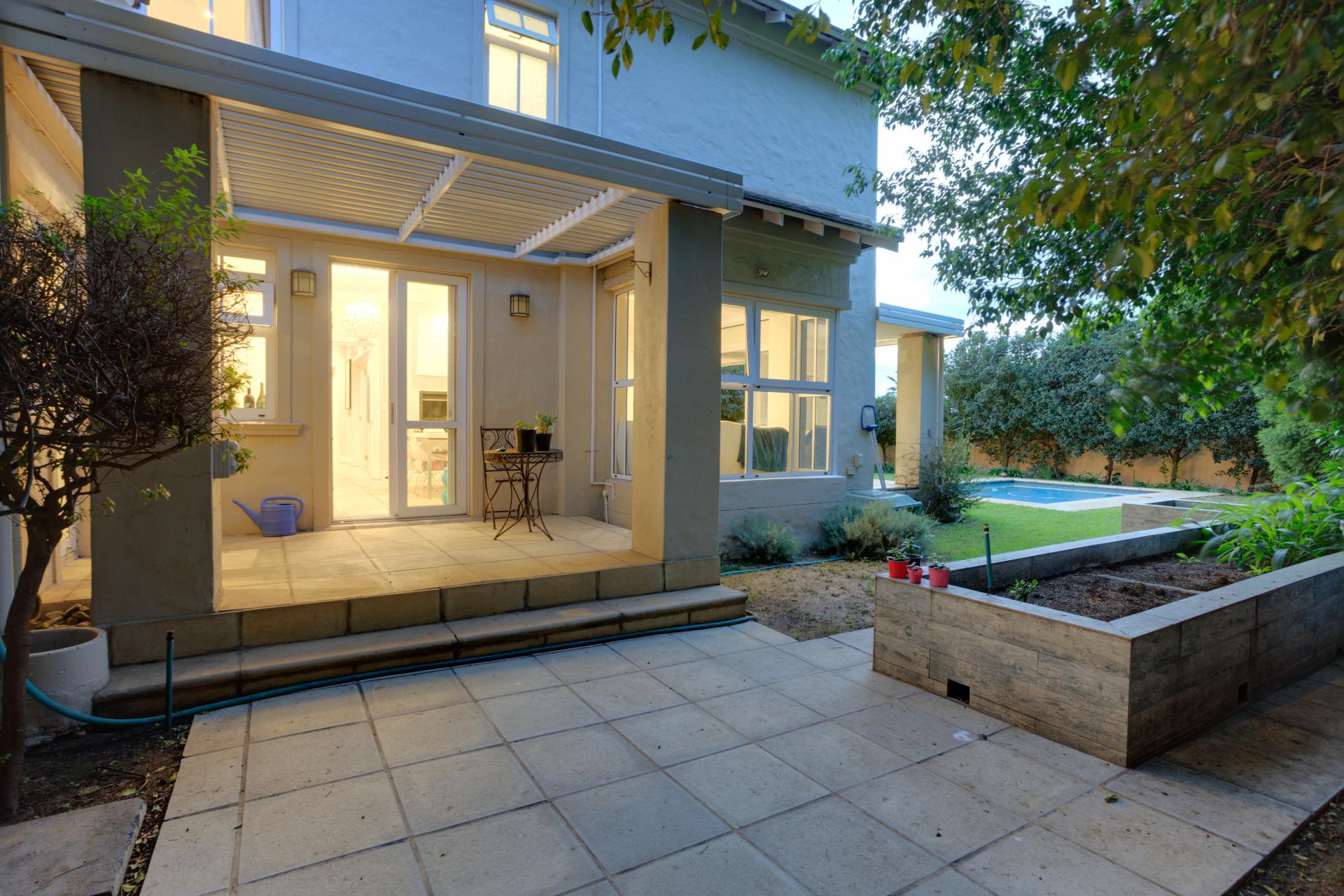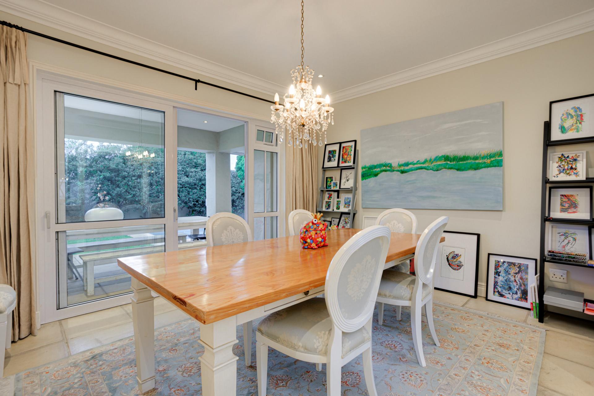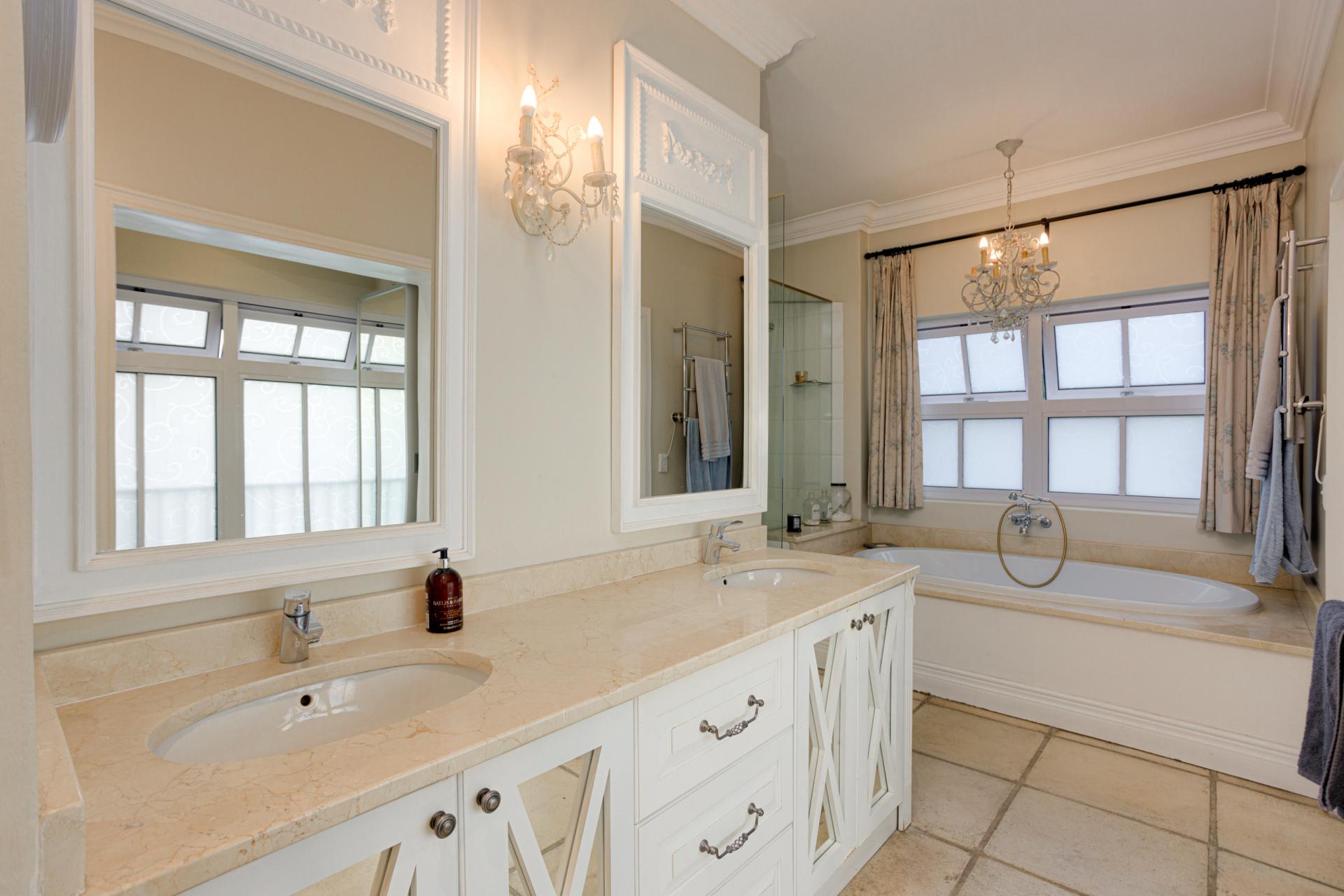 The main living areas are thoughtfully arranged, comprising a comfortable TV lounge with a gas fireplace, a formal dining room and a spacious open-plan lounge that also features a gas fireplace and connects effortlessly to the outdoors. All receptions are north-facing and open seamlessly onto a large, covered patio that’s perfect for entertaining, spilling out onto an expansive garden and a glistening swimming pool. The gourmet kitchen is elegantly finished with marble countertops and features a separate scullery, making it both functional and stylish for everyday living and hosting. Tucked away downstairs, a beautifully appointed study that overlooks a charming rose garden offers the ideal space for a quiet home office or library, or can alternatively serve as a private guest suite with its own en suite bathroom.