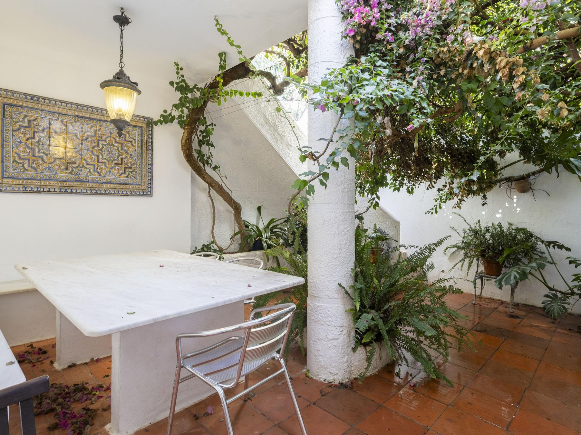 The second house with its own entrance is divided from the main house by a sliding door. It has a reception room that can be used as a dining area and smaller rooms in alcove at the back. One small bedroom followed by a kitchen and a bathroom. At the very left wing is a big double bedroom. A staircase leads to a fifth bedroom on top with its own access to the terraces.