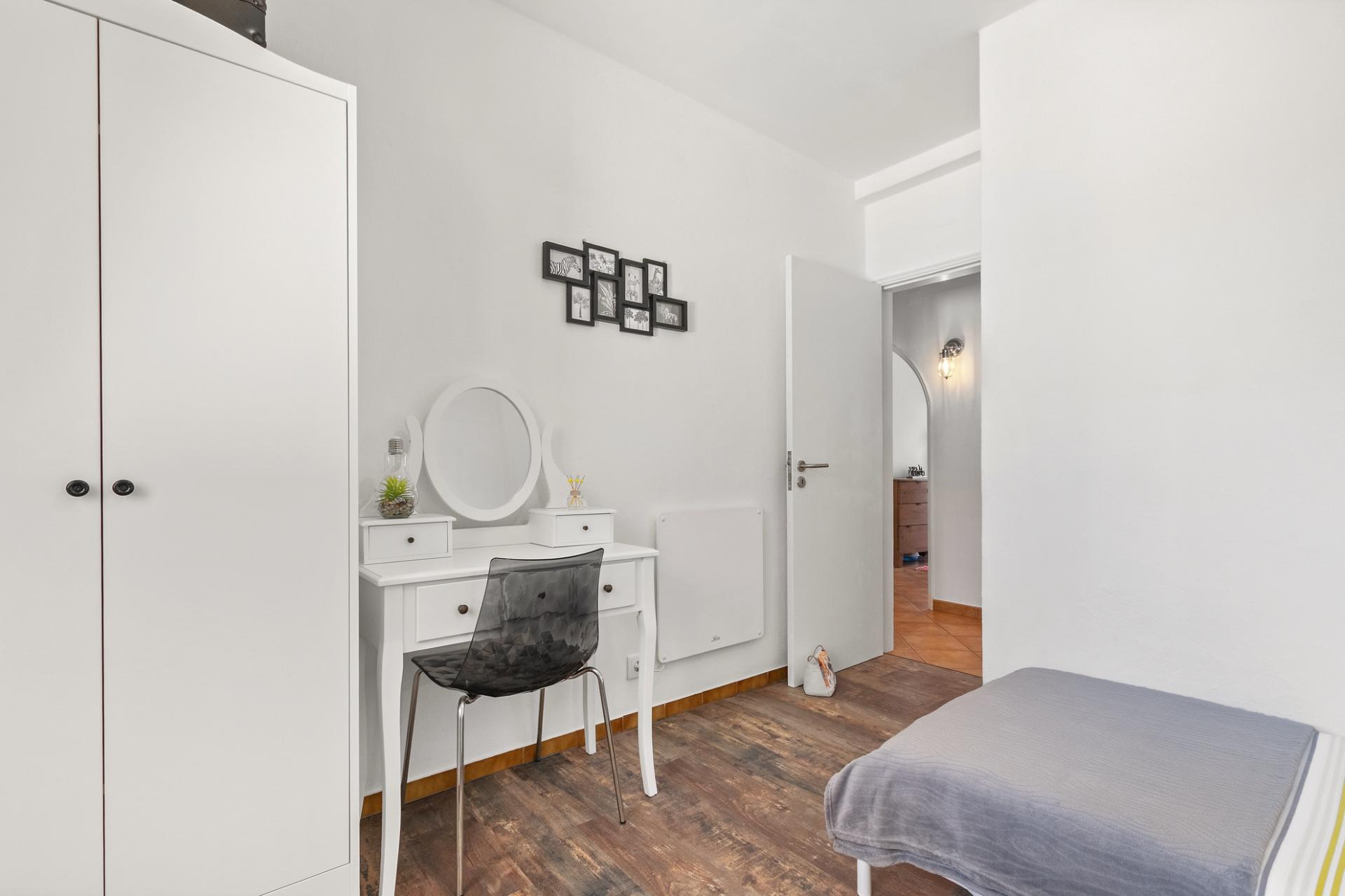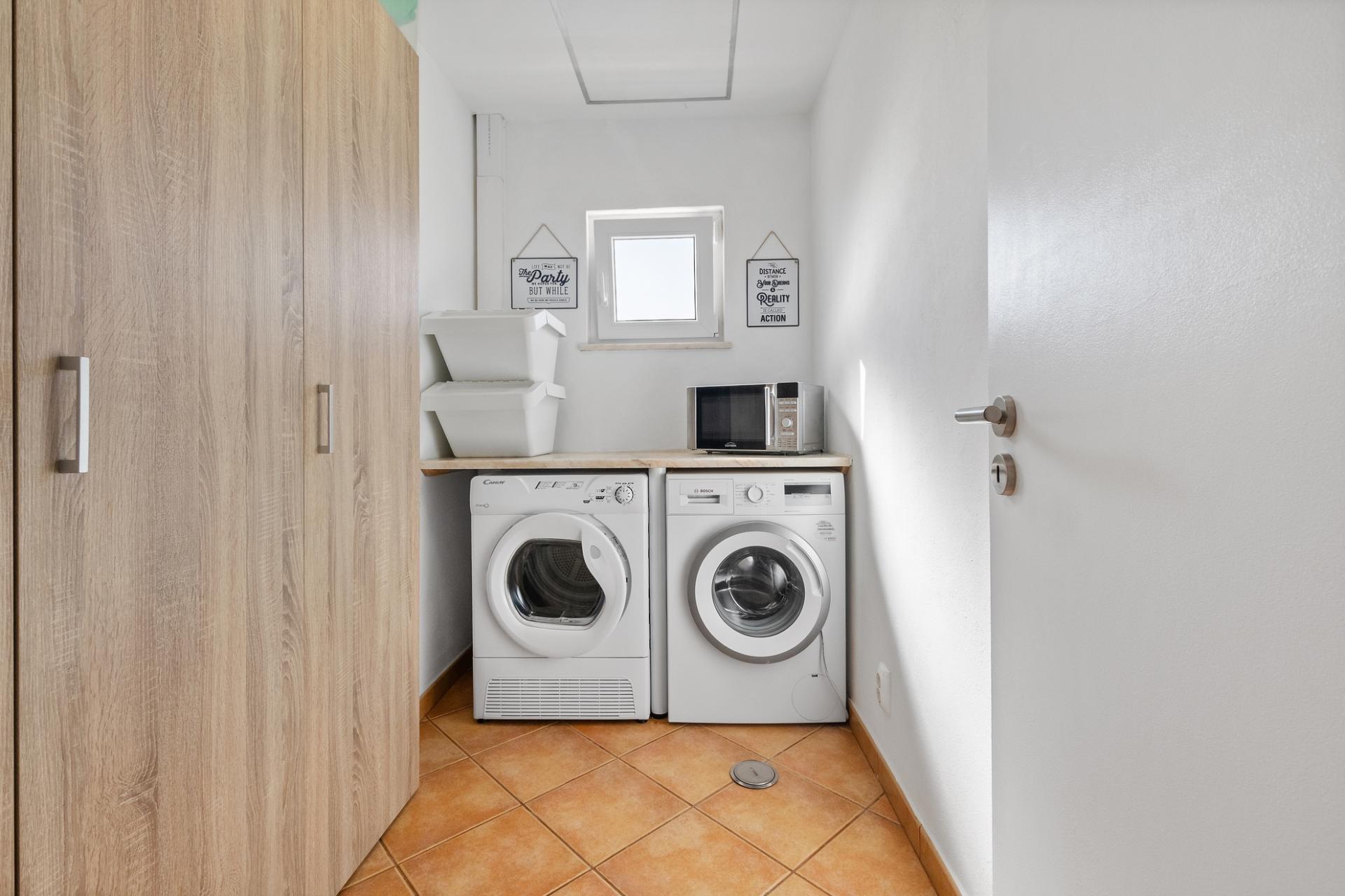 The ground floor features two inviting bedrooms, a stylish bathroom, a multifunctional room ideal for a home office or entertainment space or gym, and a well-appointed kitchen. A staircase leads you to the first floor, where you'll find three more generous bedrooms, another contemporary bathroom, a bright and airy living room, and a convenient laundry area.