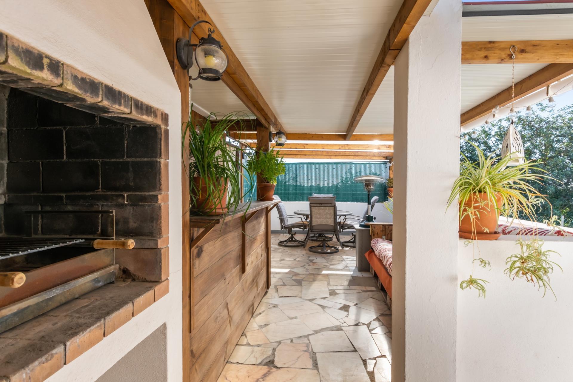 Ensuring comfort and security, the property features double glazing, security shutters, electric gates, and an enclosed garage. Its outdoor spaces are perfect for relaxation and enjoyment of the scenic beauty.