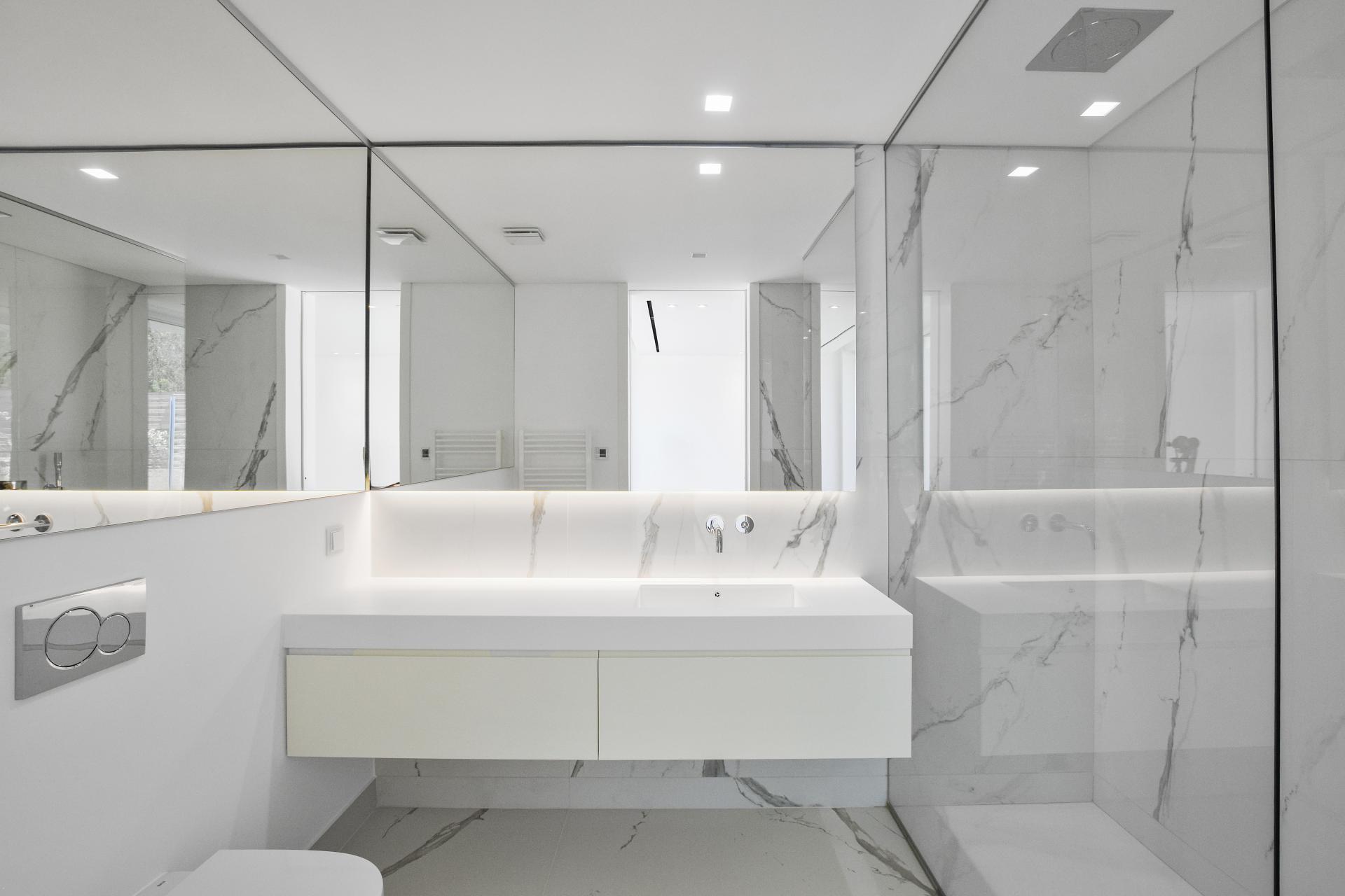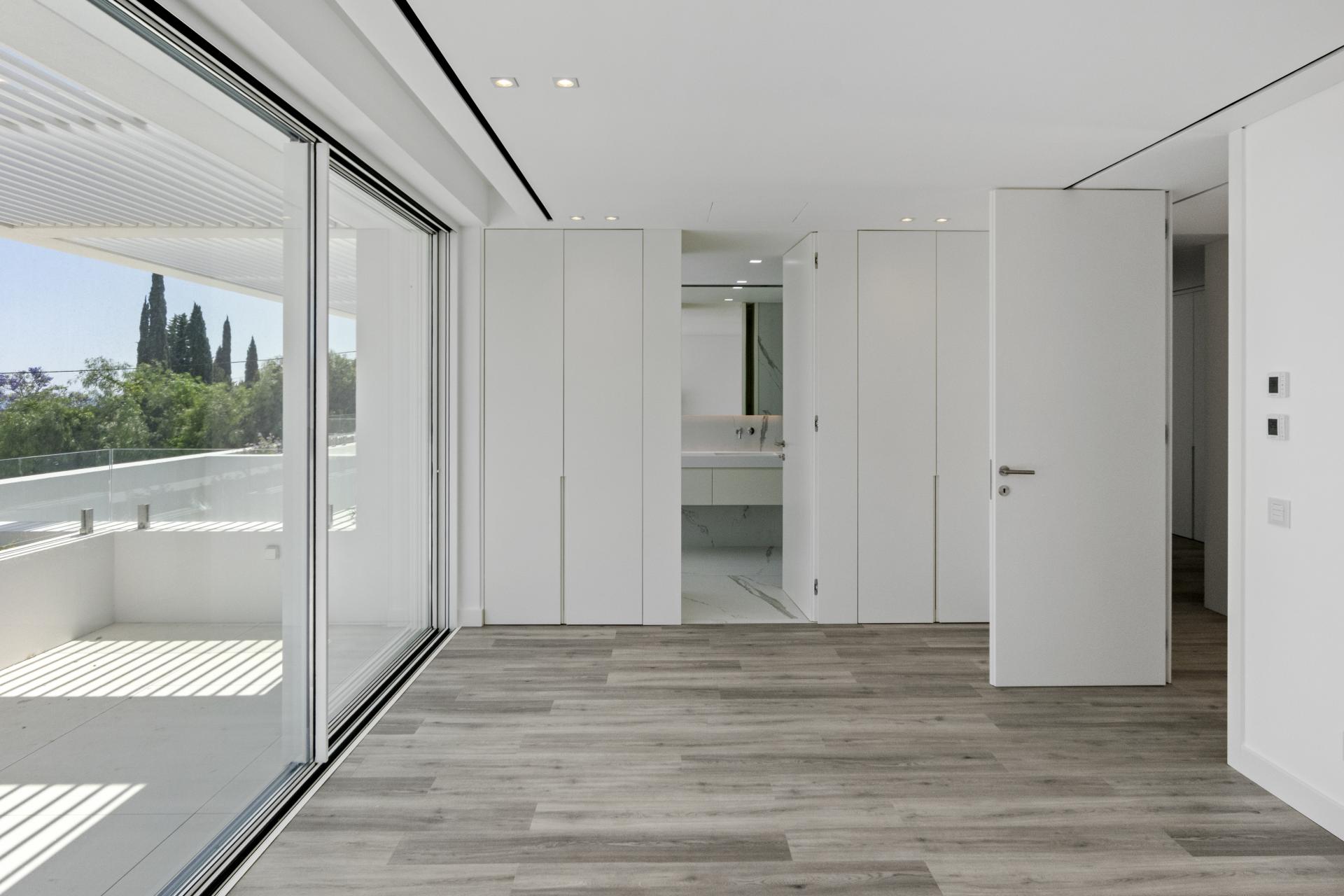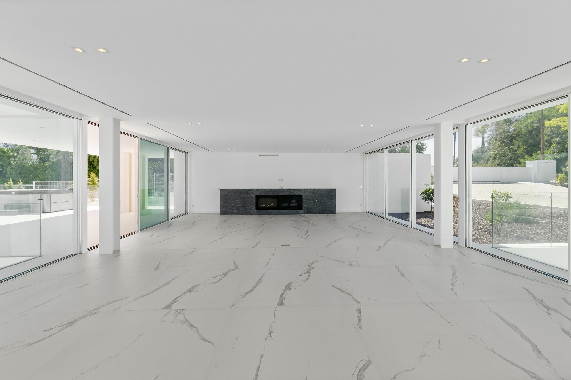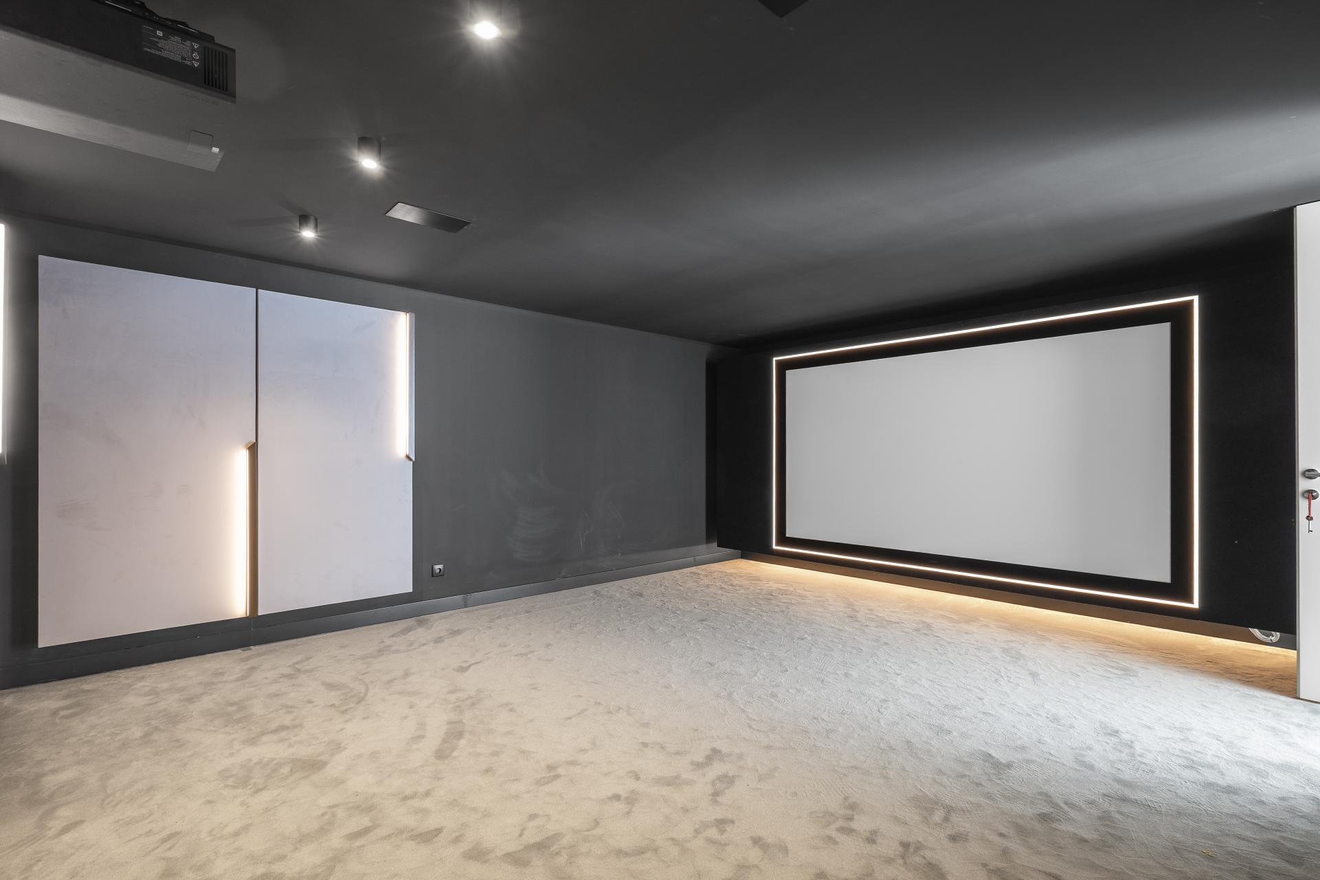 Upstairs, the grand master suite offers a quiet retreat with private balcony and panoramic views. Two additional en-suite double bedrooms complete the upper level. The standout feature is the basement: over 200m² of leisure space that includes a home cinema, fully equipped gym, bar, an additional suite, two inner courtyards—one with a mature tree and water feature—and a large garage with extra living area.