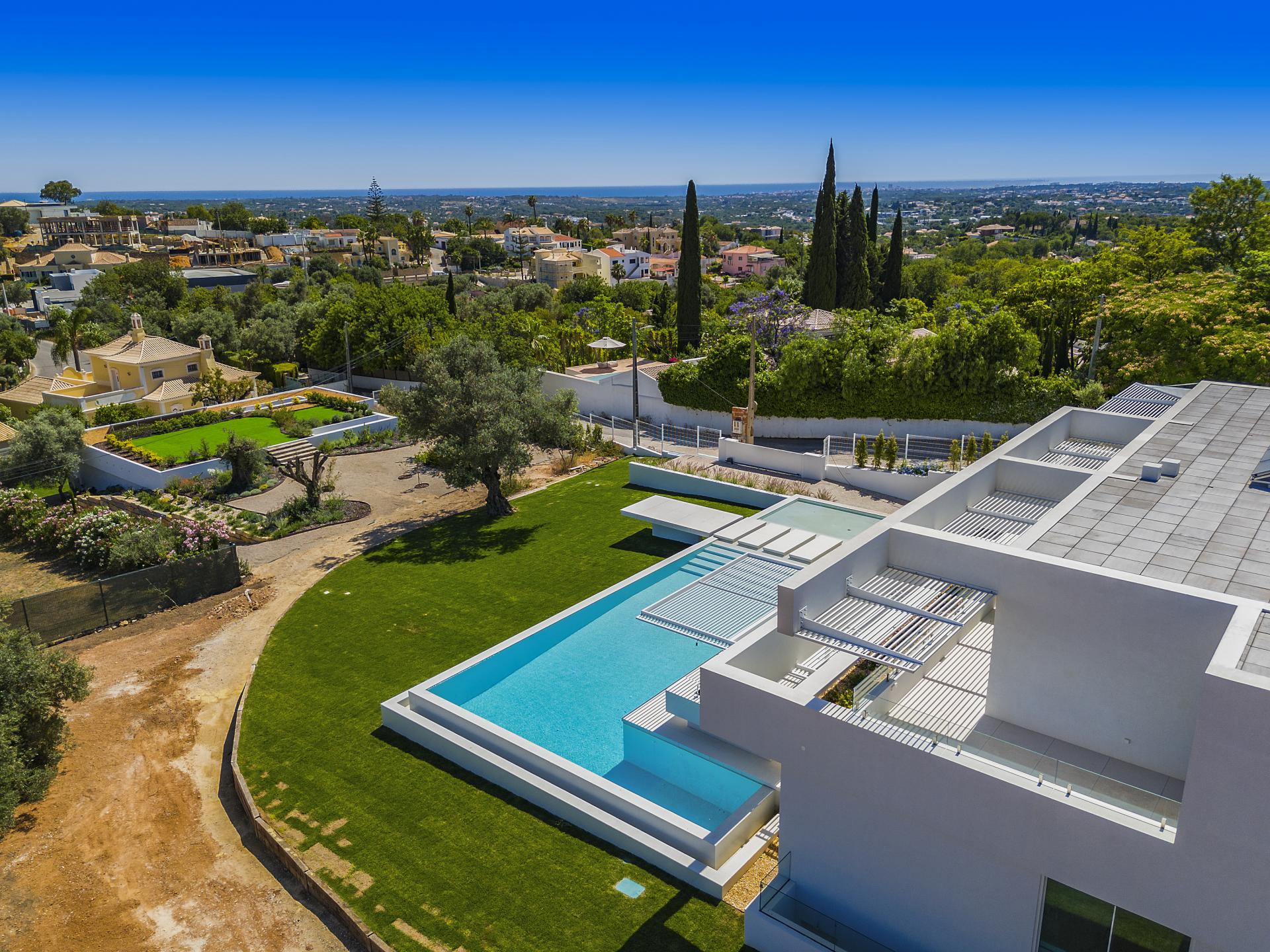 Located in the sought-after area of Sítio dos Quartos in Almancil, this modern villa delivers privacy, space and architectural refinement on a generous 2,415m² plot. Built to exacting standards and flooded with natural light, the villa offers a total of 450m² of stylish living space and an expansive basement level. Designed to blend seamlessly with its surroundings, the home balances indoor elegance with outdoor living, featuring a suspended sun deck and infinity pool with open countryside views.