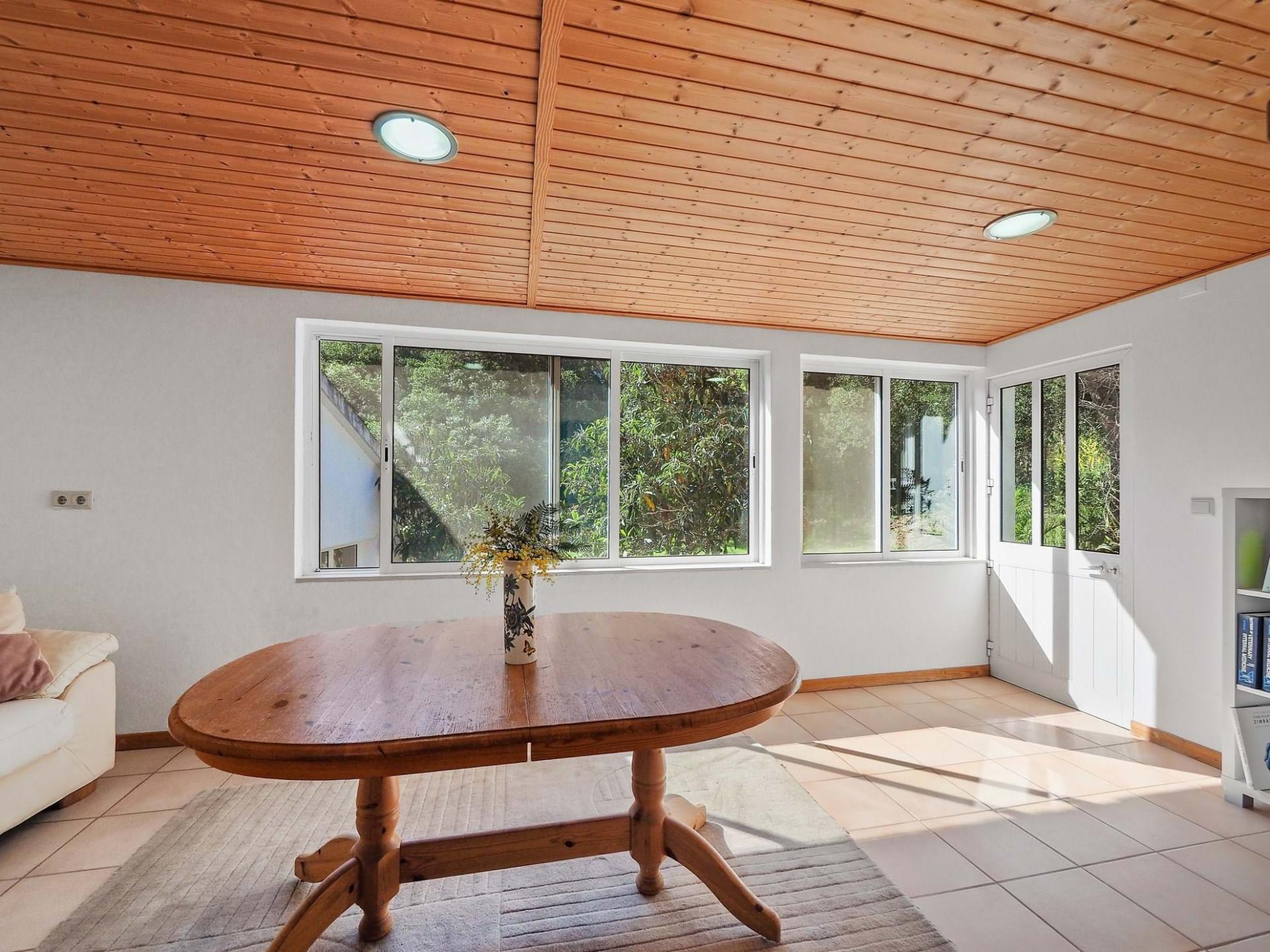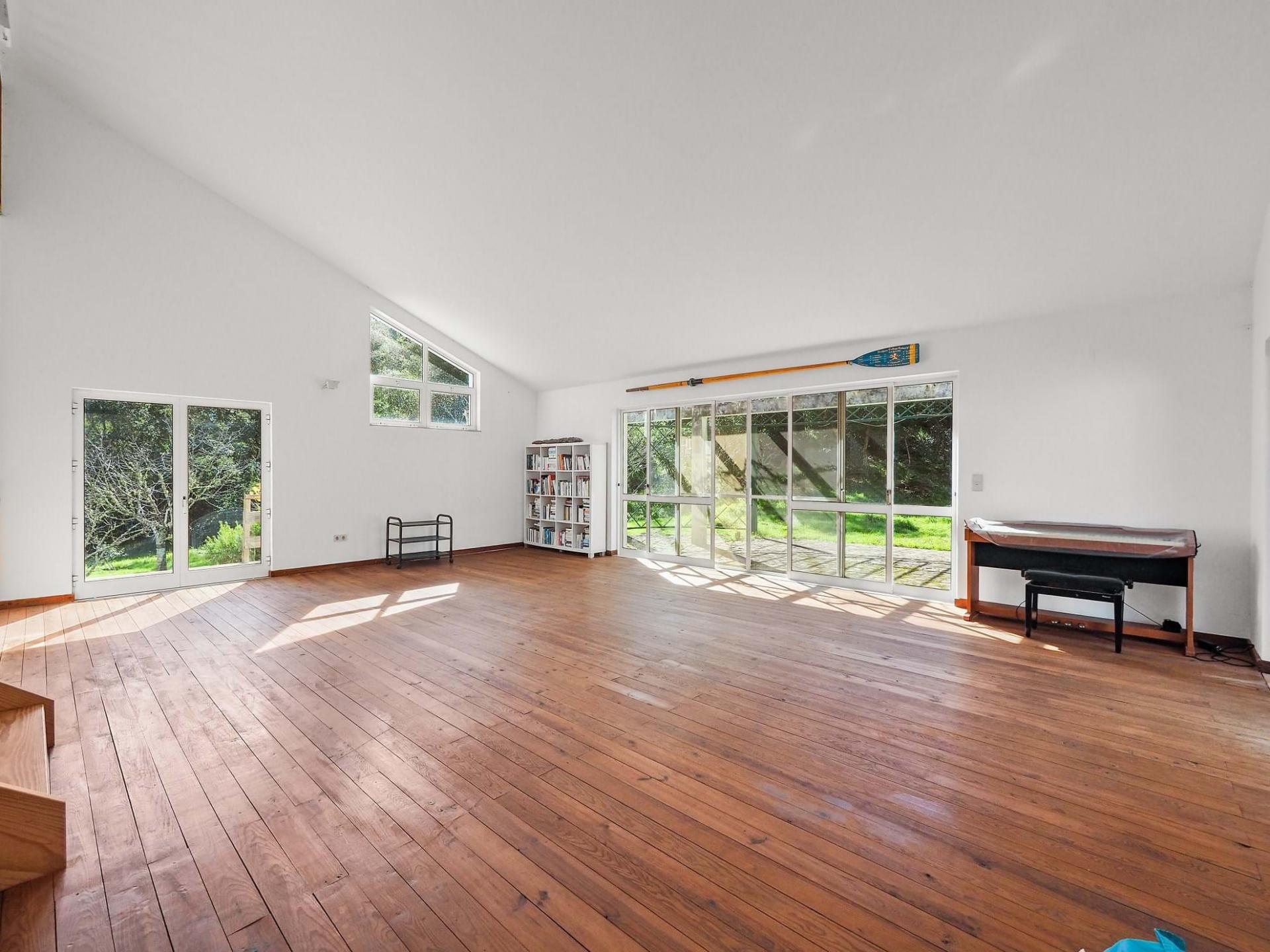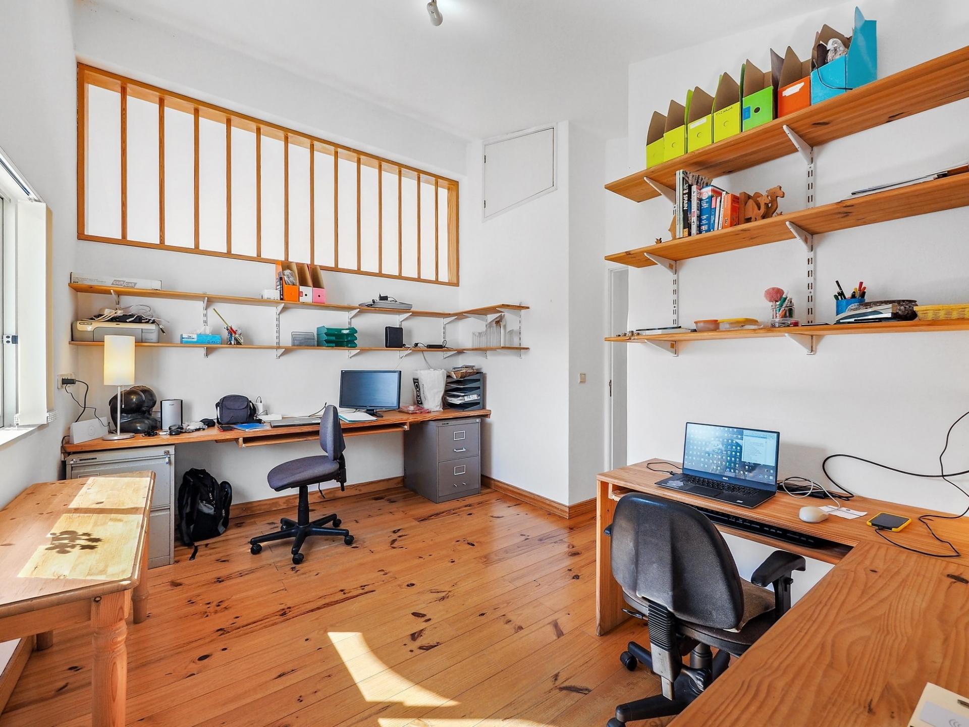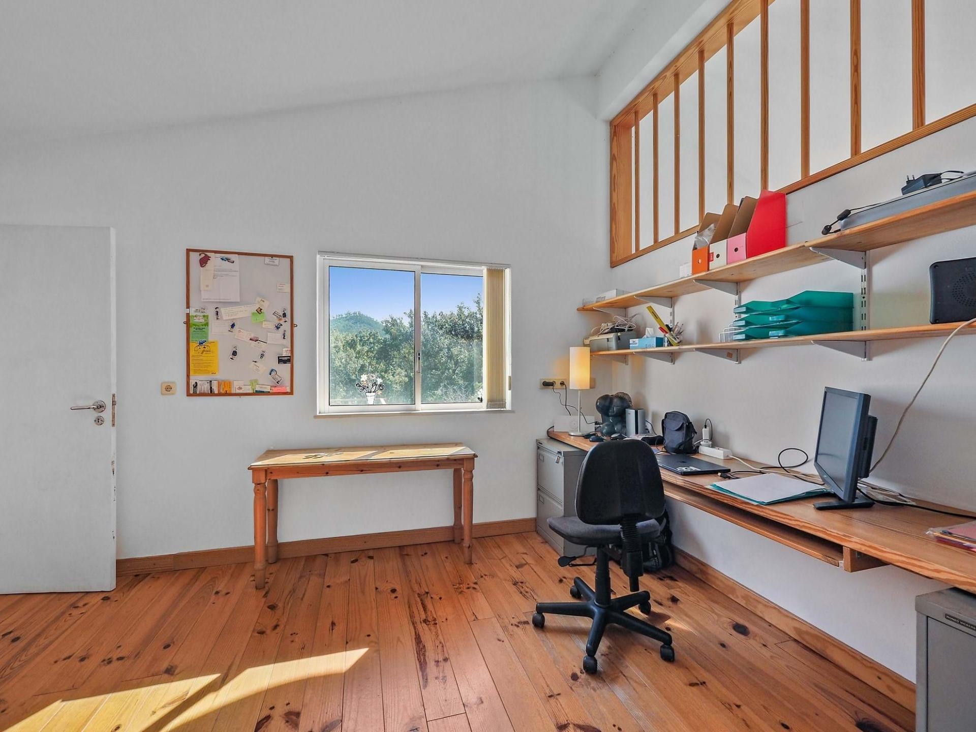 Um escritório liga as duas partes da casa, conduzindo à segunda secção, que dispõe de 3 quartos adicionais, casa de banho e uma zona de duche. Contempla igualmente uma espaçosa sala de estar com lareira, antiga marquise com preparação para instalação de uma segunda cozinha, e ampla área interior ideal para yoga, bem-estar ou uso criativo, com acolhedor mezzanino.
