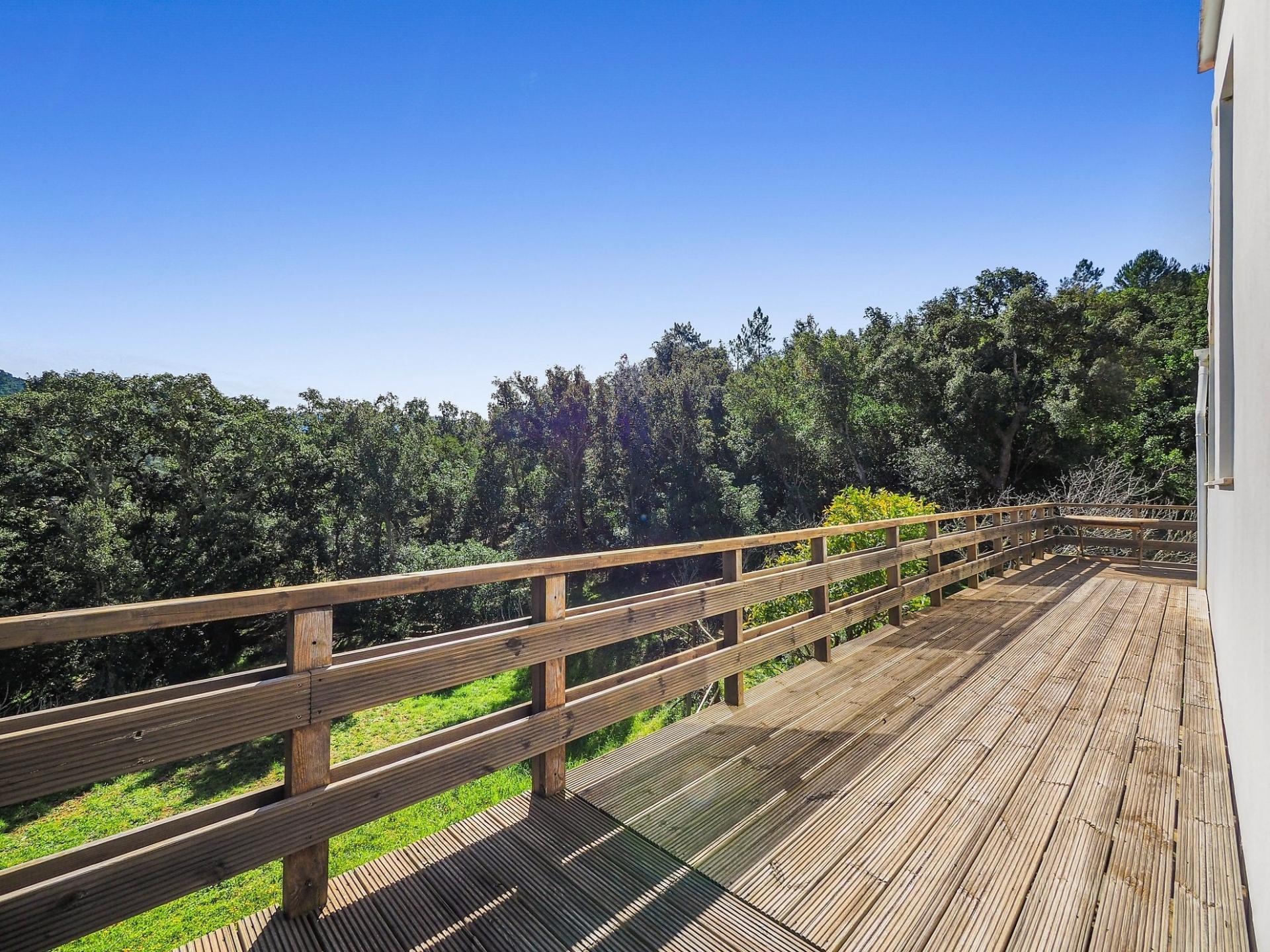 Im Außenbereich befinden sich eine Garage, ein Carport, ein Werkraum und ein Holzlager. Die Rasenfläche ist umgeben von Korkeichenwald, Obstbäumen und Gärten. Ein separates Grundstück mit einer Ruine bietet zusätzliches Entwicklungspotenzial.