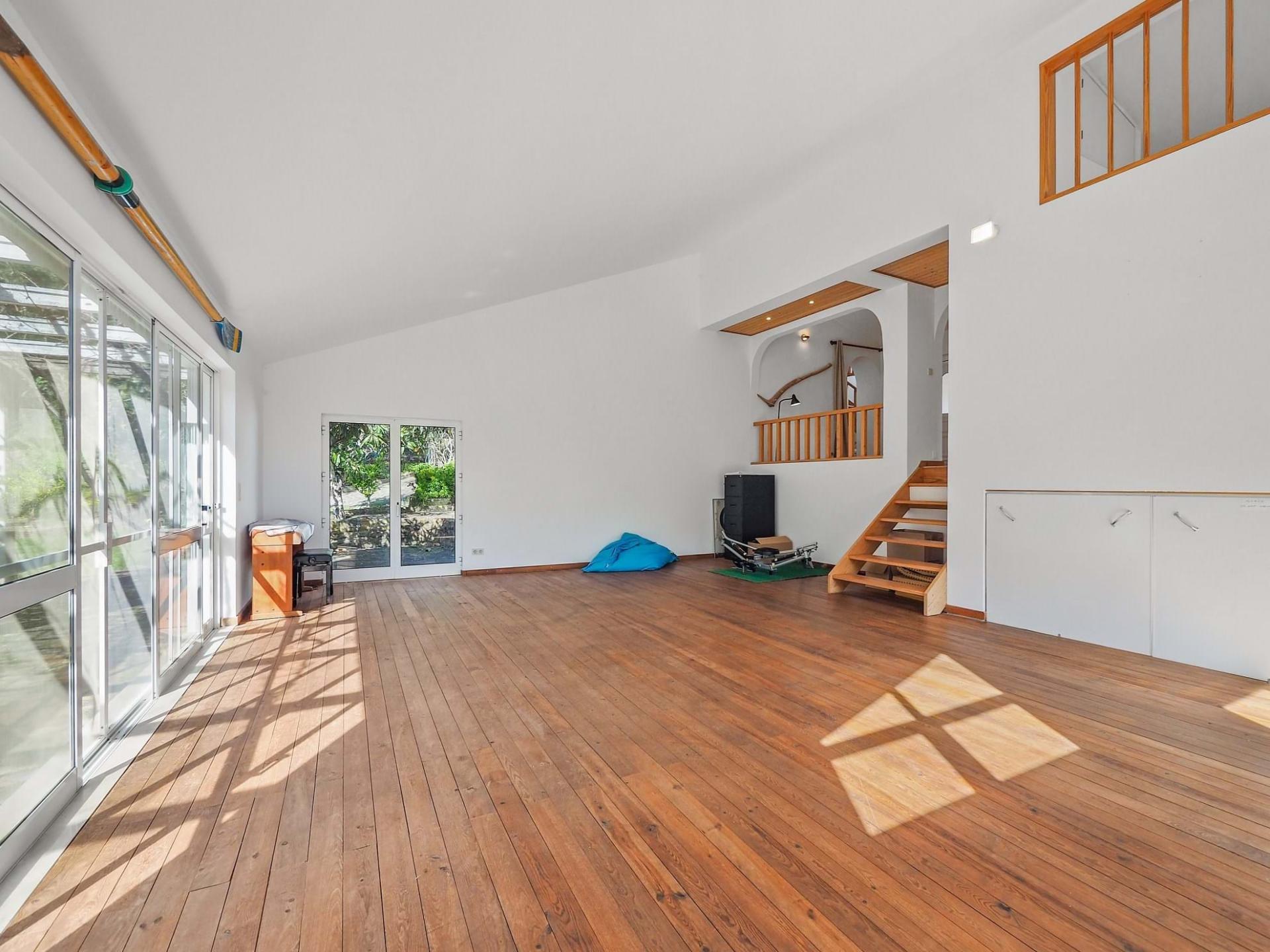 Ein Arbeitszimmer verbindet die beiden Gebäudeteile und führt in den zweiten Bereich mit drei weiteren Schlafzimmern, einem Badezimmer und einem Duschraum. Zudem gibt es hier ein großes Wohnzimmer mit Kamin, eine ehemalige geschlossene Terrasse, die sich zur zweiten Küche umgestalten lässt, sowie einen großzügigen Innenraum, ideal für Yoga, Wellness oder kreative Aktivitäten – ergänzt durch eine gemütliche Galerie.