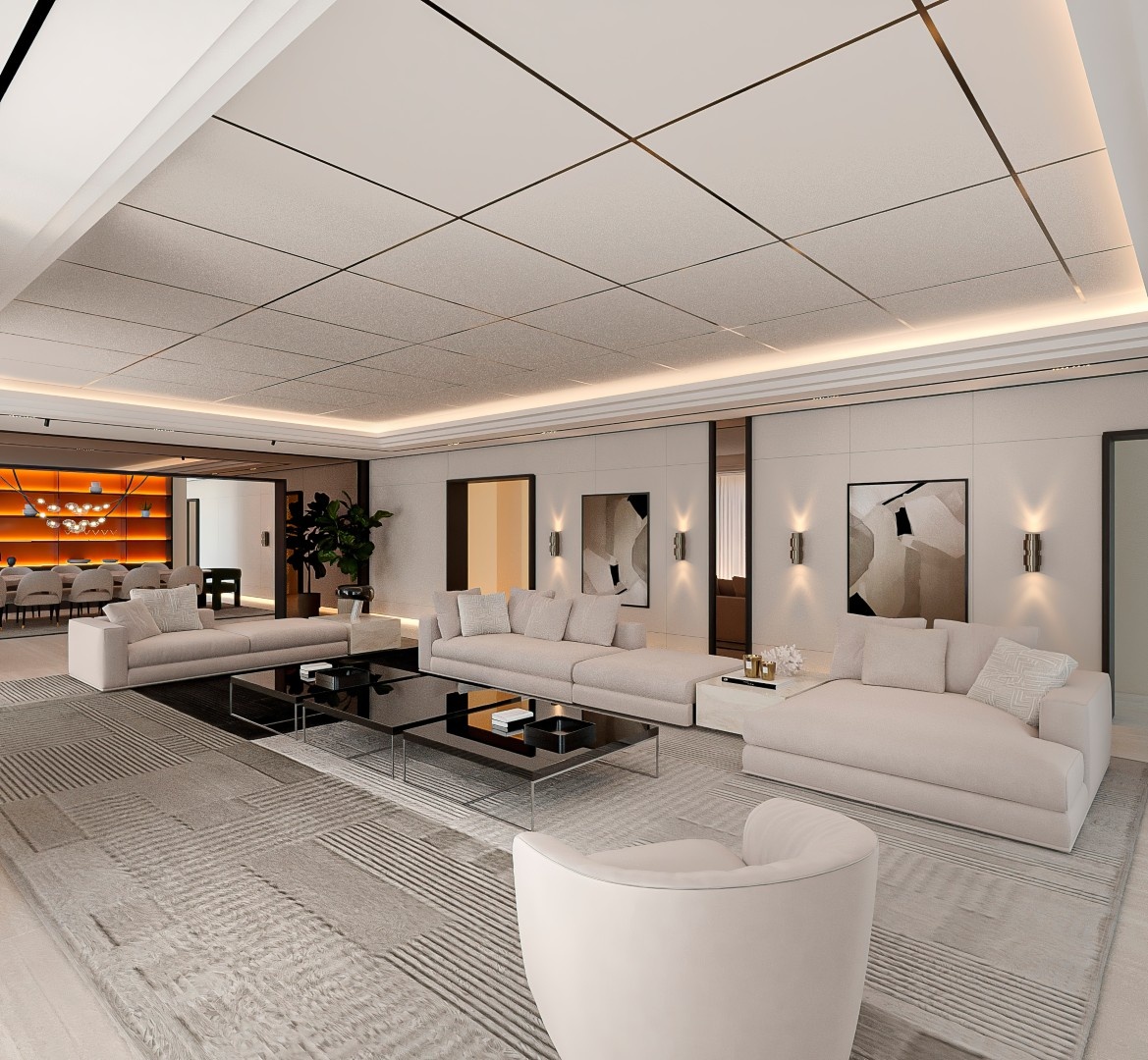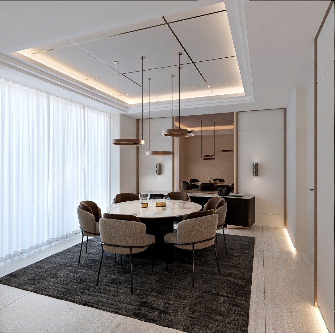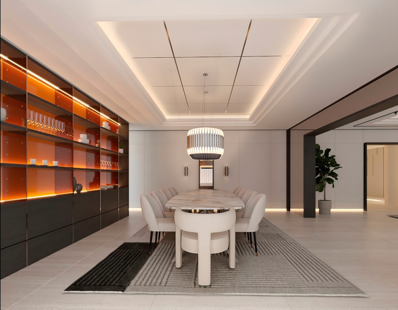 Designed with purpose and elegance, the interiors of this residence cater to both modern living and timeless entertaining.