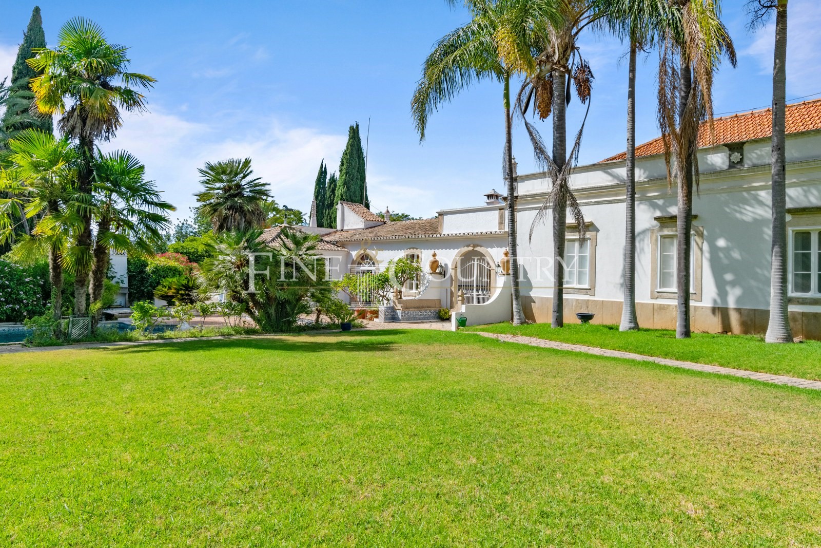 As zonas de lazer exteriores desta magnífica propriedade incluem uma piscina de 15m de comprimento, rodeada por um terraço perfeito para banhos de sol e um jardim paisagístico com várias árvores como citrinos, palmeiras, oliveiras, alfarrobeiras e amendoeiras.