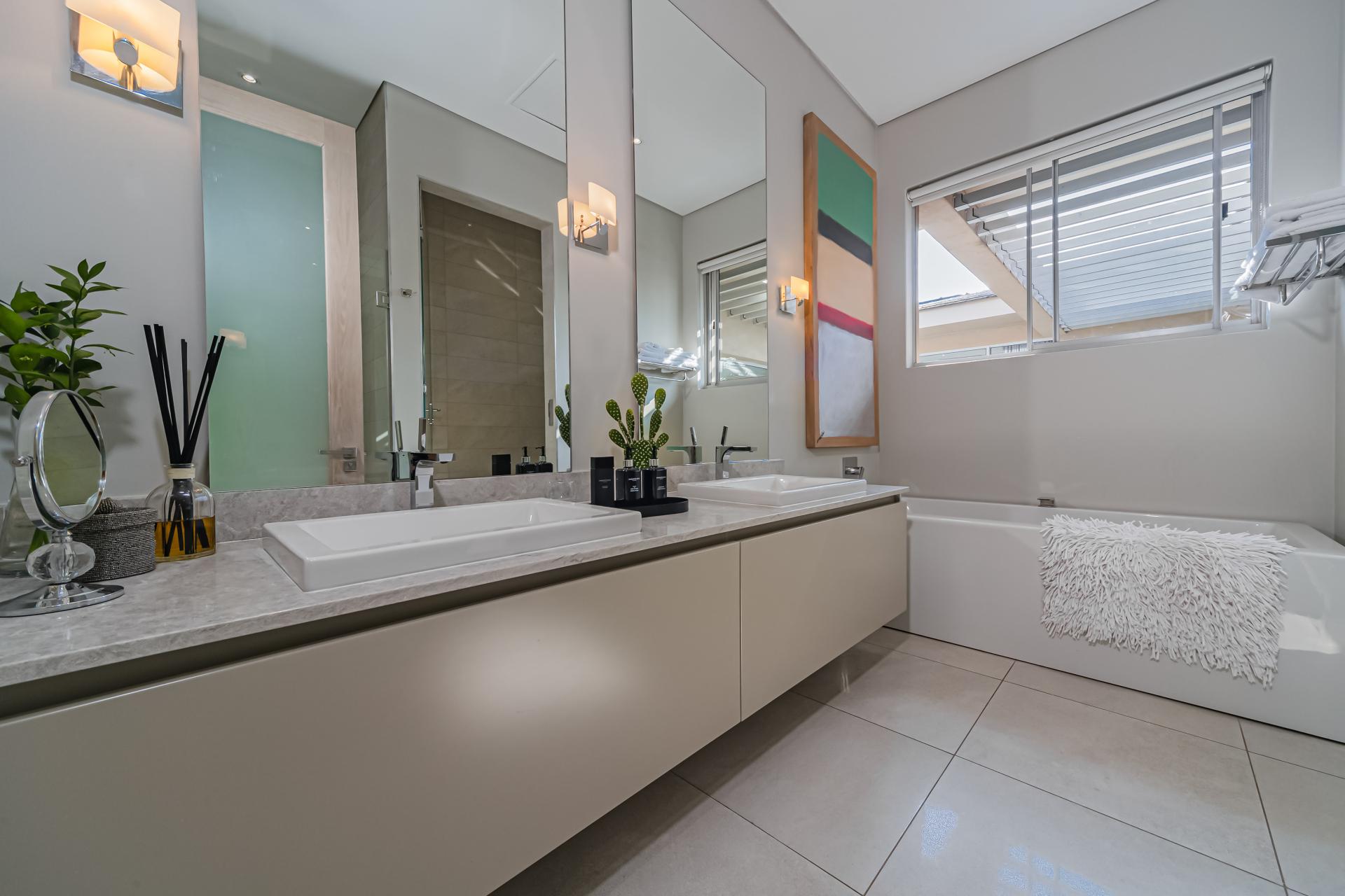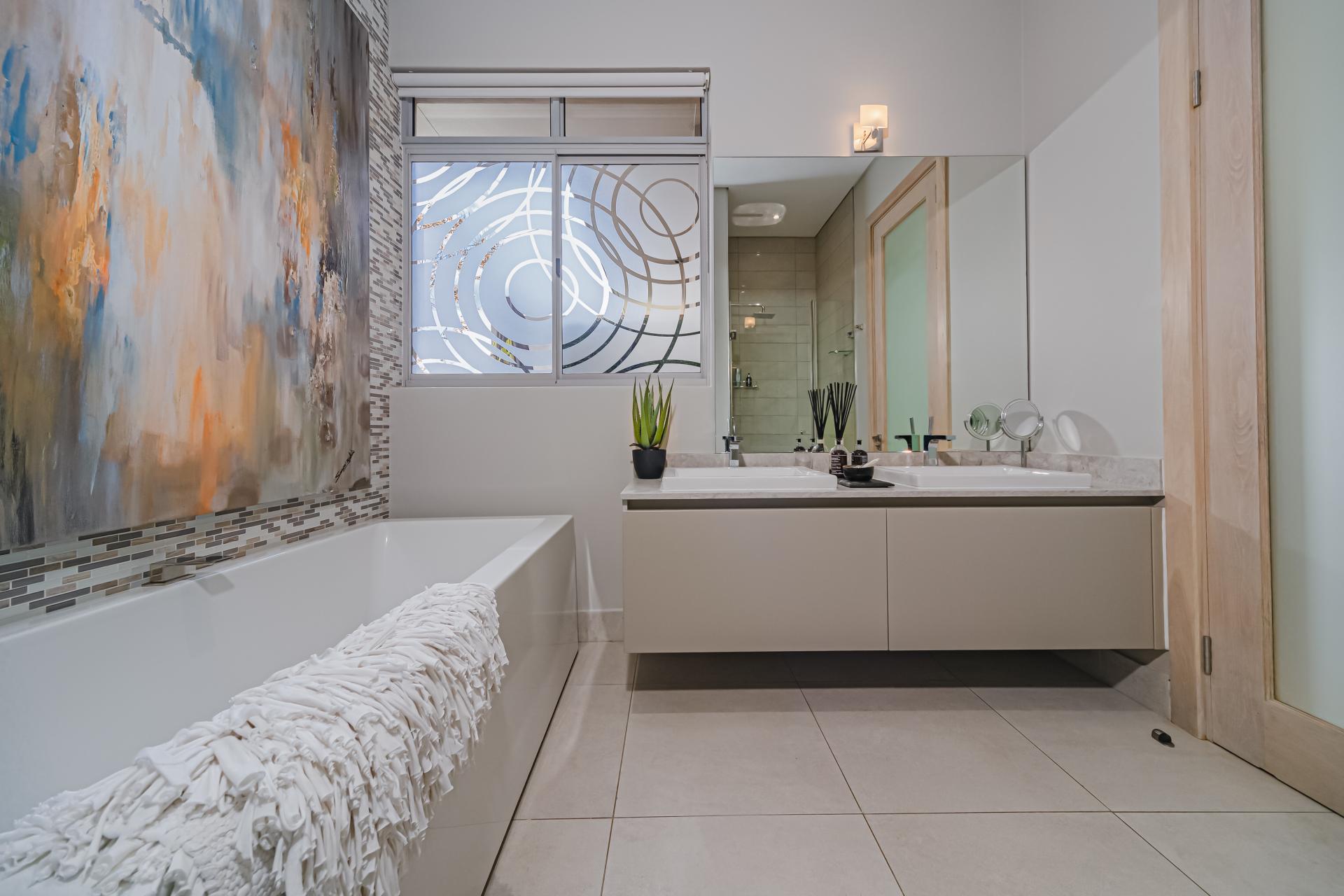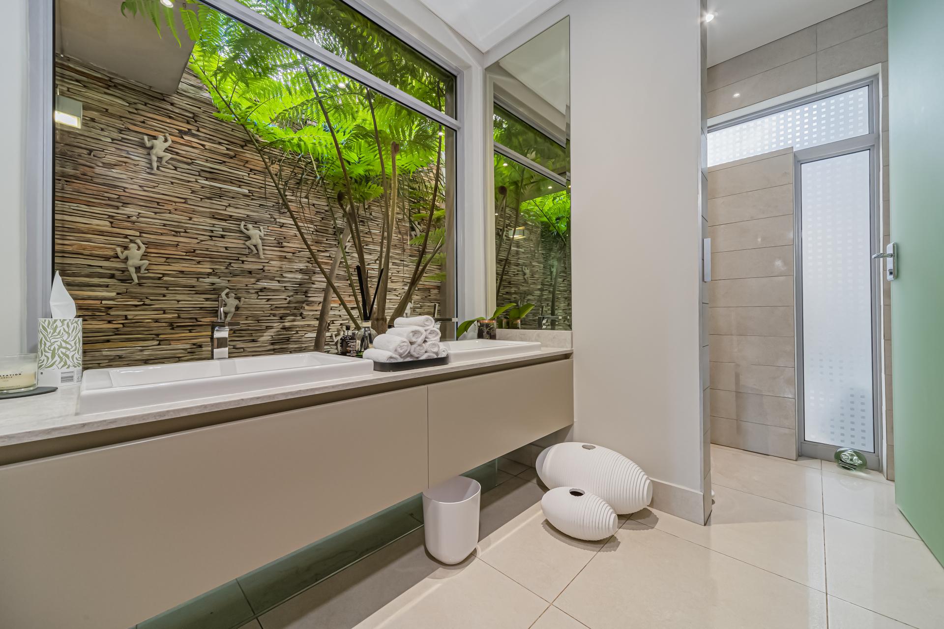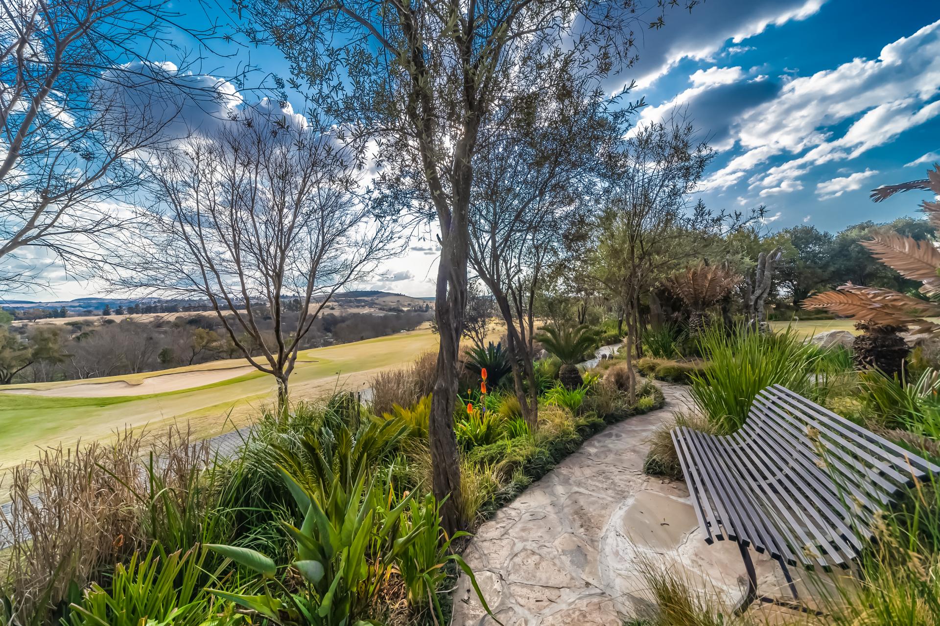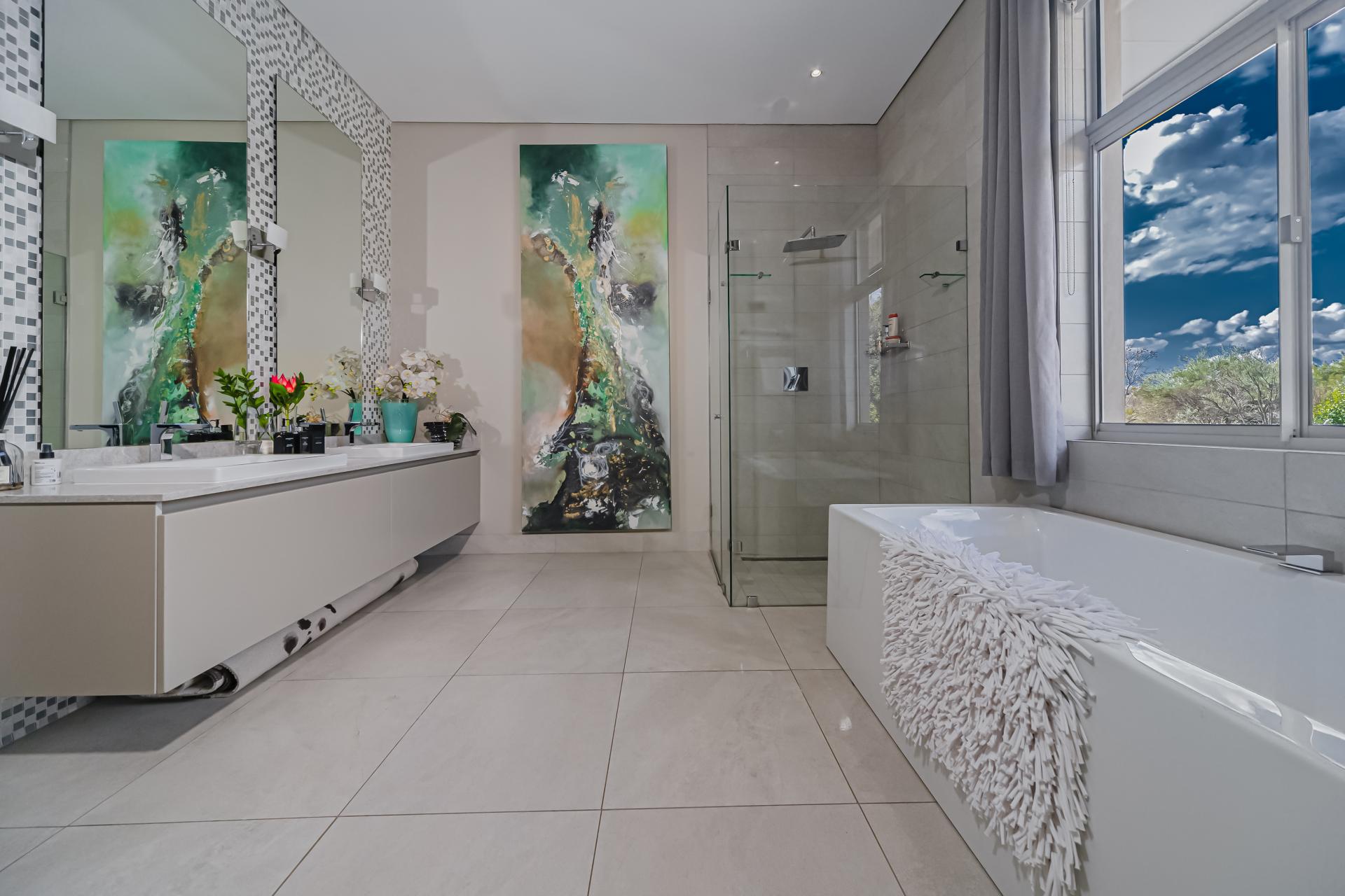 This 1600+sqm home looks onto the championship golf course in Blair Atholl with the Crocodile River across the course and sunsets one goes on holiday to chase. The home is ideal for a big family with 6 bedrooms all en-suite complemented with a massive office space with outdoor meditation area, jacuzzi, pizza oven, multiple entertainment spots, two braai areas, heated swimming pool, designer garden, vegetable garden and two bars – one outside and another stunning feature bar inside. There is also an enclosed Ferrari lounge, a wine room, show kitchen and catering kitchen with Gaggenau appliances, walk in fridge and laundry/scullery. The catering kitchen is a piece of art in itself with the beautiful views, décor and space it offers. At the end of the property is a firepit where views onto the golf course can be enjoyed.