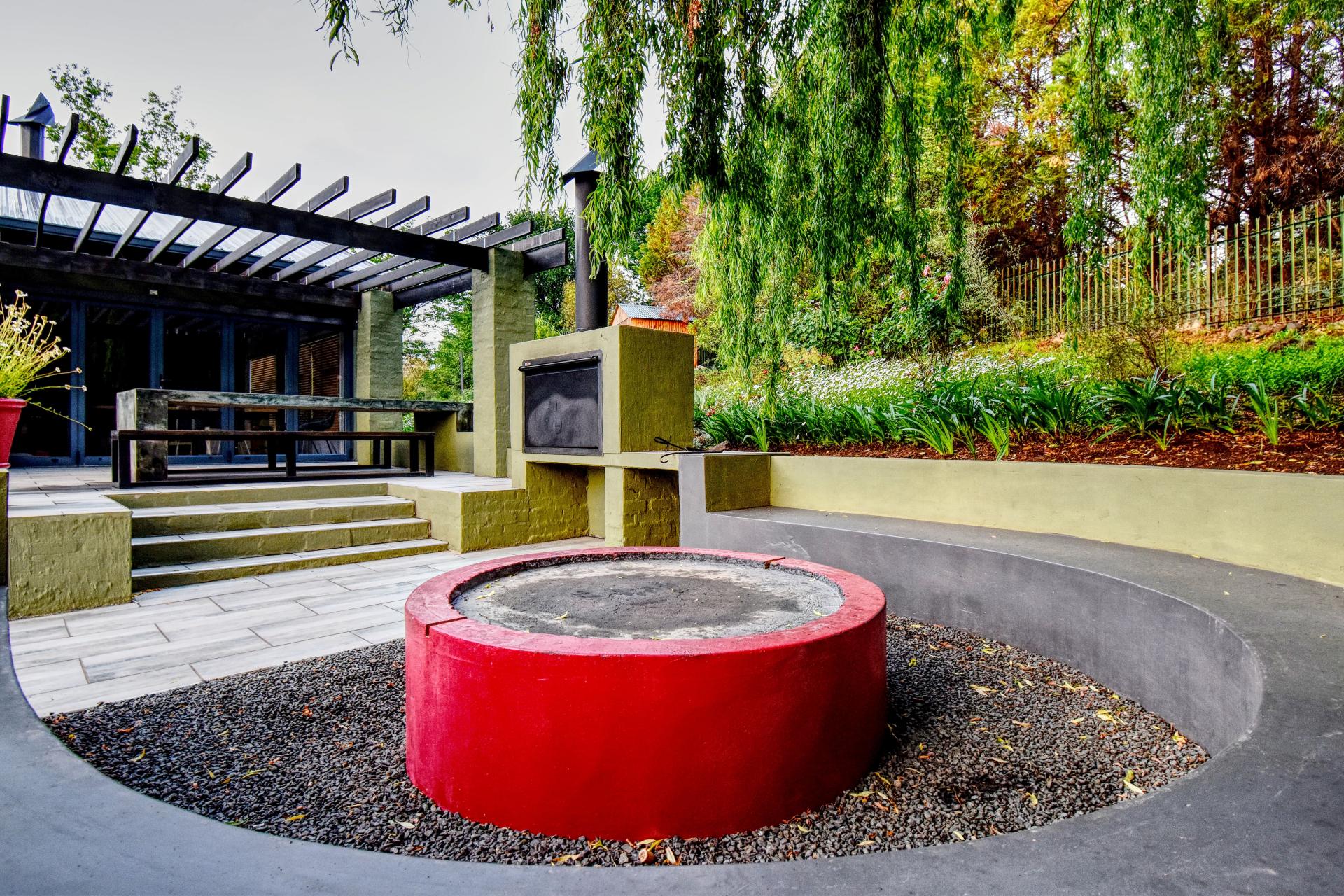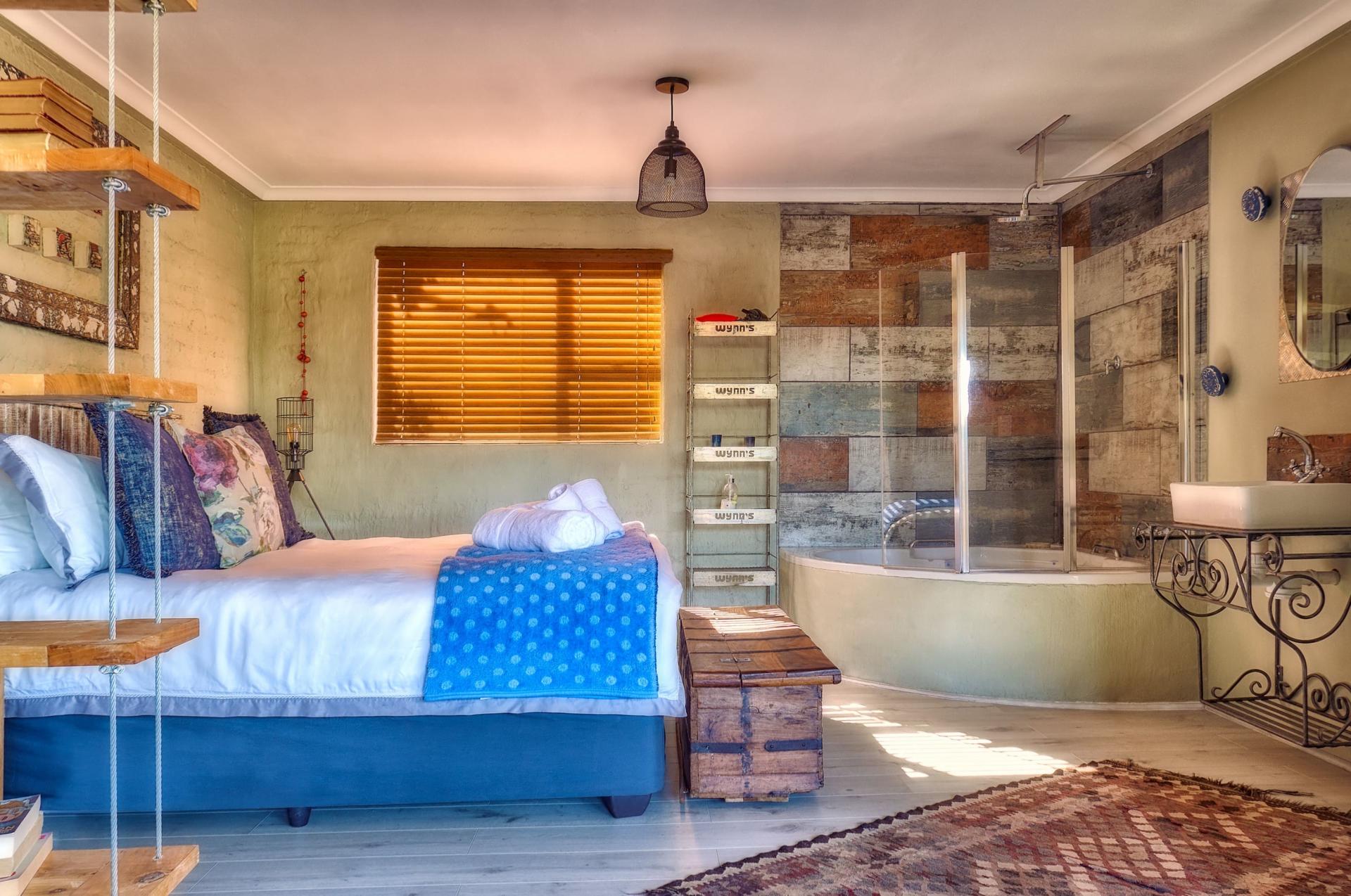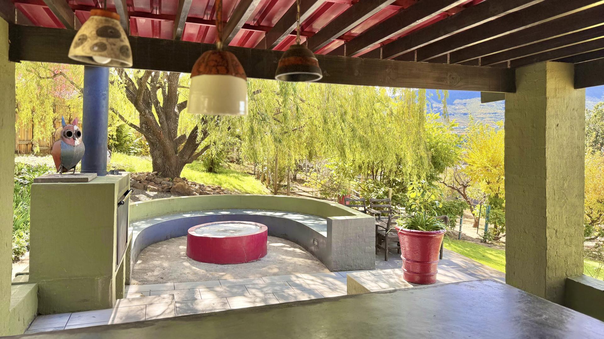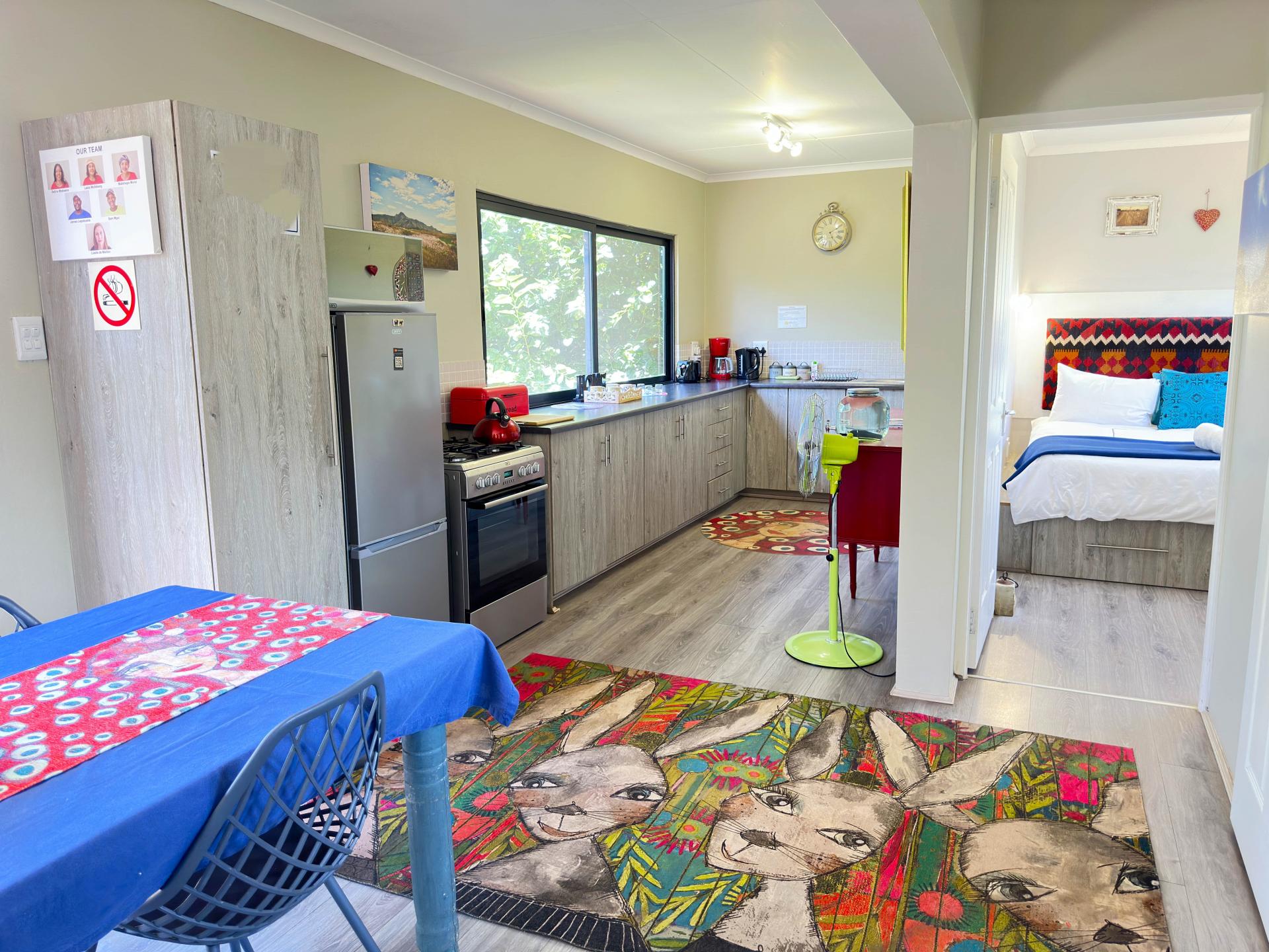 A charming and intimate studio apartment designed for two—an ideal hideaway for couples seeking romance and relaxation. Behind its signature red sliding door lies an elegant space with a queen-sized bed, a luxurious corner bathtub, a wood-burning fireplace, and a fully equipped kitchen. Sliding doors open to a private patio with seating and Weber braai, all framed by sweeping mountain scenery.