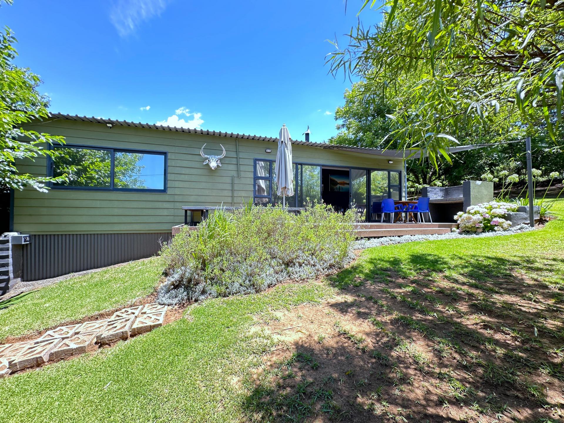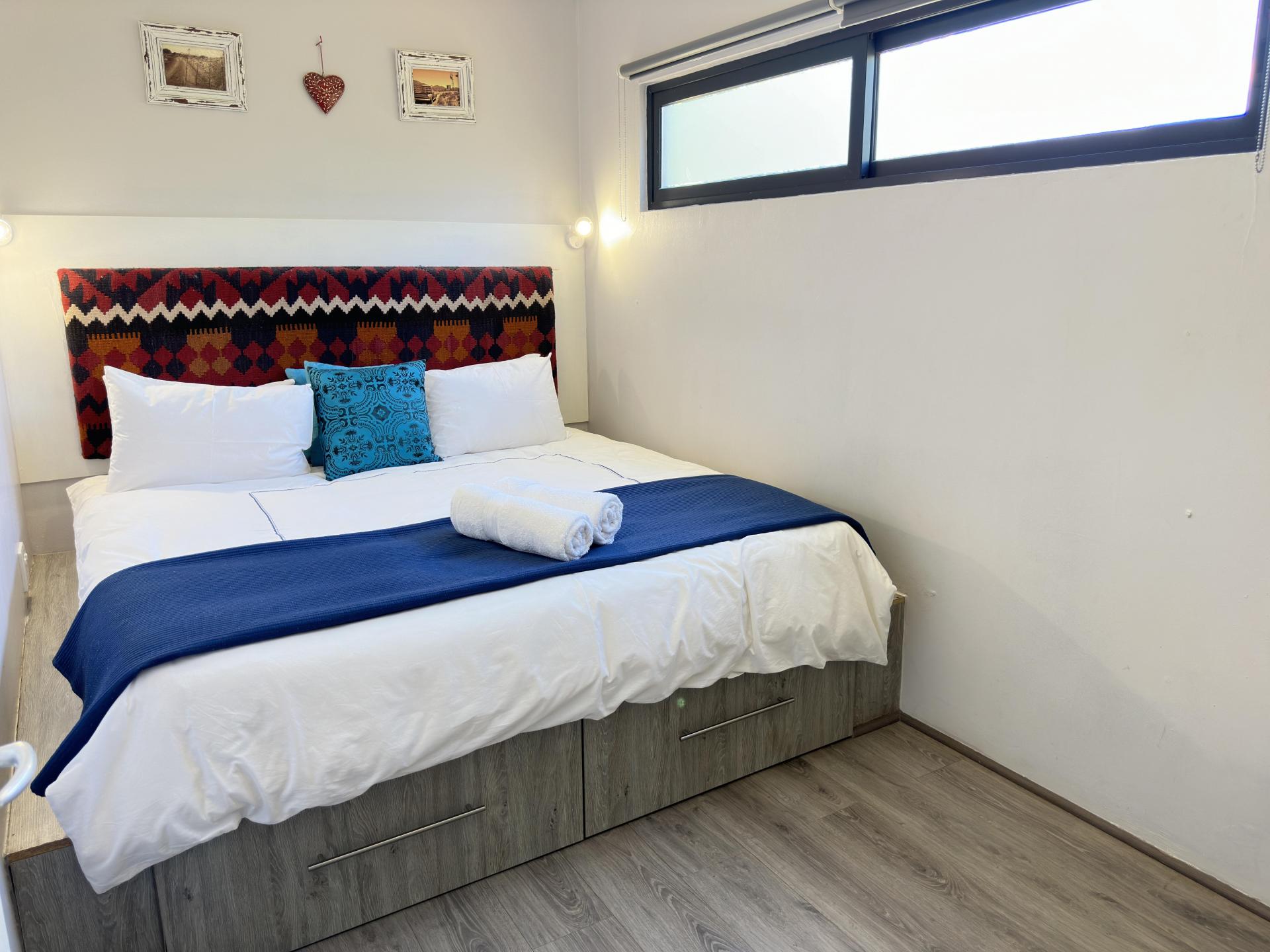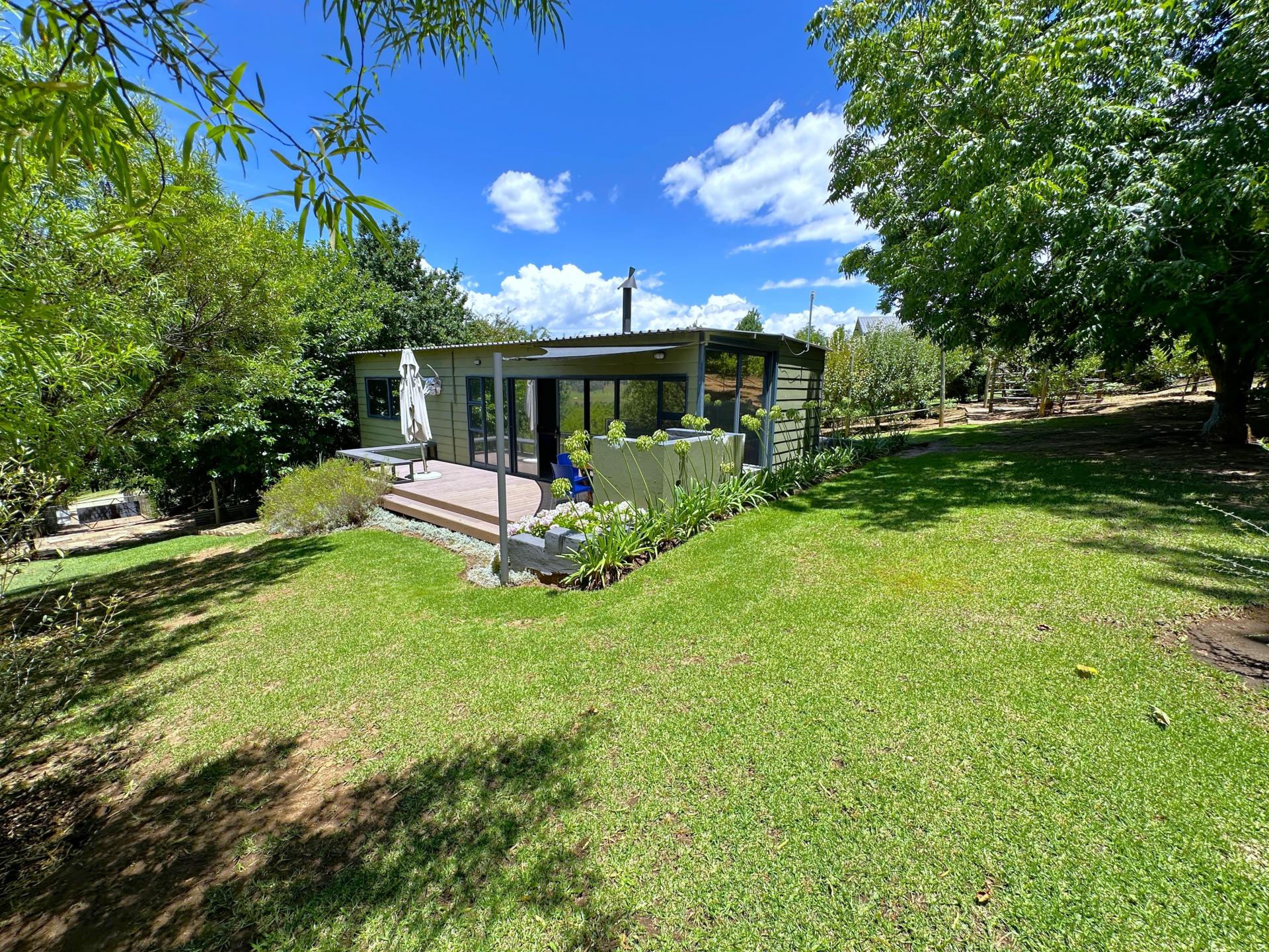 A stylish container home blending modern design with eco-conscious living, perfect for 4 guests. This unique cottage is bathed in natural light through floor-to-ceiling windows, creating a bright, airy atmosphere that embraces the surrounding landscape. The open-plan interior includes a chic kitchen, dining space, cozy lounge, and fireplace. Step outside to a private patio with a built-in braai and seating, where the panoramic views are nothing short of inspiring.