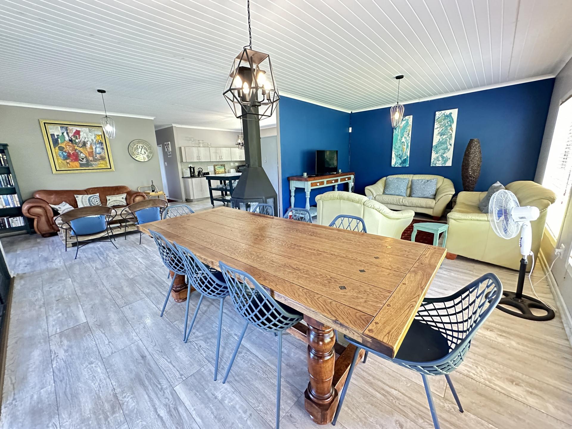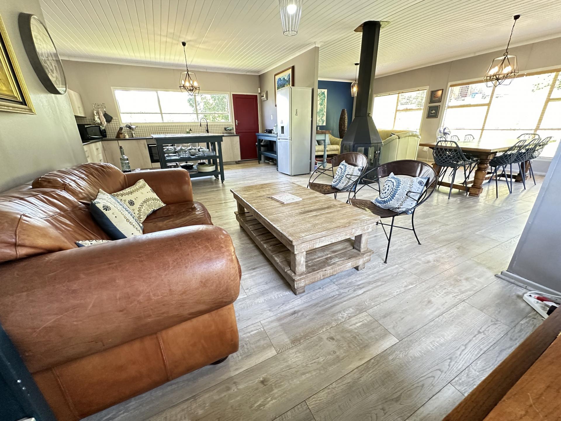 A luxurious 3-bedroom retreat accommodating up to 8 guests, set on a sprawling 2,800 sqm property with arguably the best views in town. Designed for peace and tranquility, the home features spacious open-plan living with a double lounge, dining area, modern kitchen, and an impressive extra-large 360-degree fireplace. Expansive glass sliding doors lead to a patio with a floating concrete dining table, a private fire pit, and a Jetmaster braai—all overlooking spectacular mountain and nature vistas.