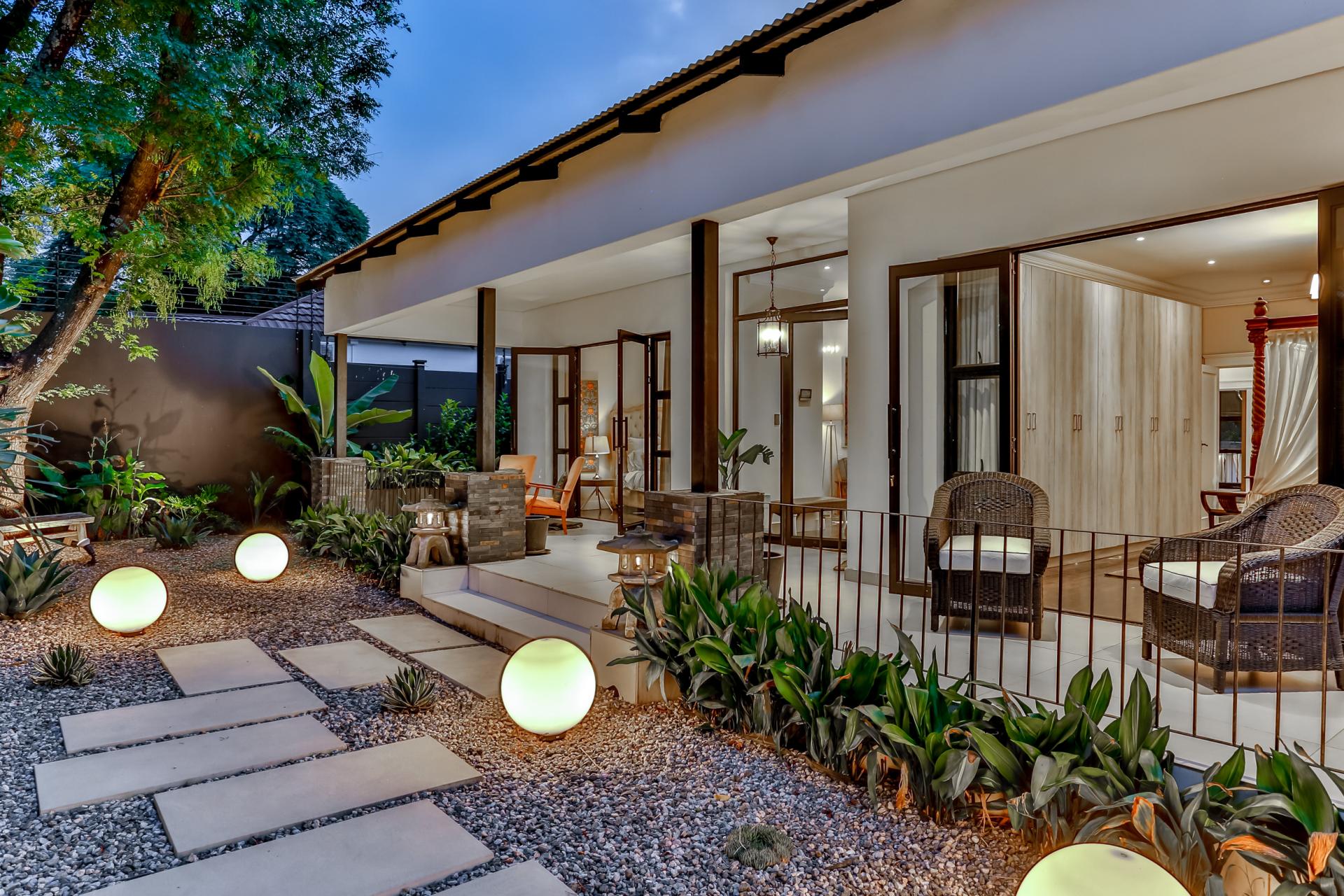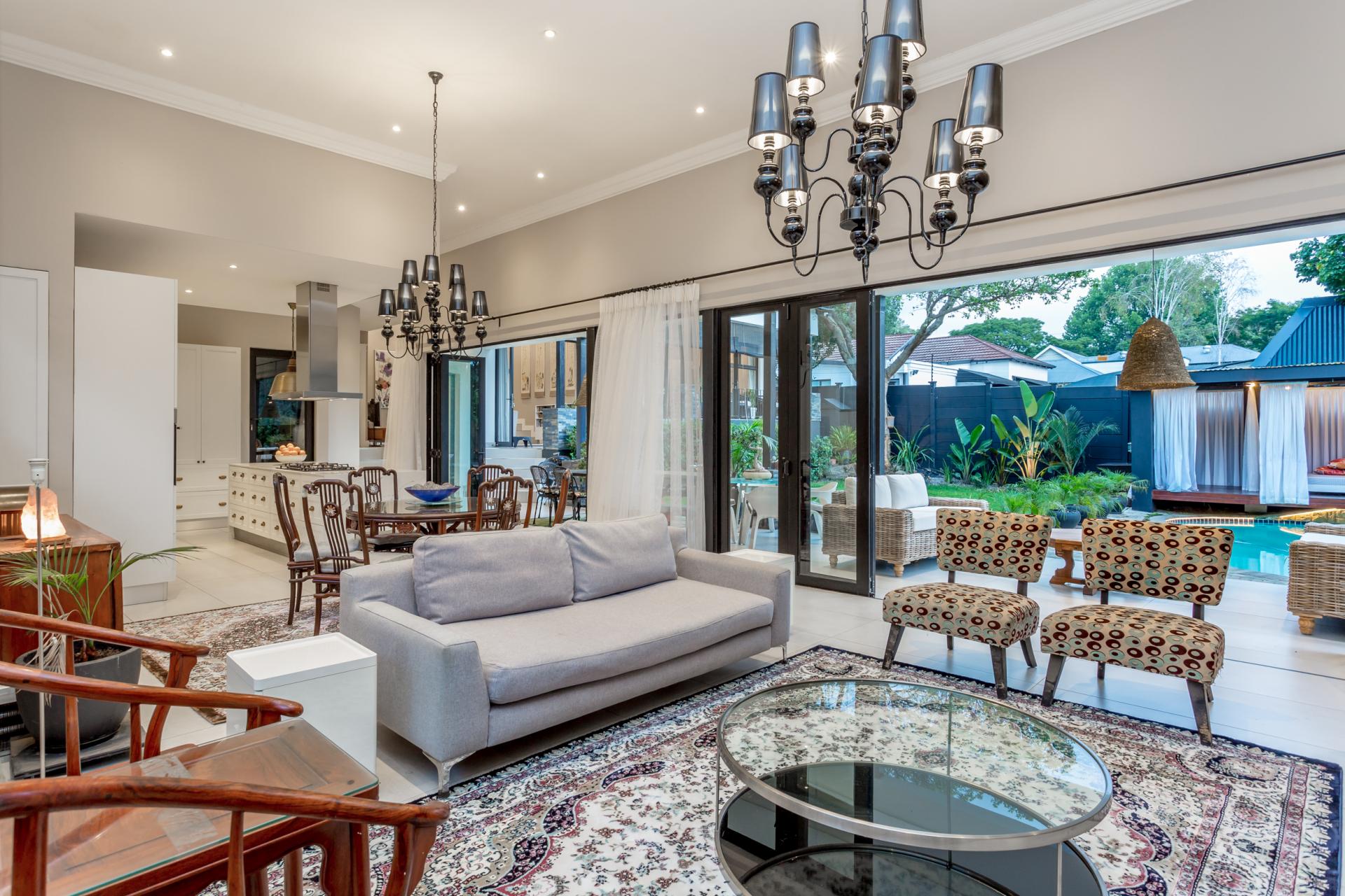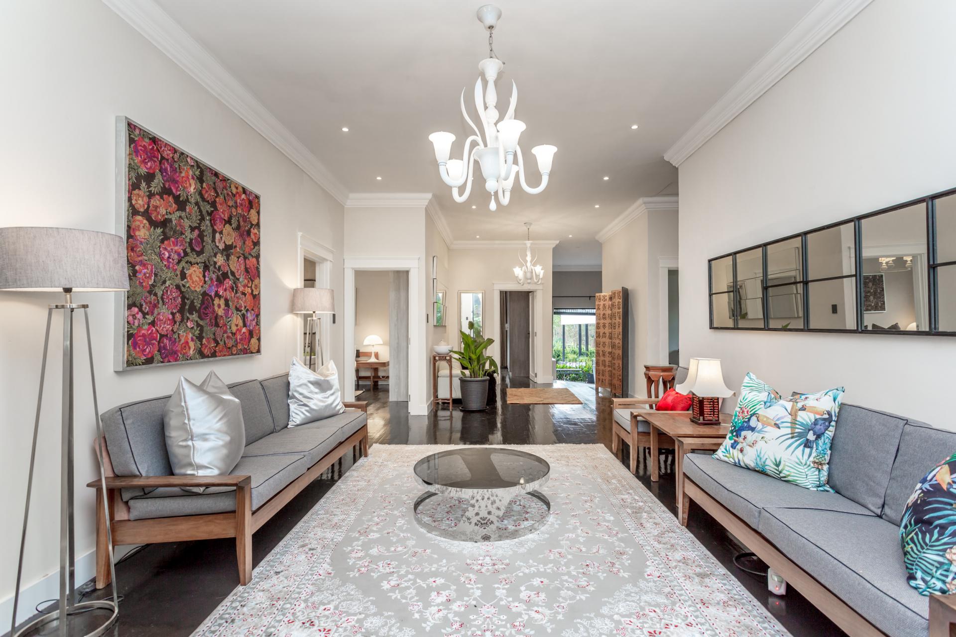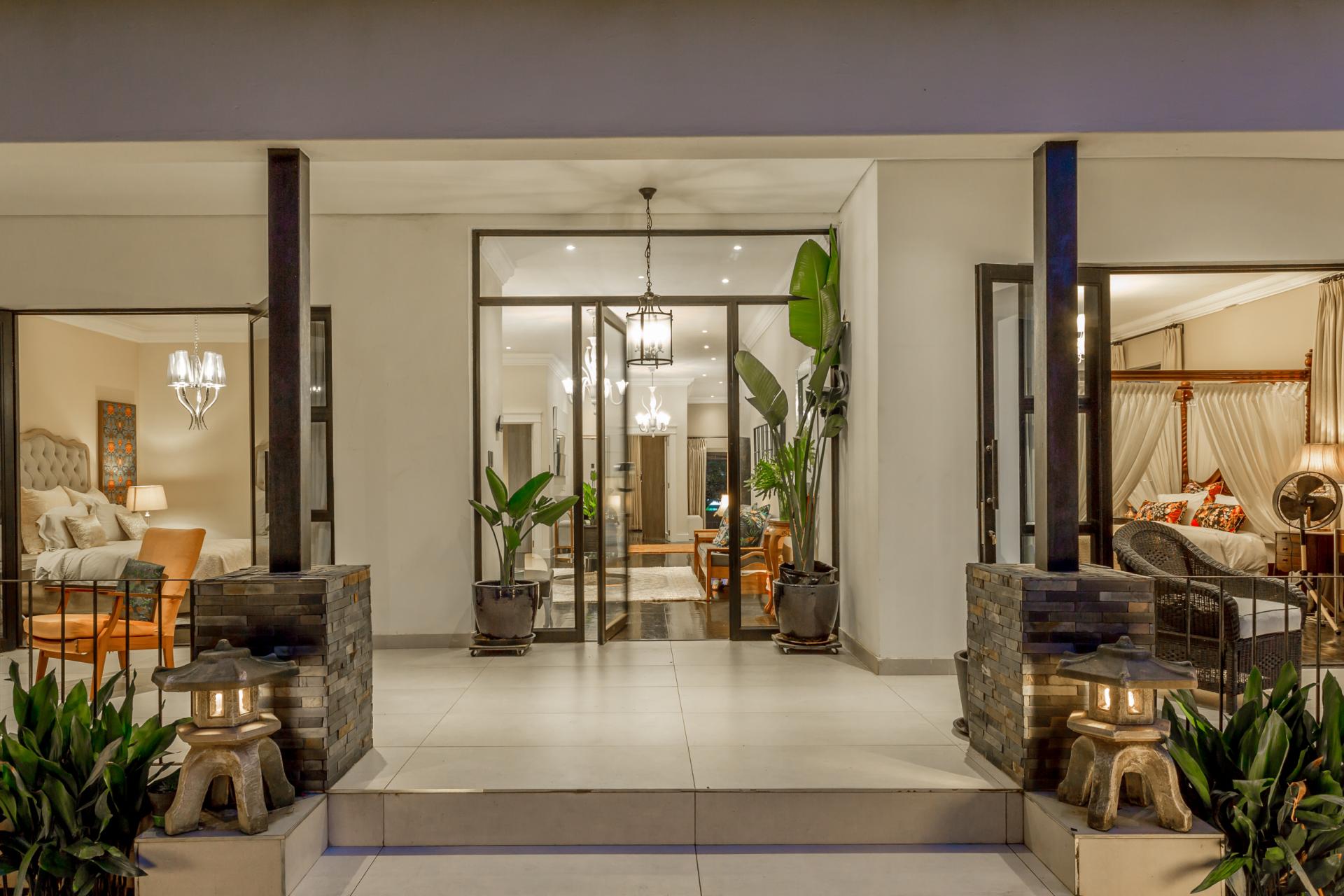 The house features an array of refined touches, including premium lighting throughout, with Venetian glass chandeliers and resort-style garden lights that create a warm, welcoming ambiance. With extensive wiring upgrades and energy-efficient solutions like a heat pump geyser and solarised backup power, this home promises significant utility savings.