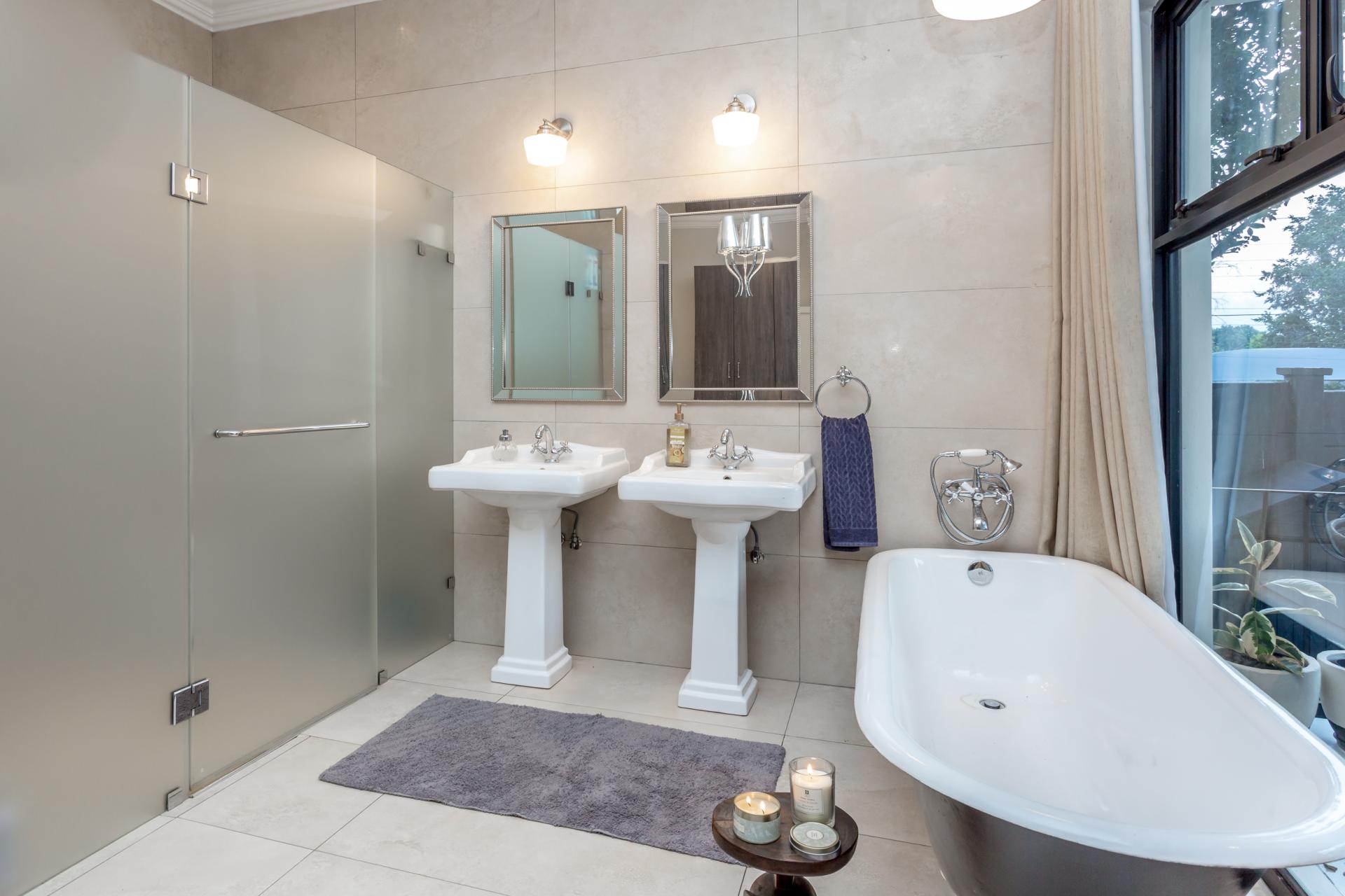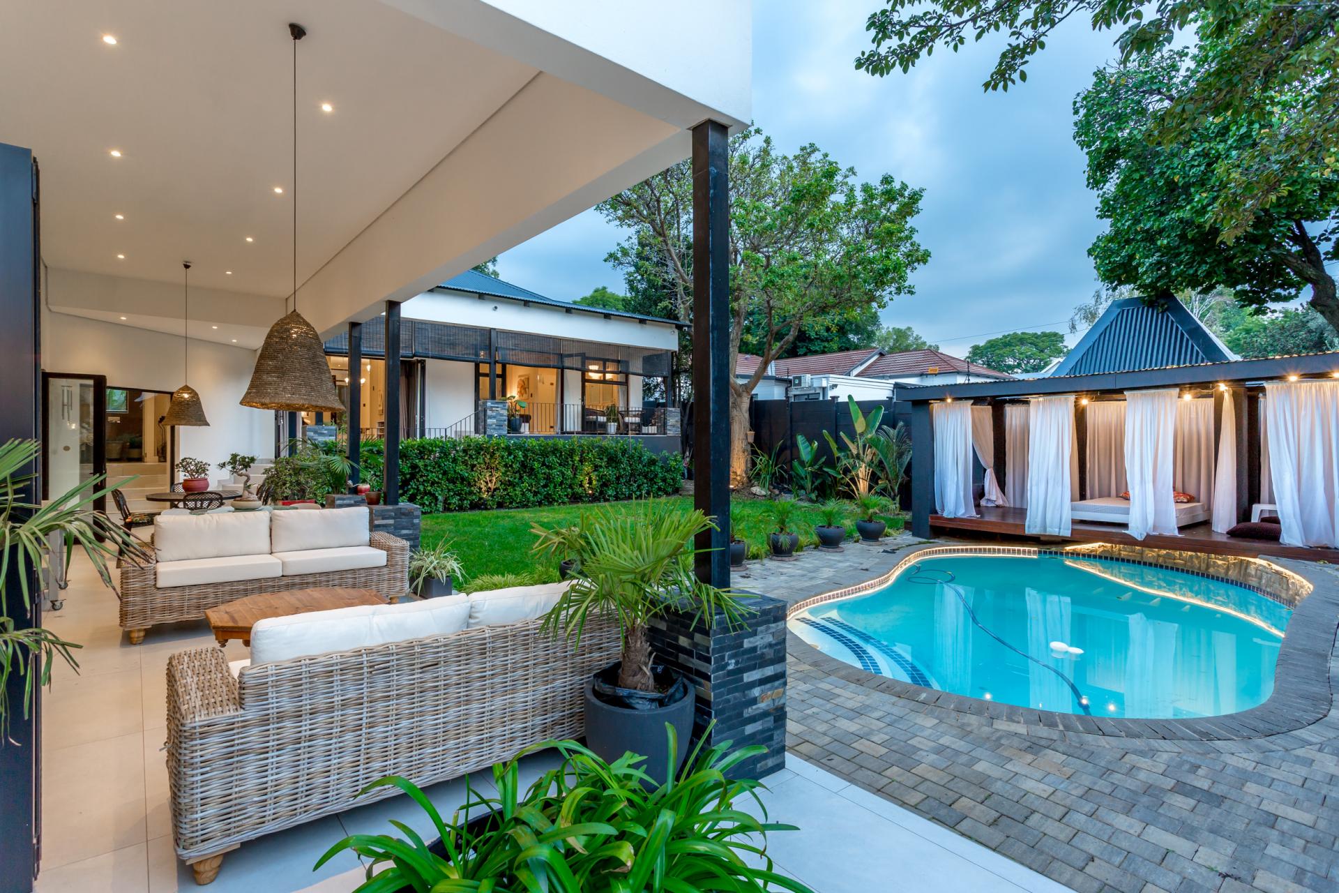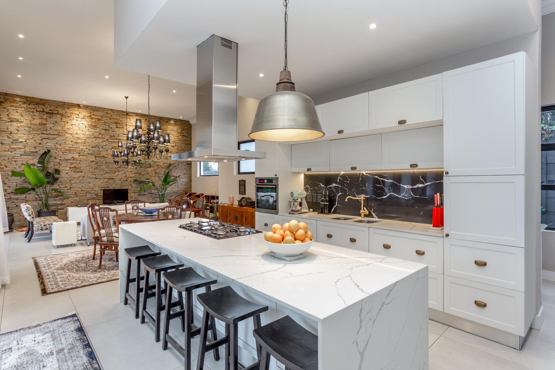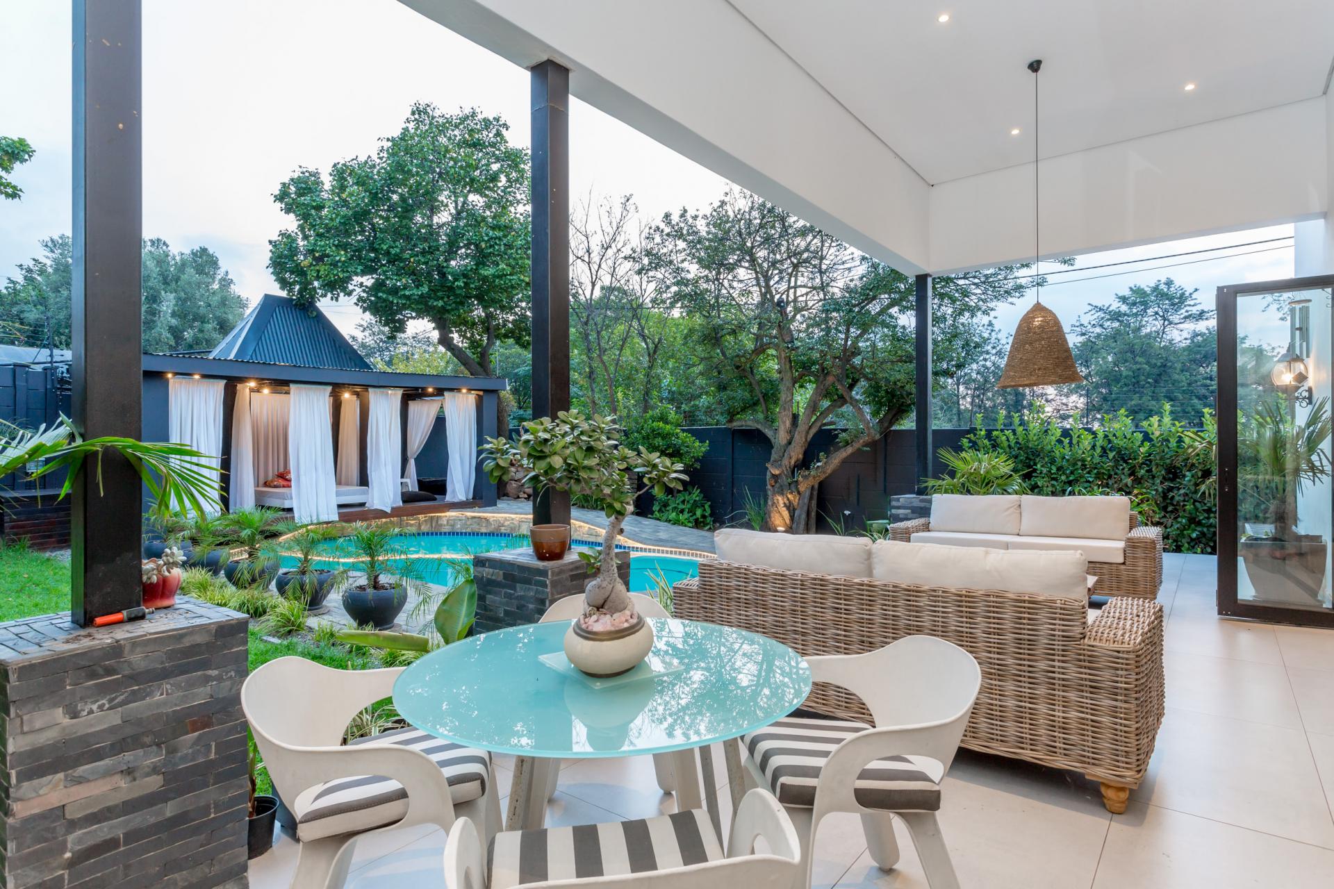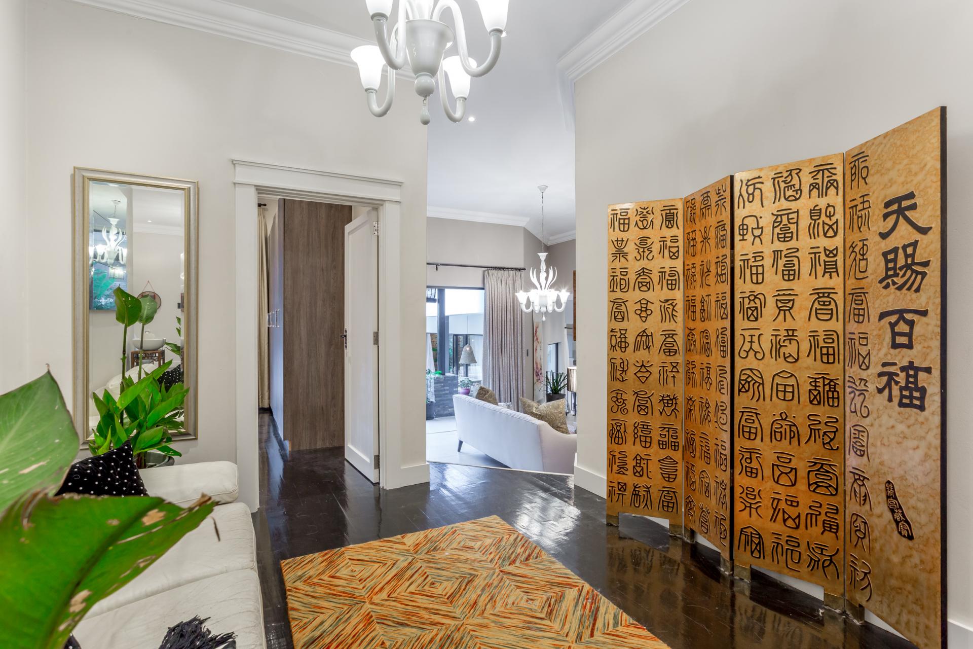 The house features an array of refined touches, including premium lighting throughout, with Venetian glass chandeliers and resort-style garden lights that create a warm, welcoming ambiance. With extensive wiring upgrades and energy-efficient solutions like a heat pump geyser and solarised backup power, this home promises significant utility savings.