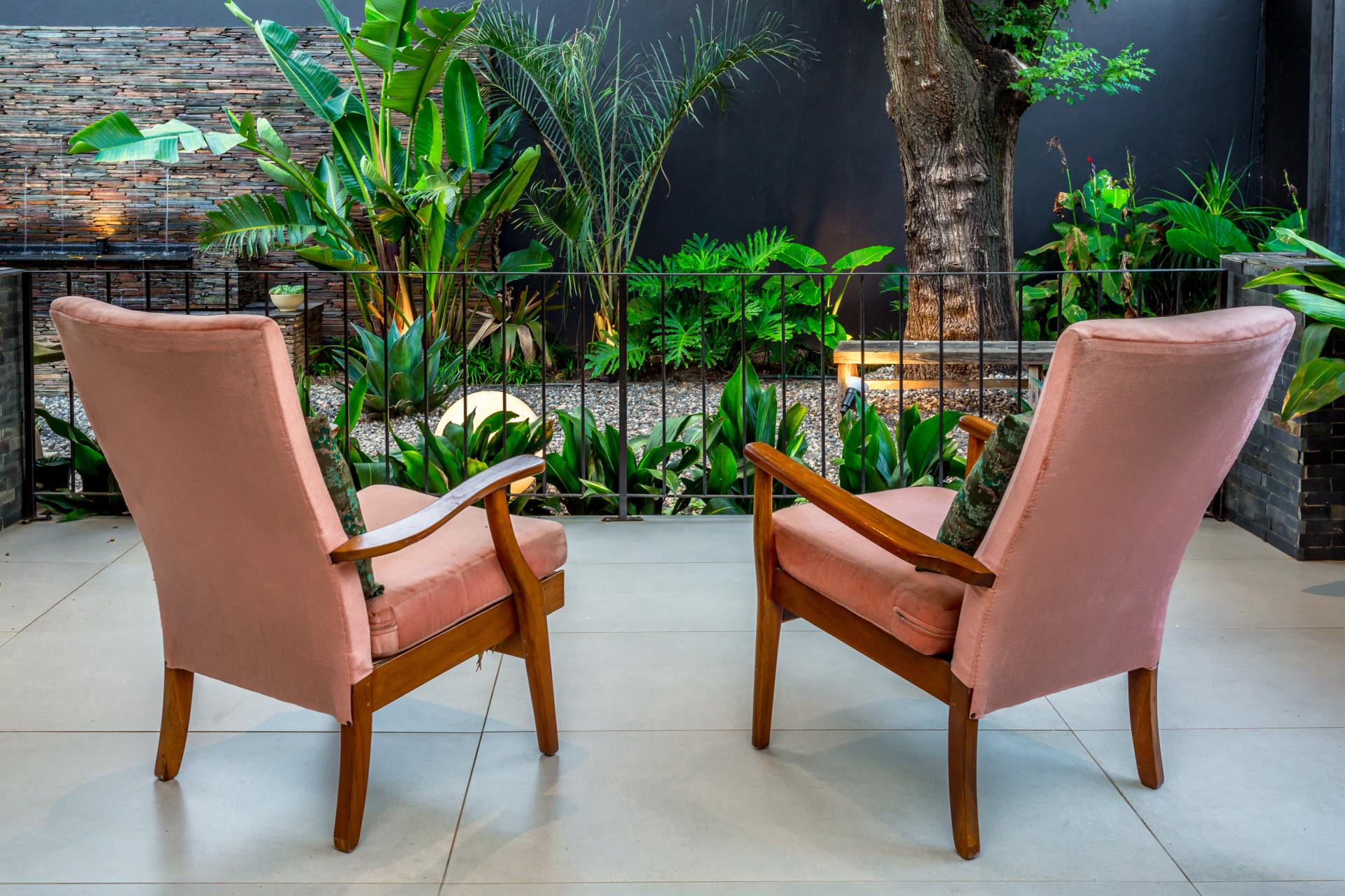 Each bedroom offers ample built-in storage with custom drawers, and three bedrooms feature French doors opening onto covered patios, seamlessly connecting indoor and outdoor living. The outdoor entertainment area, complete with a gazebo, pool, and water feature, is perfect for hosting guests or enjoying peaceful moments in a tropical garden oasis.