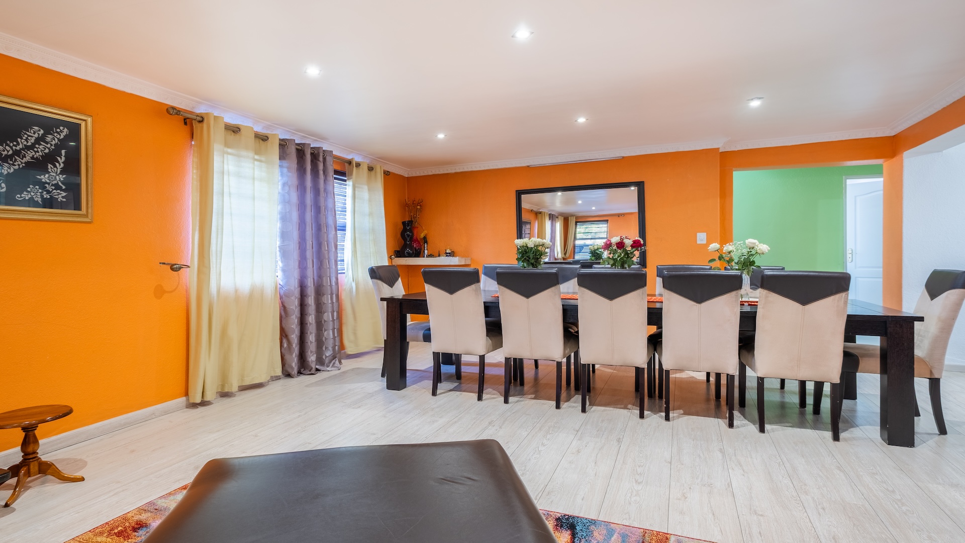 Adding to its appeal, this property features a separate flat with its own parking bay, complete with a lounge, dining room, kitchen, and bathroom – making it an ideal dual living arrangement. Parking is plentiful, with secure off-road parking for about five cars, including a double garage with remote access, direct access, and a tandem covered parking area on the side. For added security this home has a monitored alarm and security beams on the full exterior of the home and flat.