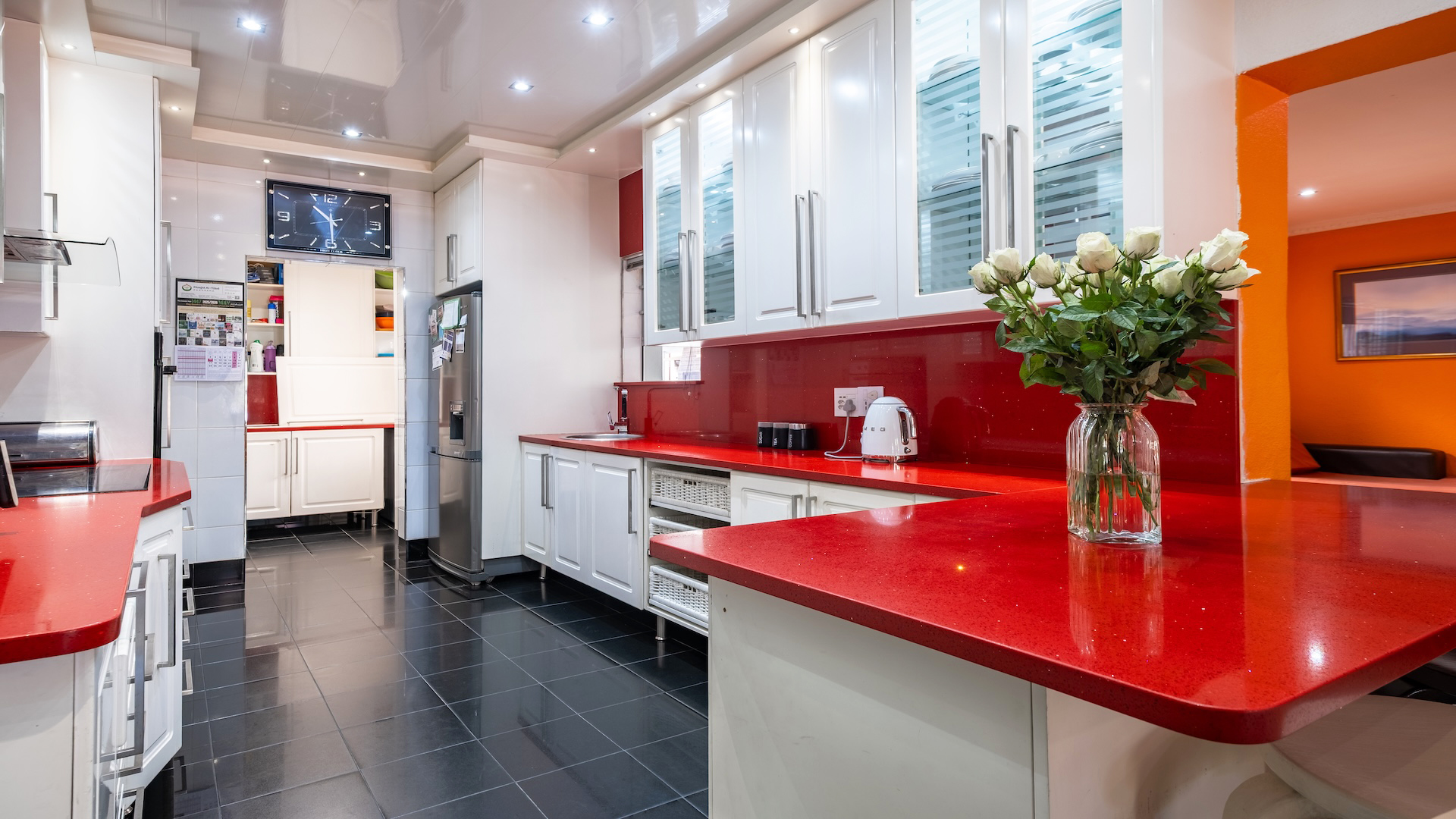 As you enter the home, you're greeted by an expansive open-plan lounge, dining room, and gourmet kitchen – this space is the heart of the home. The well-appointed fireplace will add warmth and create a cozy atmosphere, whether you're cooking up a storm, enjoying lazy lunches, or just relaxing on the sofa. The kitchen itself is a culinary dream, boasting Caesar tops, a breakfast bar, an undercounter oven, hob, and an extractor fan. A separate scullery is pre-plumped for a washing machine and dishwasher, with space for a tumble dryer, making household chores a breeze.