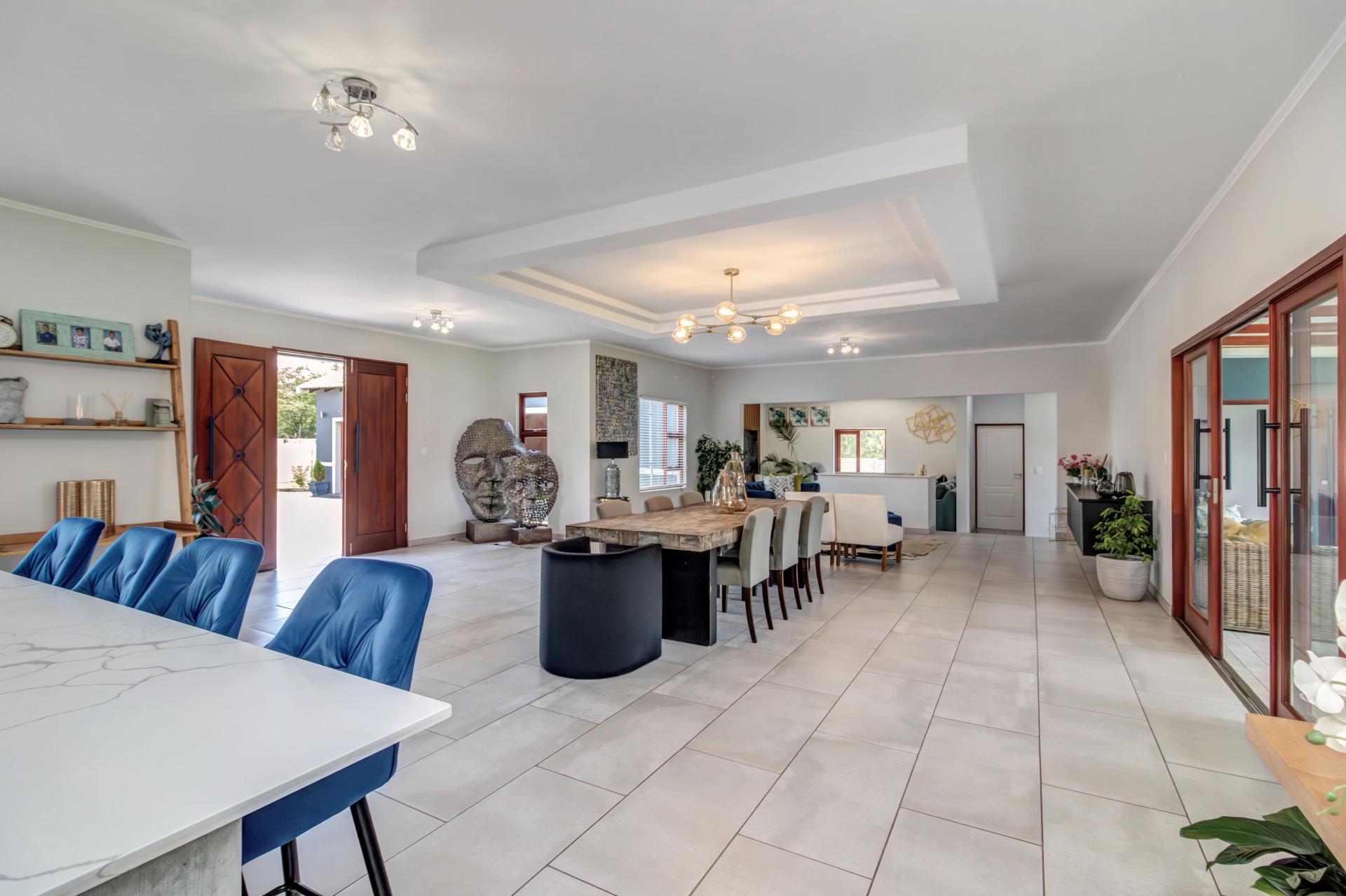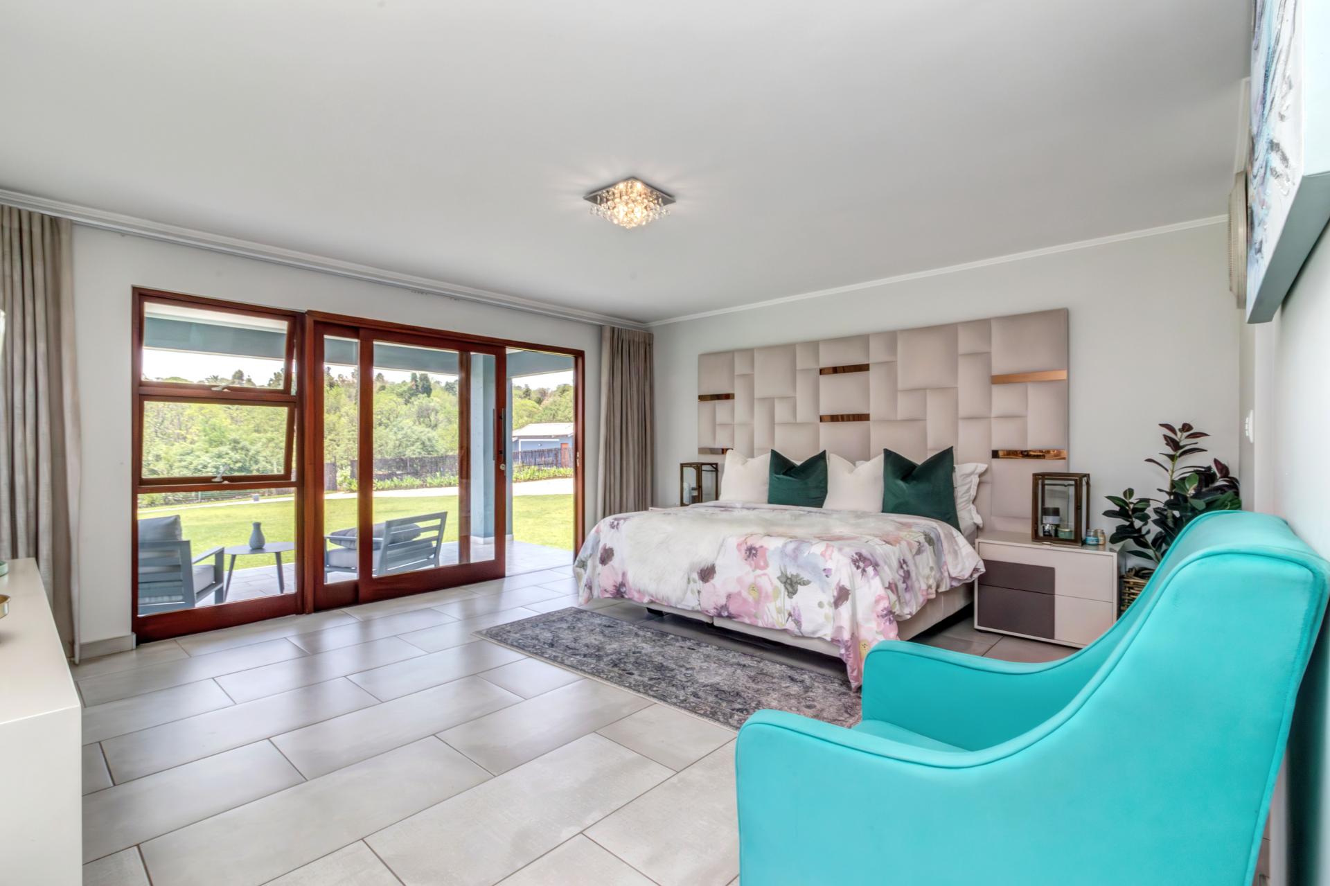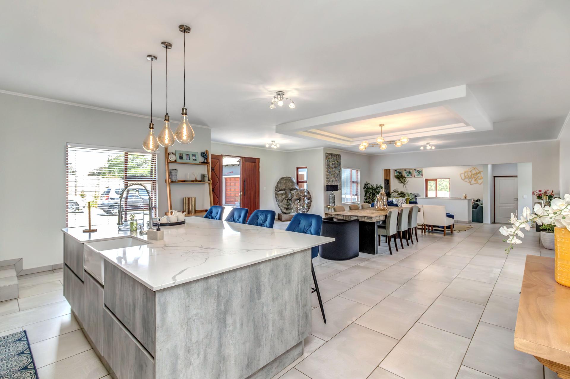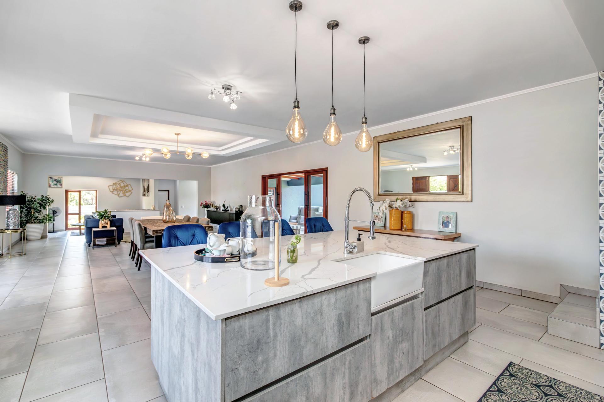 This exquisite residence is a masterpiece of modern design, nestled in a private and secure scenic country setting. As you step through the grand entrance you are greeted by expansive beautiful living and dining spaces, a symphony of opulence, with lavish finishes, rich textures, and impeccable attention to detail. The spacious open-plan living area flows seamlessly into the gourmet kitchen, equipped with high-end appliances, sleek marble countertops and ample cupboard space.