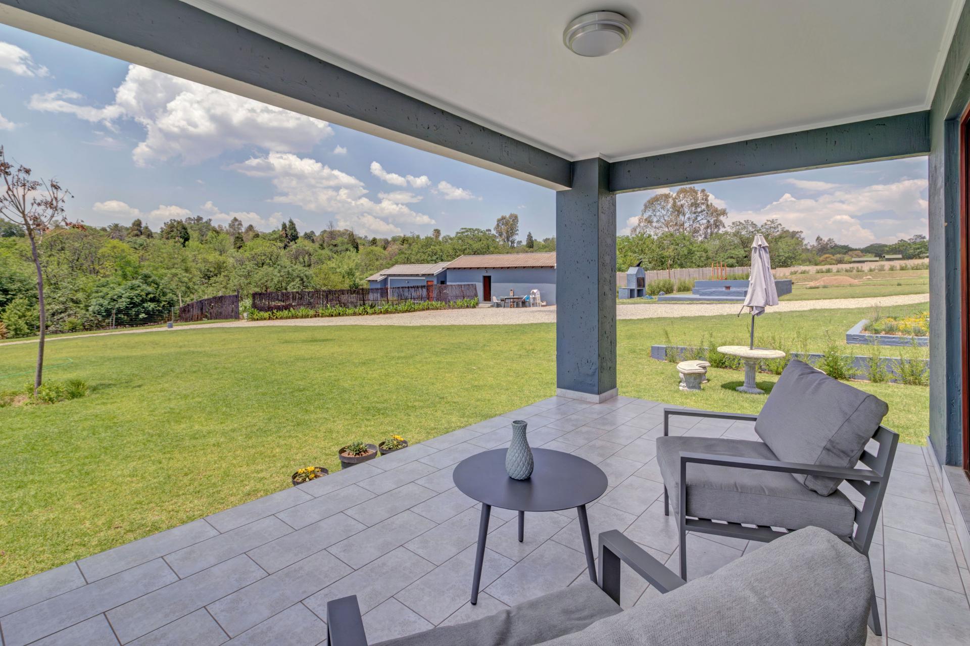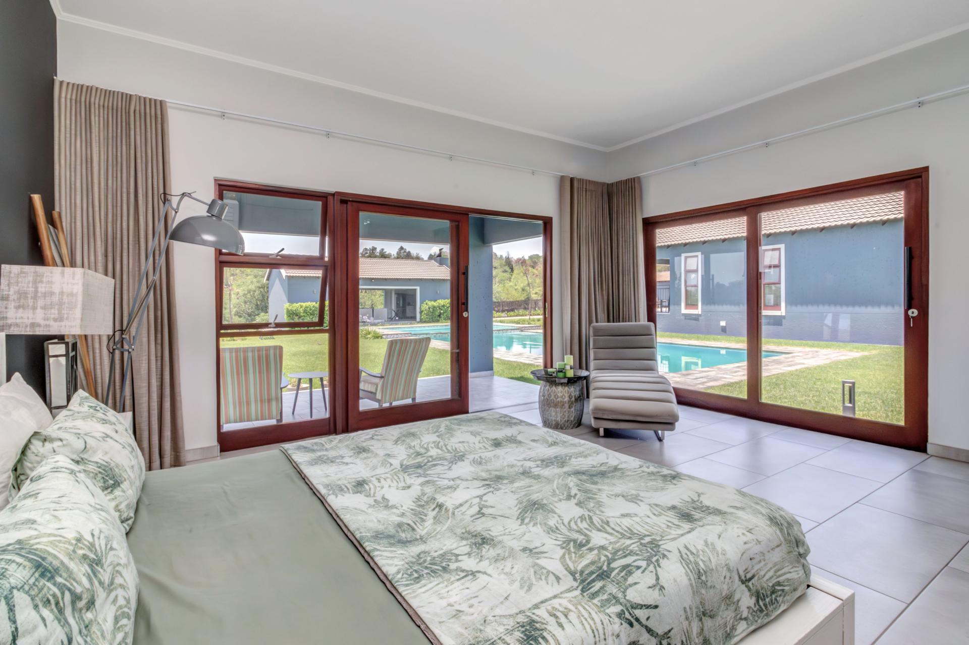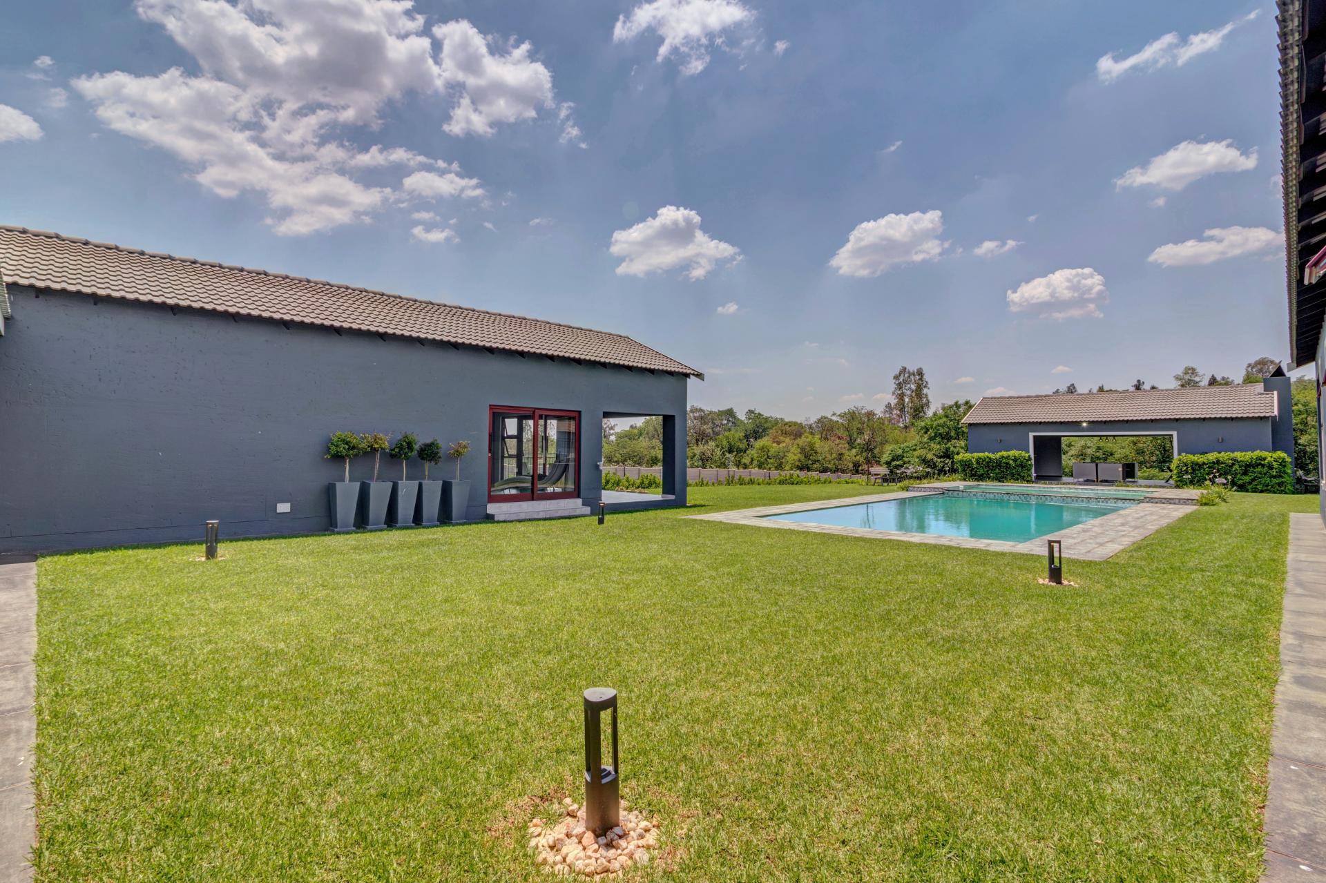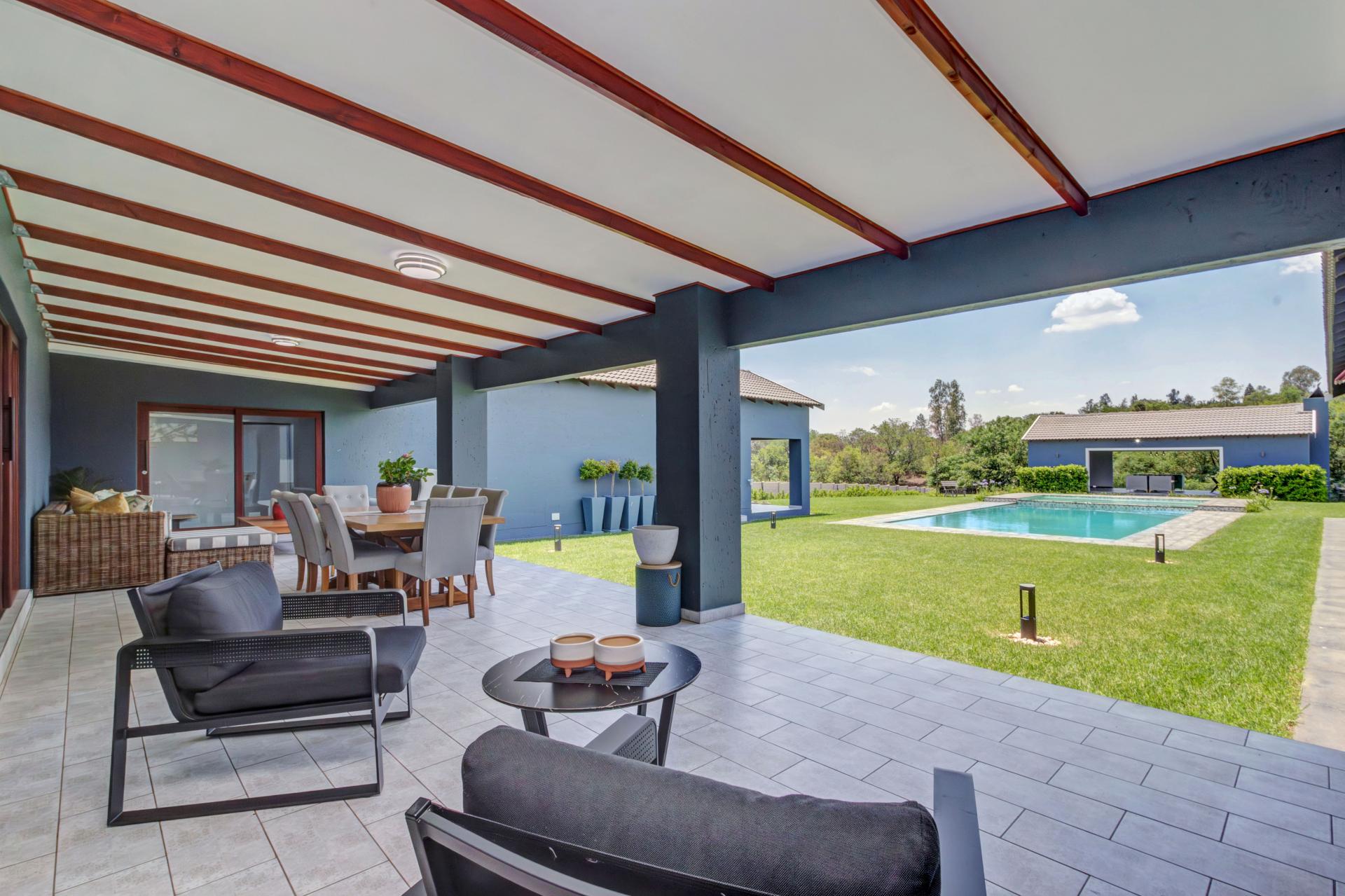 This exquisite residence is a masterpiece of modern design, nestled in a private and secure scenic country setting. As you step through the grand entrance you are greeted by expansive beautiful living and dining spaces, a symphony of opulence, with lavish finishes, rich textures, and impeccable attention to detail. The spacious open-plan living area flows seamlessly into the gourmet kitchen, equipped with high-end appliances, sleek marble countertops and ample cupboard space.