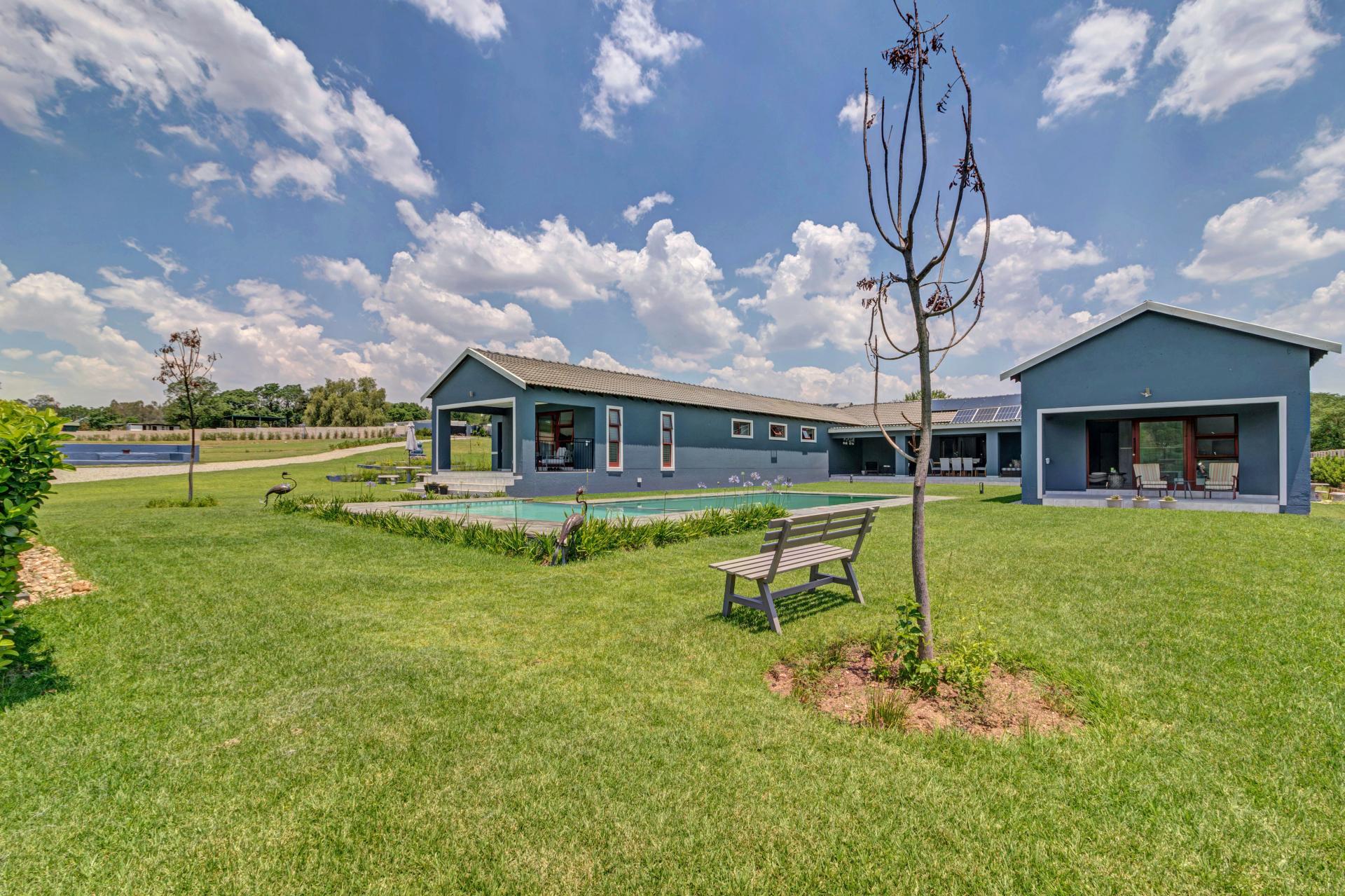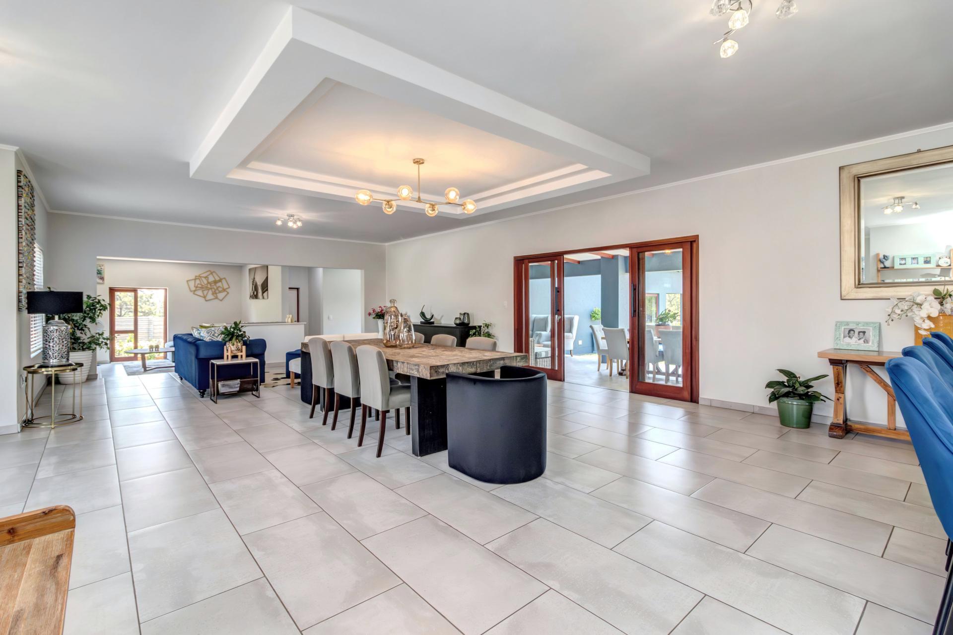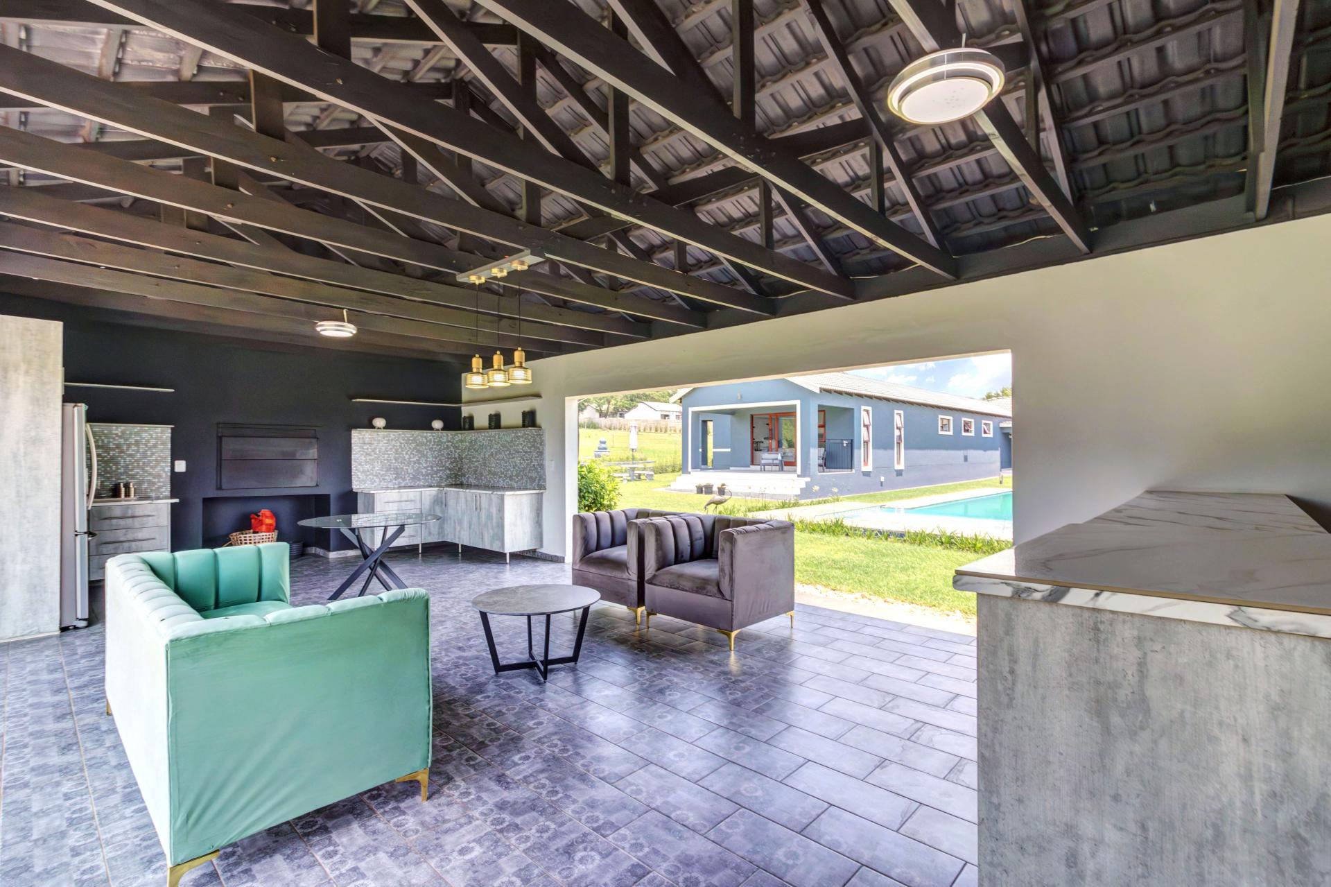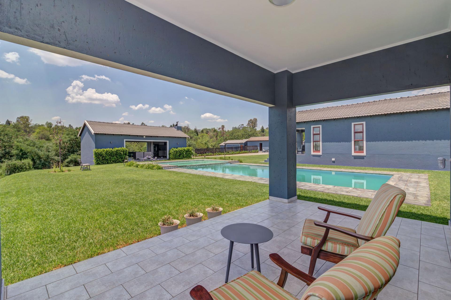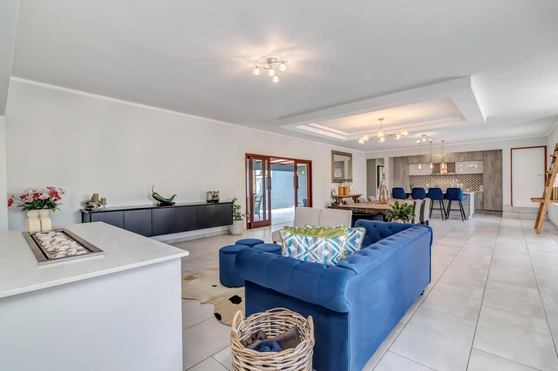 This exquisite residence is a masterpiece of modern design, nestled in a private and secure scenic country setting. As you step through the grand entrance you are greeted by expansive beautiful living and dining spaces, a symphony of opulence, with lavish finishes, rich textures, and impeccable attention to detail. The spacious open-plan living area flows seamlessly into the gourmet kitchen, equipped with high-end appliances, sleek marble countertops and ample cupboard space.