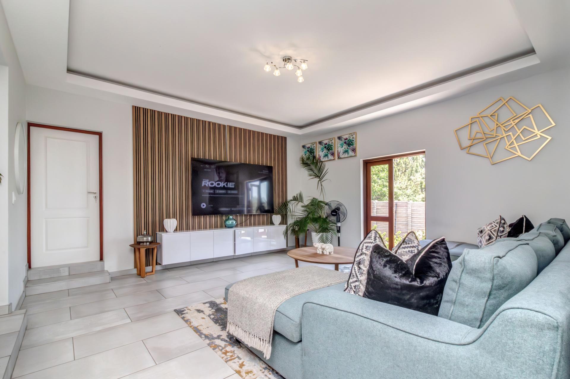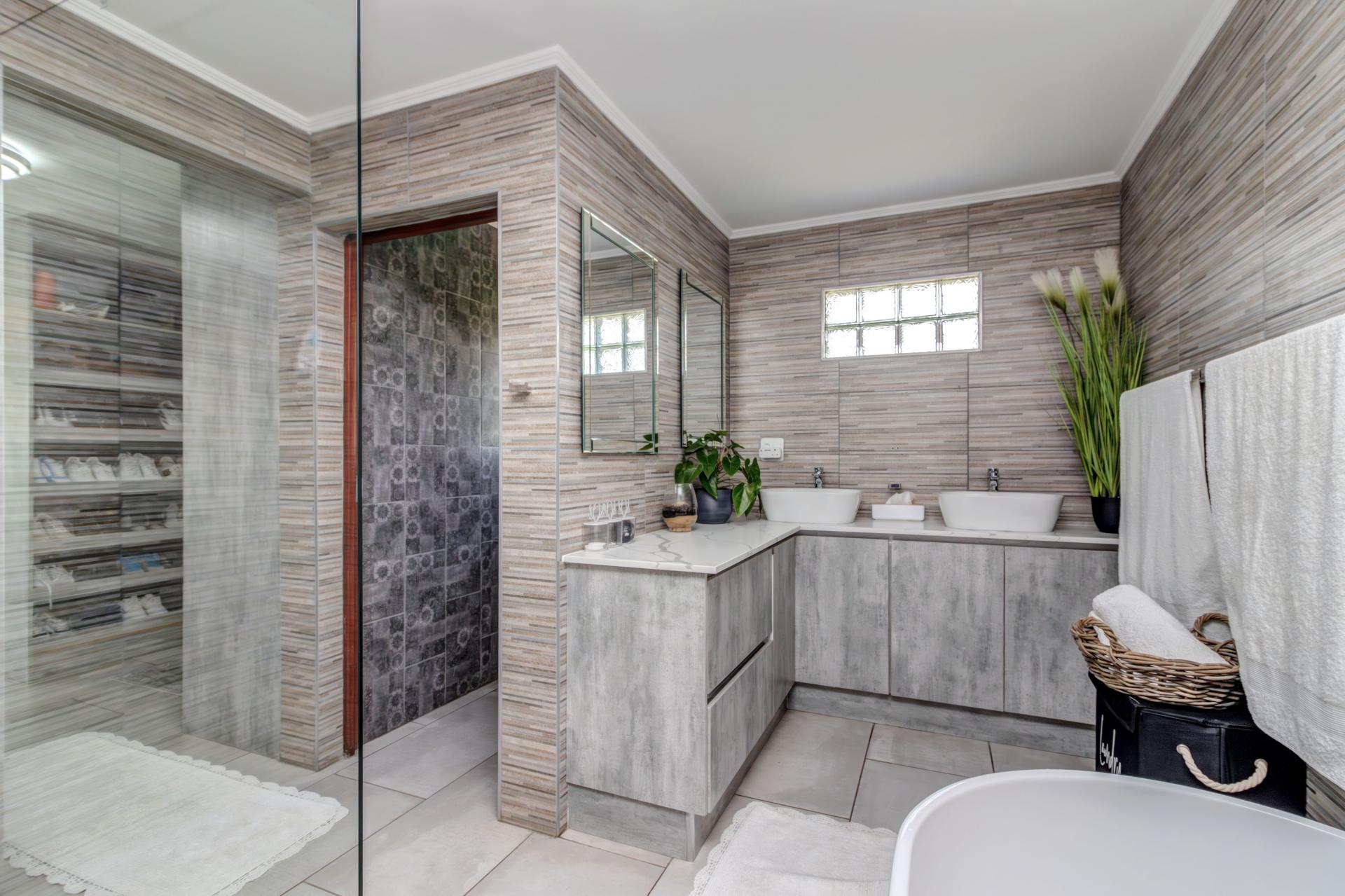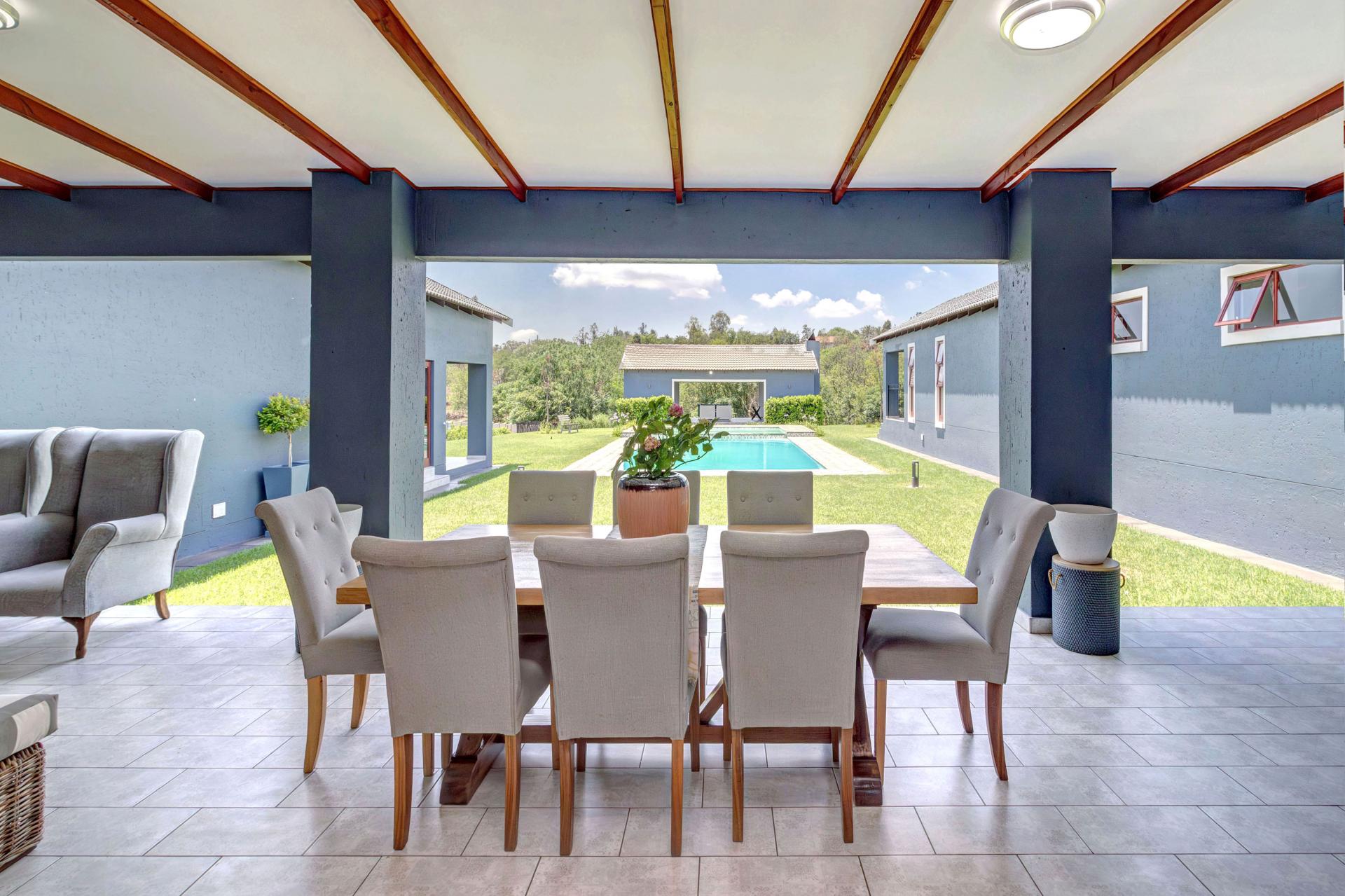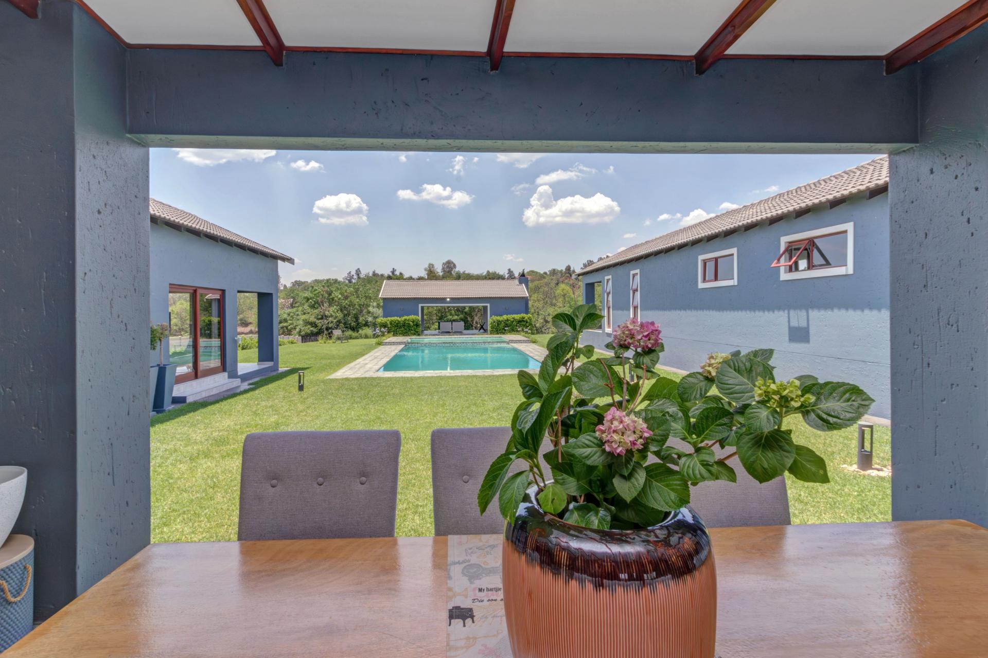This exquisite residence is a masterpiece of modern design, nestled in a private and secure scenic country setting. As you step through the grand entrance you are greeted by expansive beautiful living and dining spaces, a symphony of opulence, with lavish finishes, rich textures, and impeccable attention to detail. The spacious open-plan living area flows seamlessly into the gourmet kitchen, equipped with high-end appliances, sleek marble countertops and ample cupboard space.