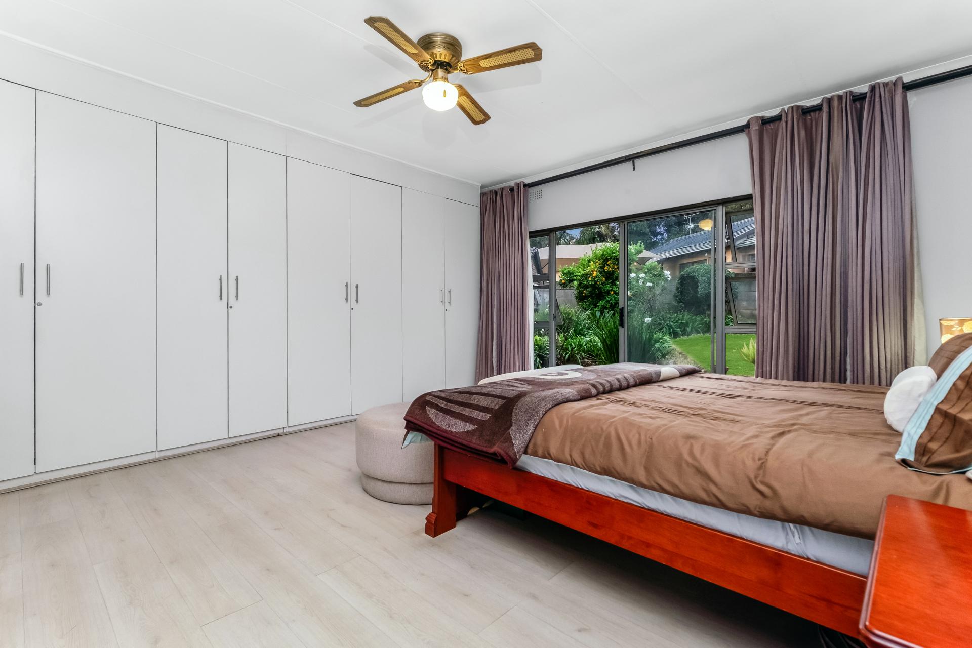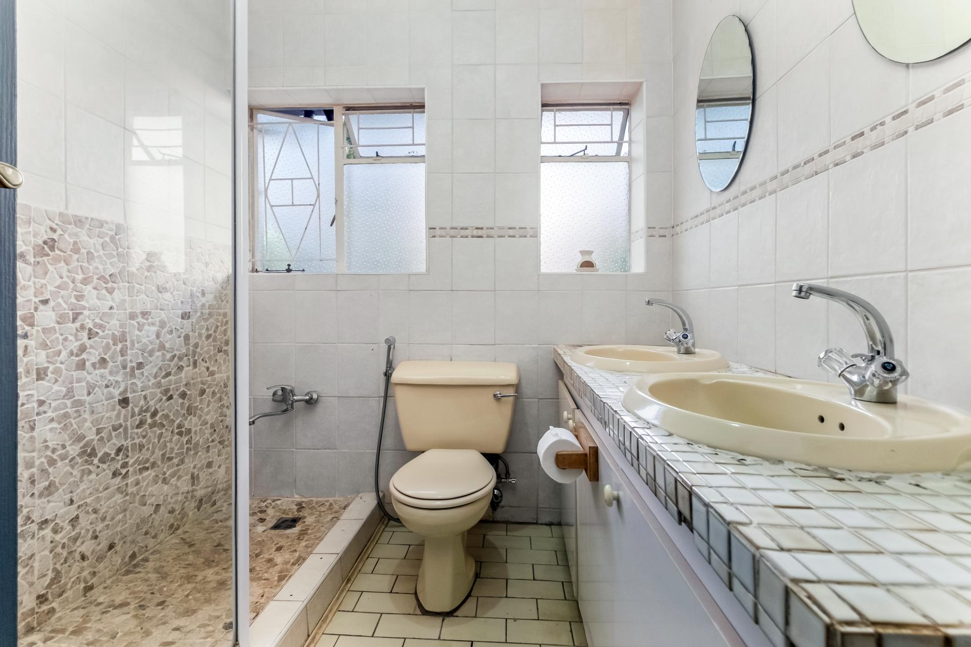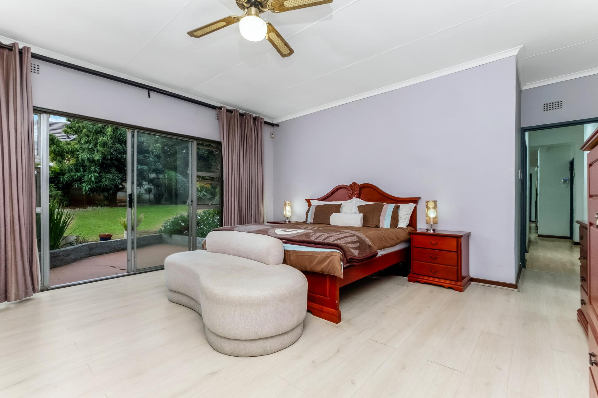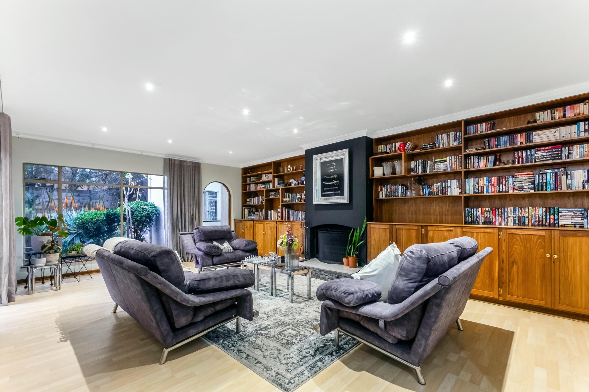The main house comprises five well-appointed bedrooms, with the primary suite enjoying abundant cupboard space, a walk-in closet, and a luxurious en-suite bathroom that opens onto a private garden retreat. The home includes three bathrooms in total, designed with convenience and elegance in mind. The kitchen, fitted with a gas hob, flows seamlessly into the dining area and four spacious entertainment rooms, providing ample space for both intimate gatherings and large-scale entertaining.