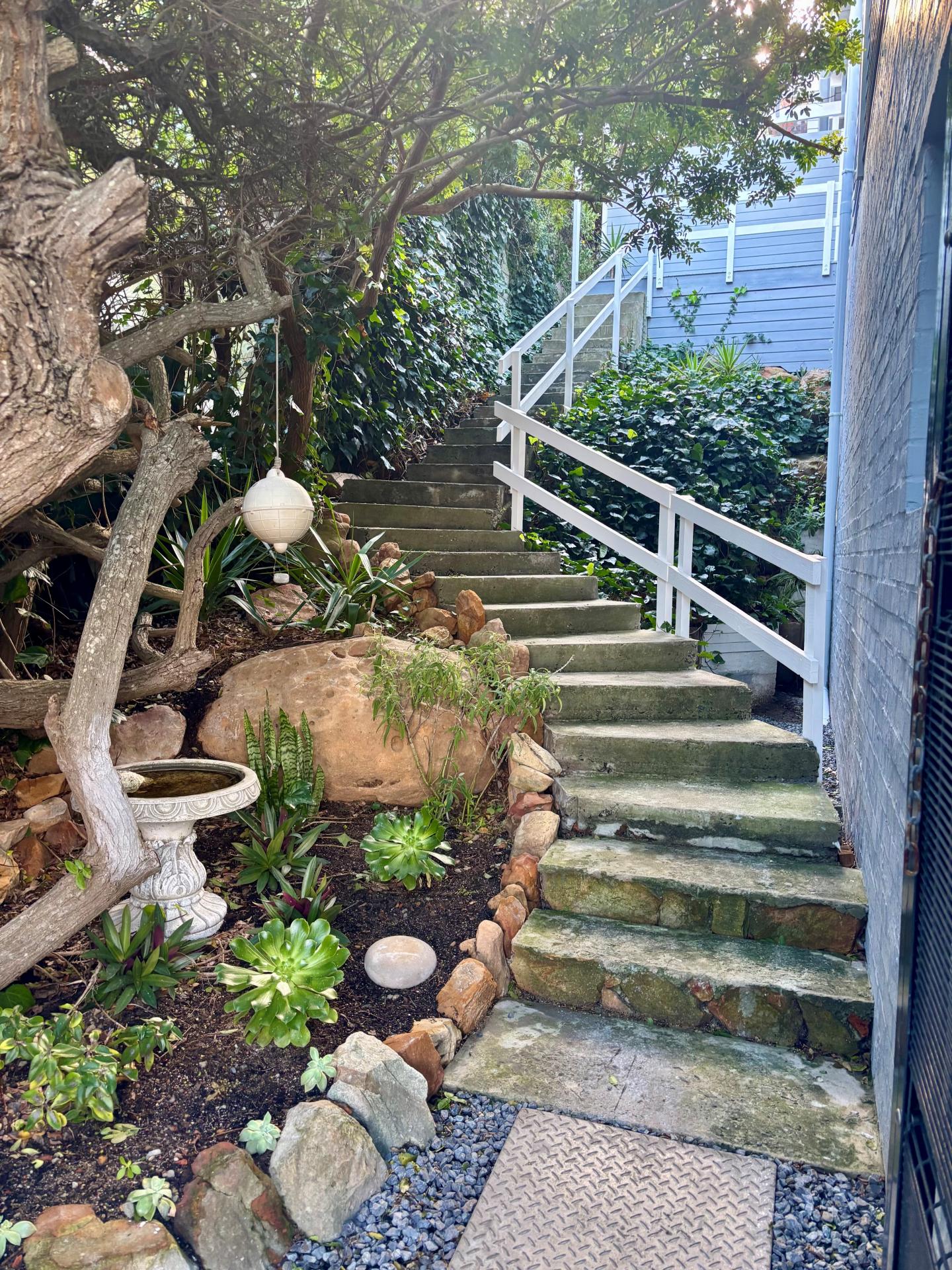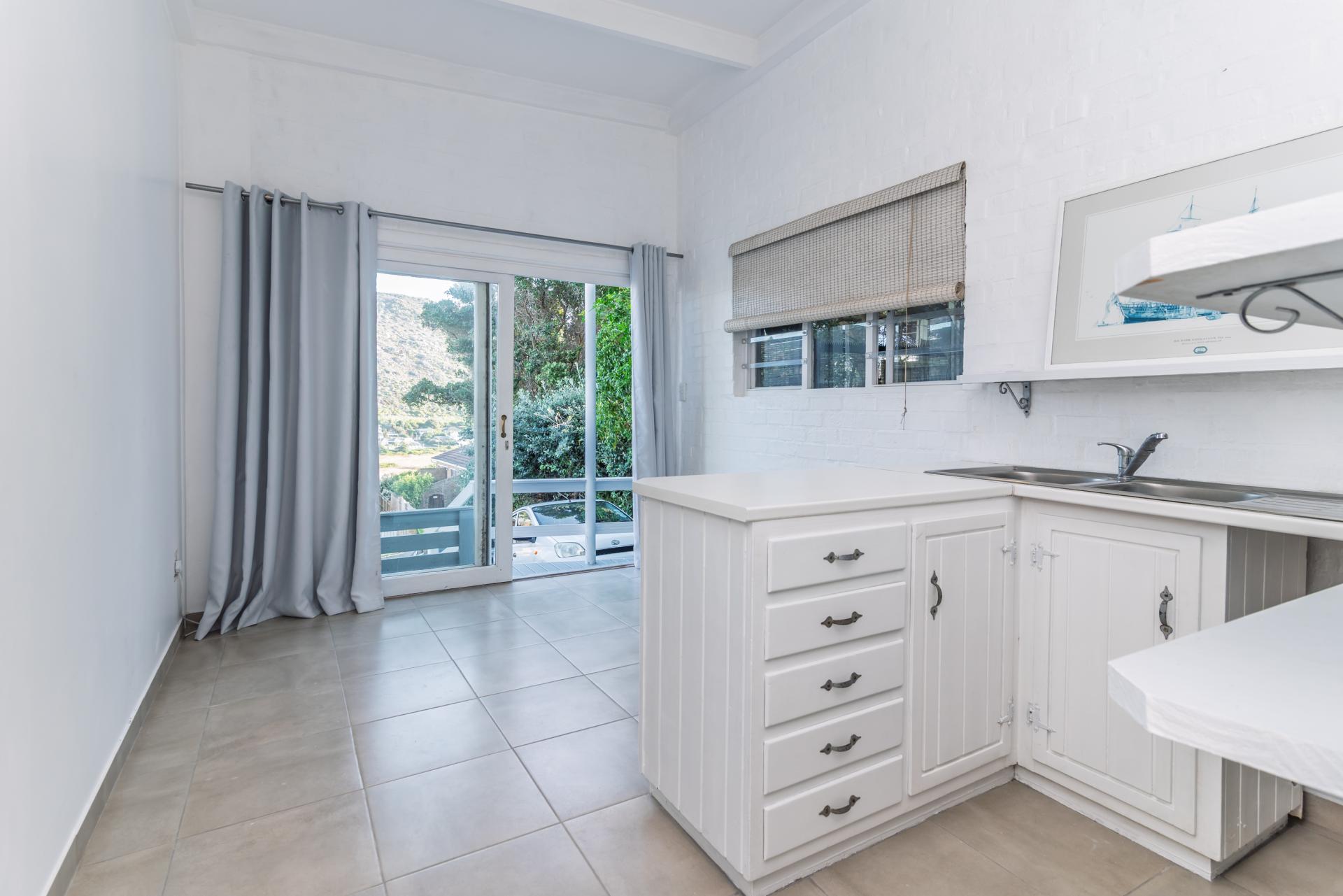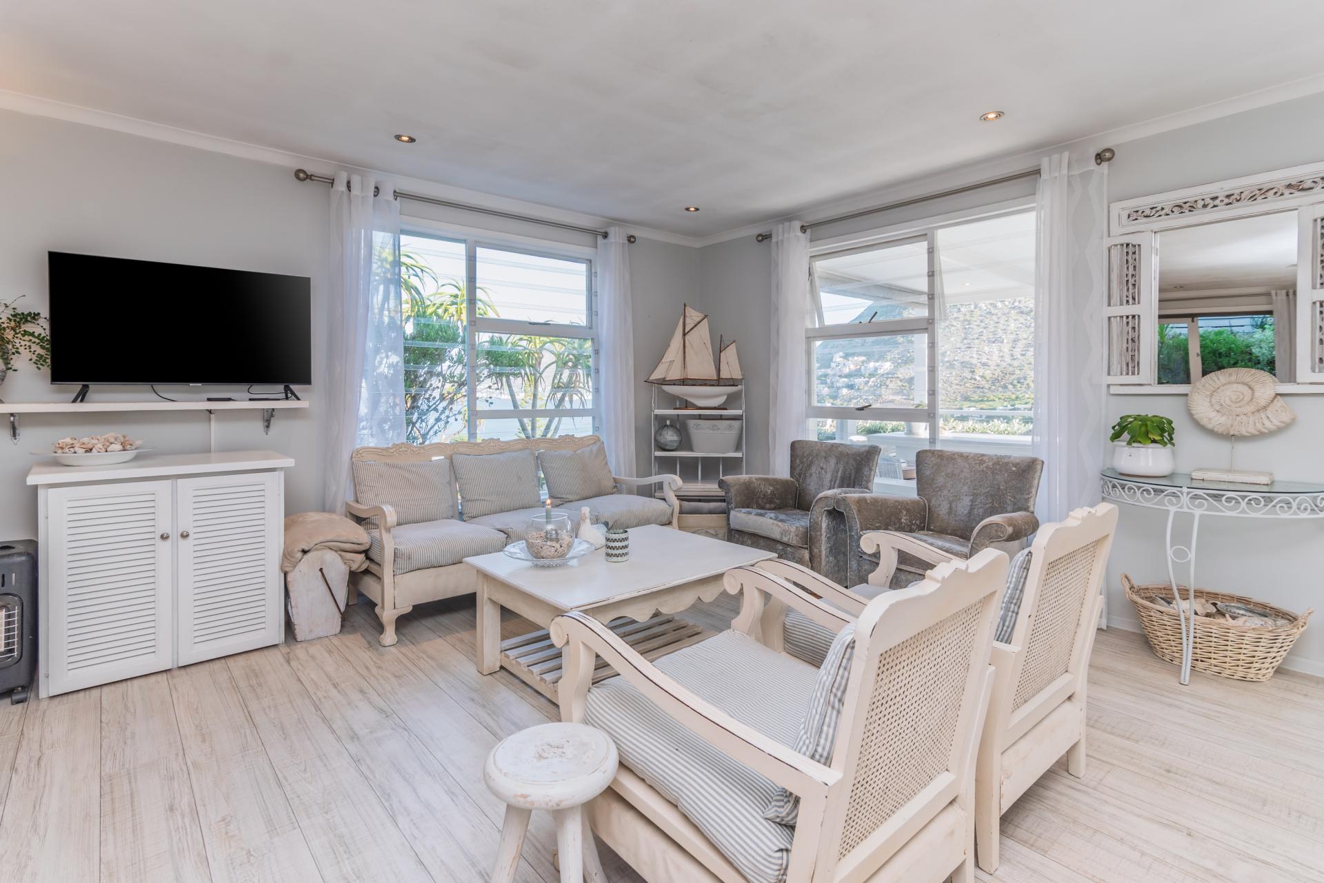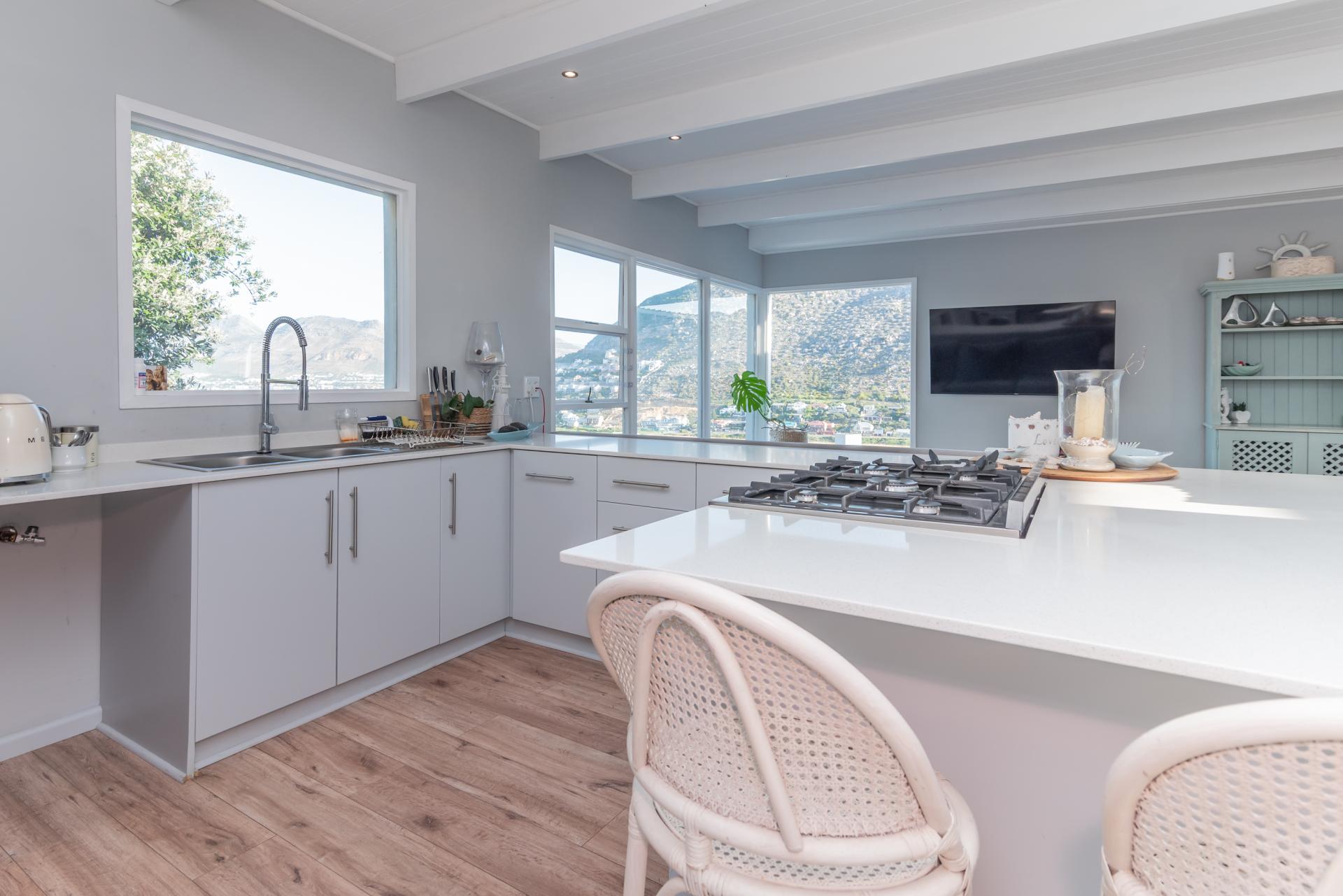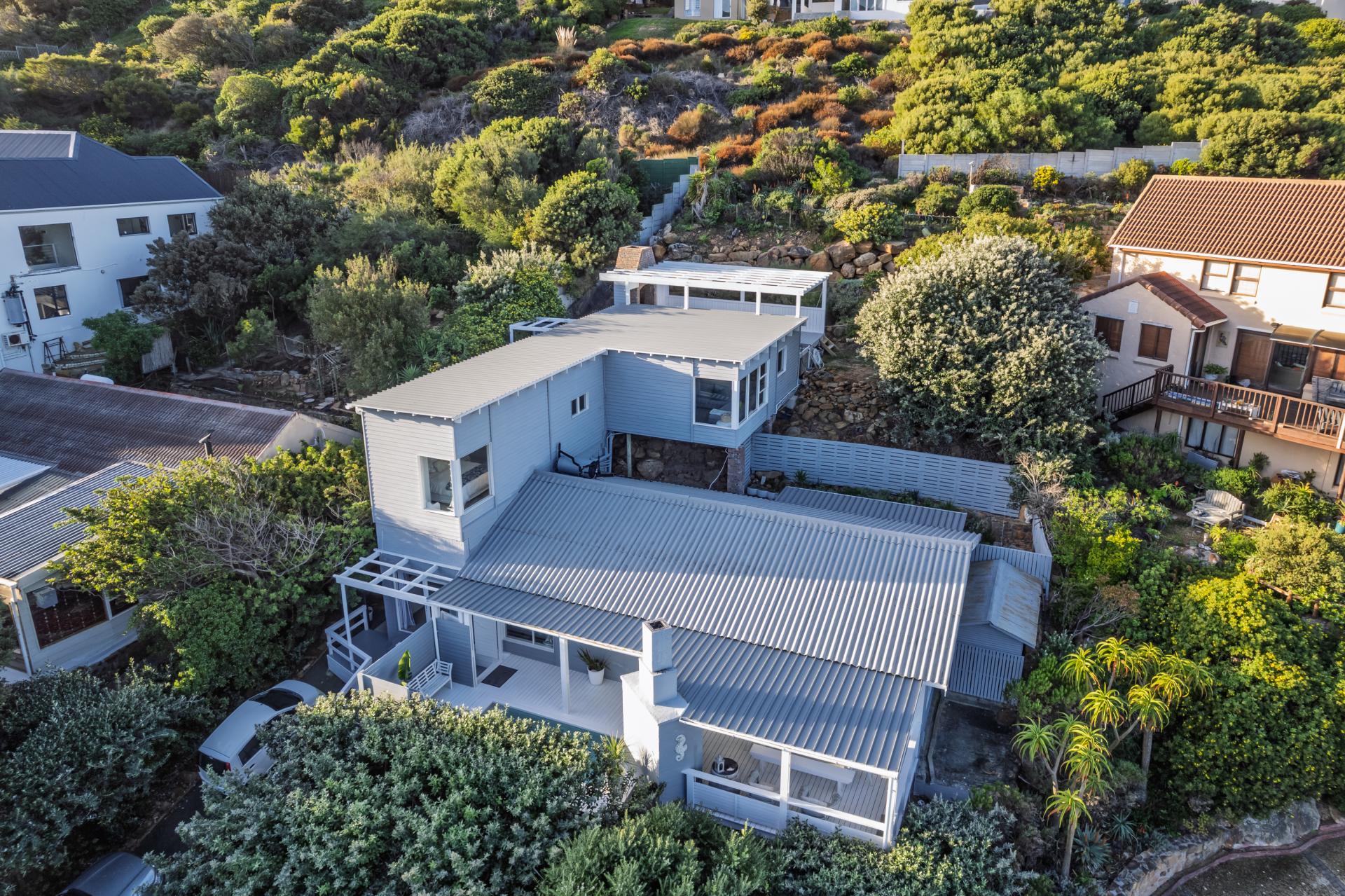 A winding staircase leads you to the front door, upon entering you have a bedroom on either side, both with built in cupboards, a few steps further and you are again greeted by magnificent sea views from the open plan kitchen to the huge corner window in the lounge. A fully fitted kitchen, stone counter tops and stove. A short passage leads you to guest cloakroom, followed by a full family bathroom and master bedroom with lots of cupboards and breathtaking views to wake up to. Sliding doors from the kitchen lead you to a raised wooden deck with a pergola and built-in braai and garden.