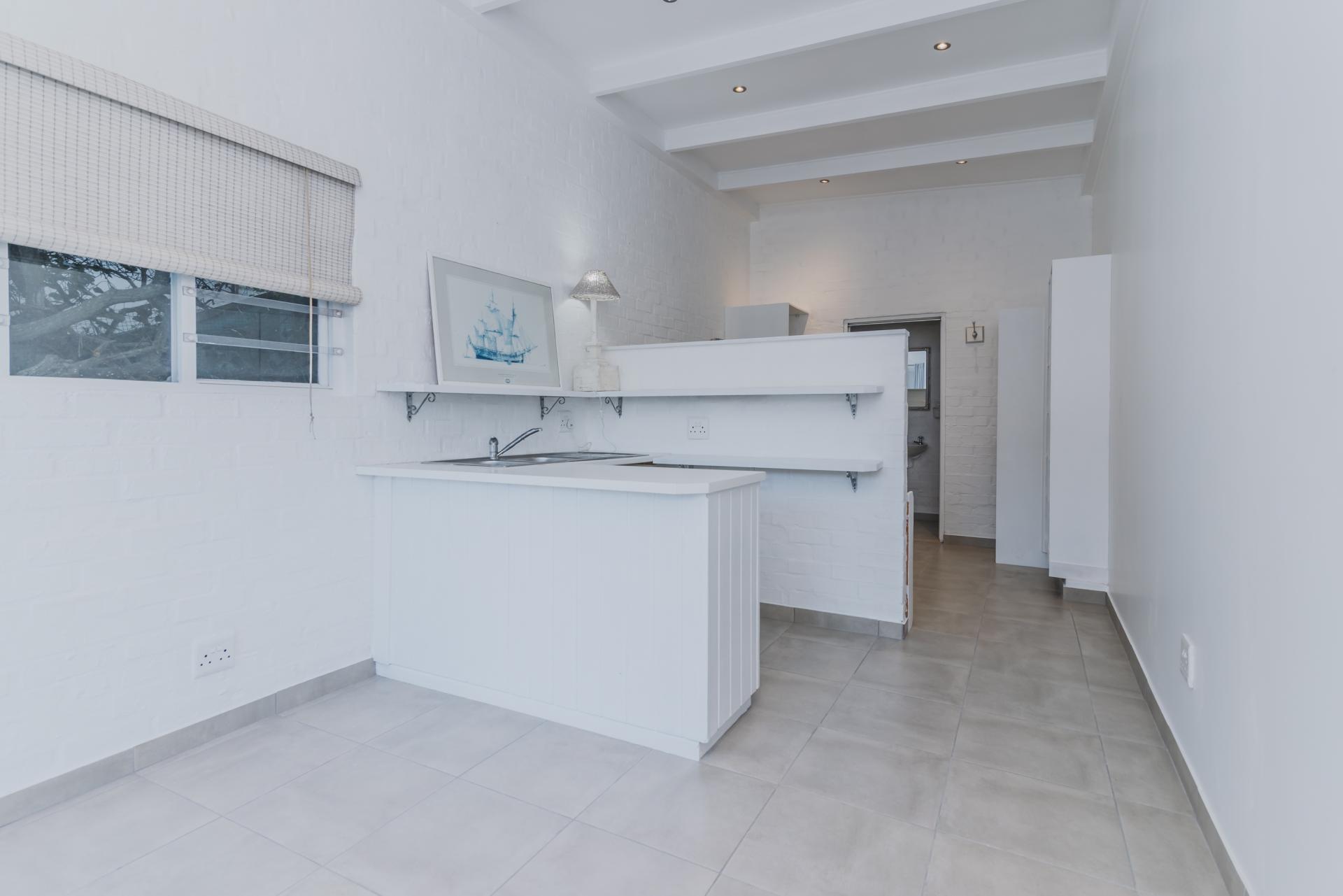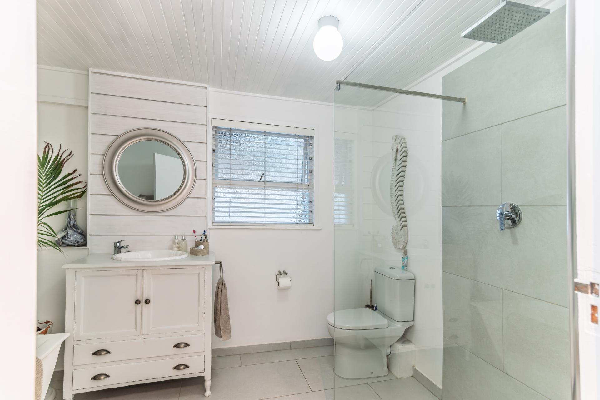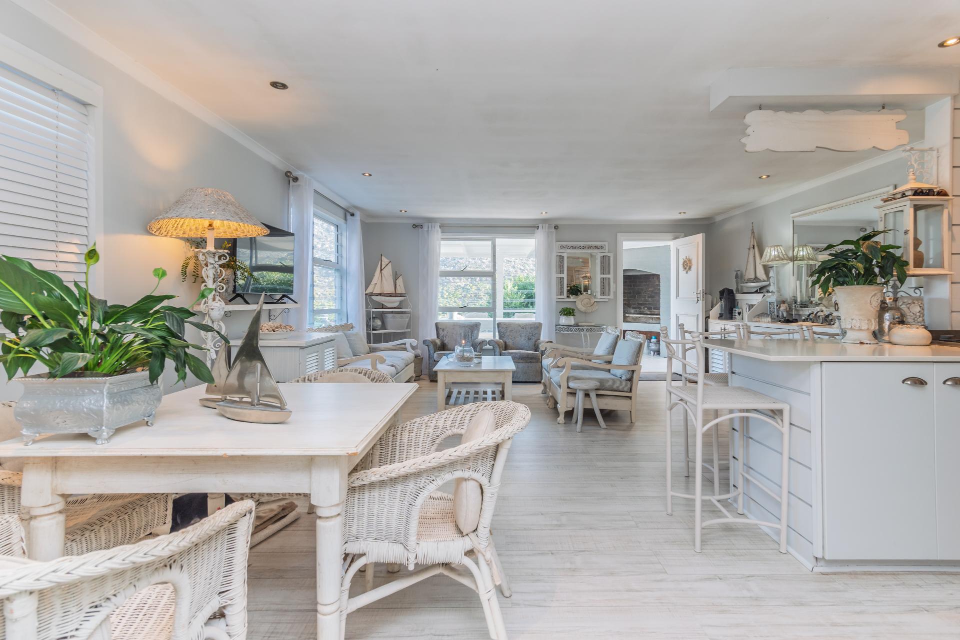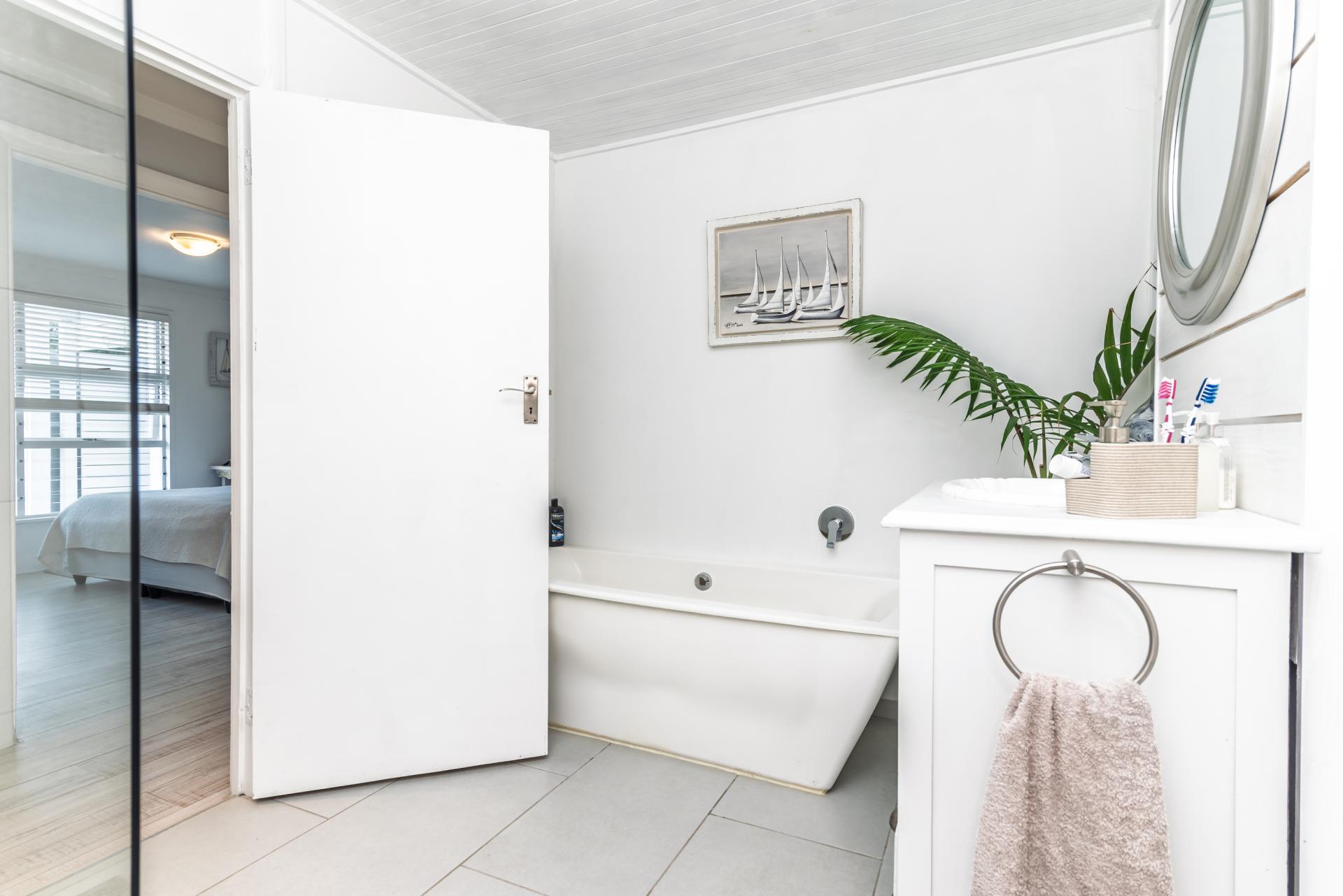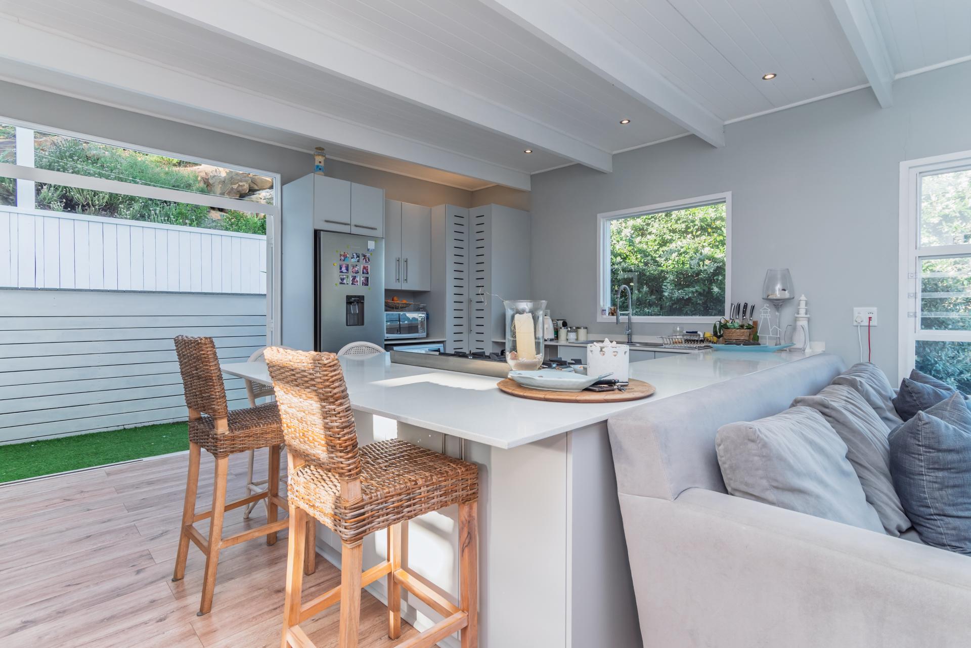 Entering through double doors onto white wooden decks, you are immediately welcomed by the sea views and gorgeous wind protected splash pool. A few steps further covering your front door, is a covered deck with an entertainers size built-in braai. A tranquil lounge open to a beautifully fitted kitchen complete with stone counter tops and stove, seamlessly flows into the dining room which opens to a pretty back garden and outside storeroom. Two double bedrooms, share a full bathroom, the master bedroom has a walk in dressing room.