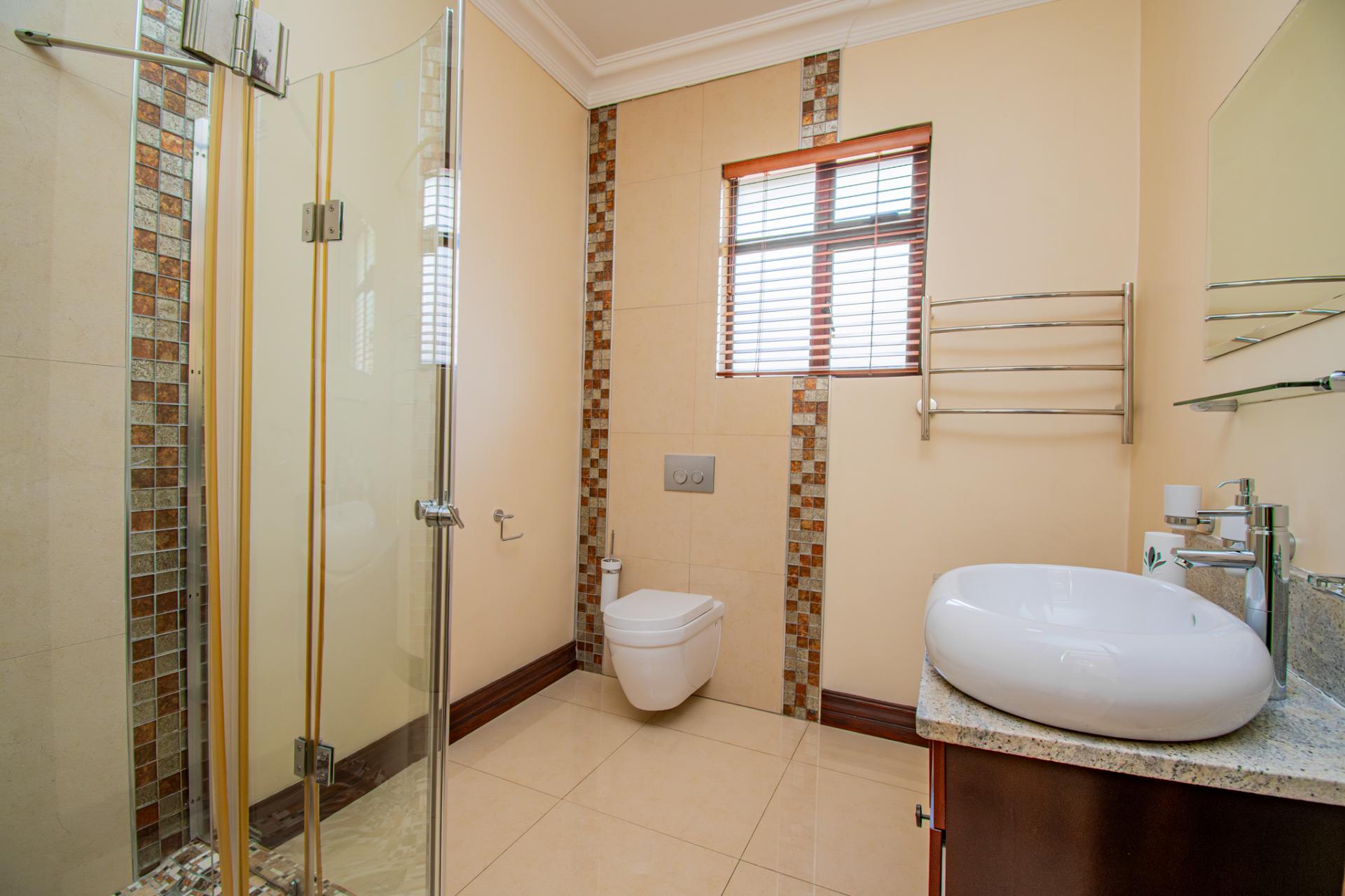 Scenic Views: Enjoy breathtaking views of Waterkloof Ridge from the multiple balconies and terrace areas. This home is designed to connect its residents with the natural beauty that surrounds it.