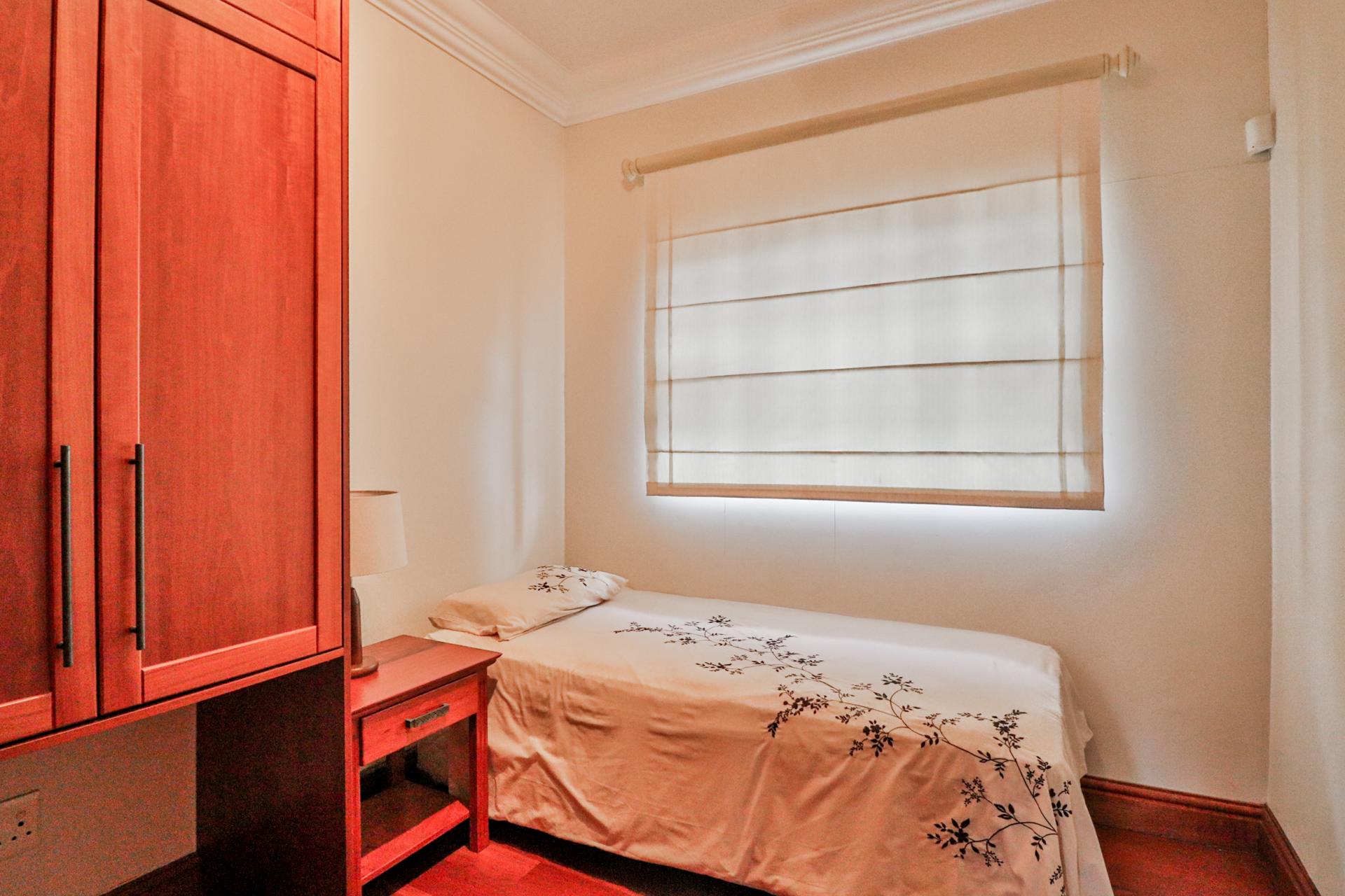 The French-inspired kitchen and pantry feature Italian-imported granite countertops, a 5-burner gas hob, and a built-in microwave, perfectly blending style and functionality.