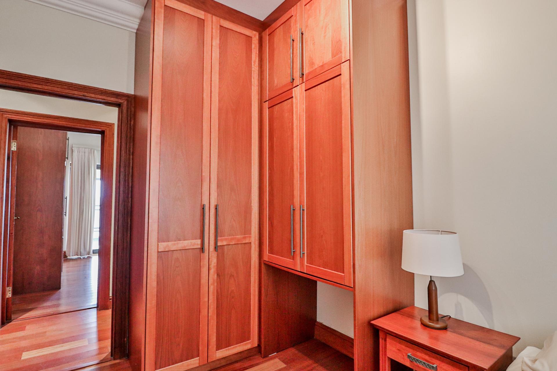 The entire upper level is finished in exquisite imported Rhodesian Rosewood flooring. The open-plan design flows seamlessly, with stackable glass doors creating a natural connection between indoor and outdoor living. The dining area accommodates a 12-seater table with ease, while the lounge enjoys views over the entertainment area and beyond.