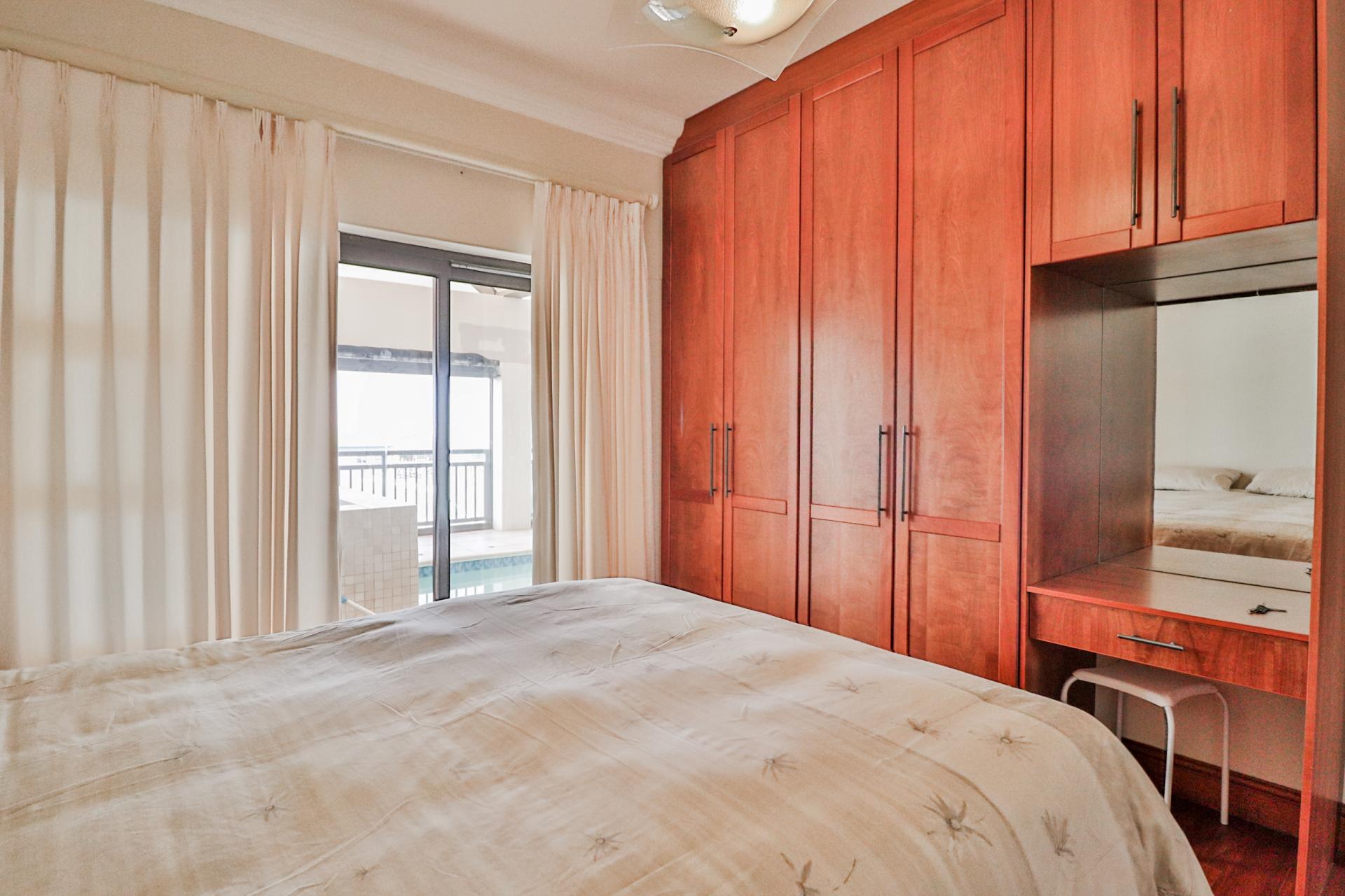 The main suite offers a walk-in closet, lagoon views, and a luxurious en-suite bathroom with an oversized shower. A second master suite mirrors this layout with a slightly smaller bathroom. Two additional bedrooms are served by a well-appointed family bathroom, while a separate study can easily function as a single bedroom if needed.