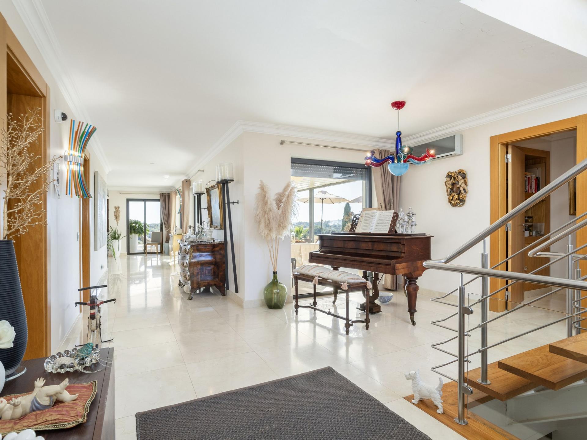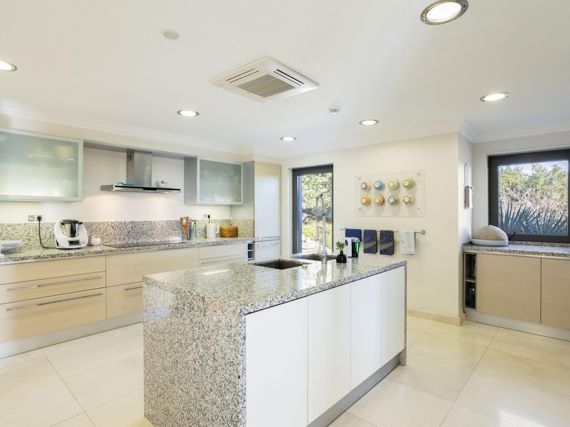 Equipped for modern comfort, the property features underfloor heating, centrale heating, reversable air conditioning in all rooms, solar panels for hot water, and self-sufficient water supply via a borehole and reservoir connection. Security is ensured with full fencing and a surveillance system.