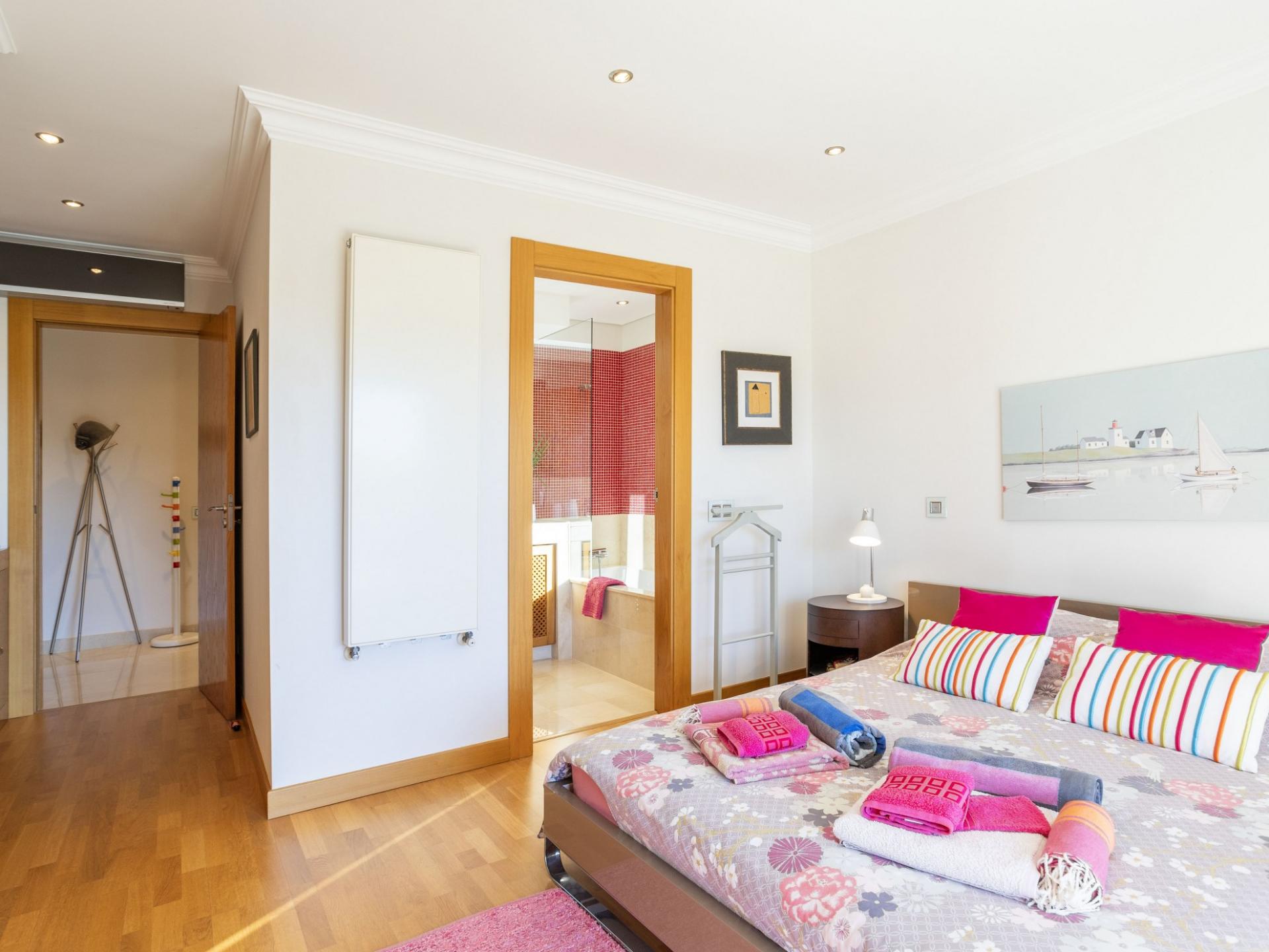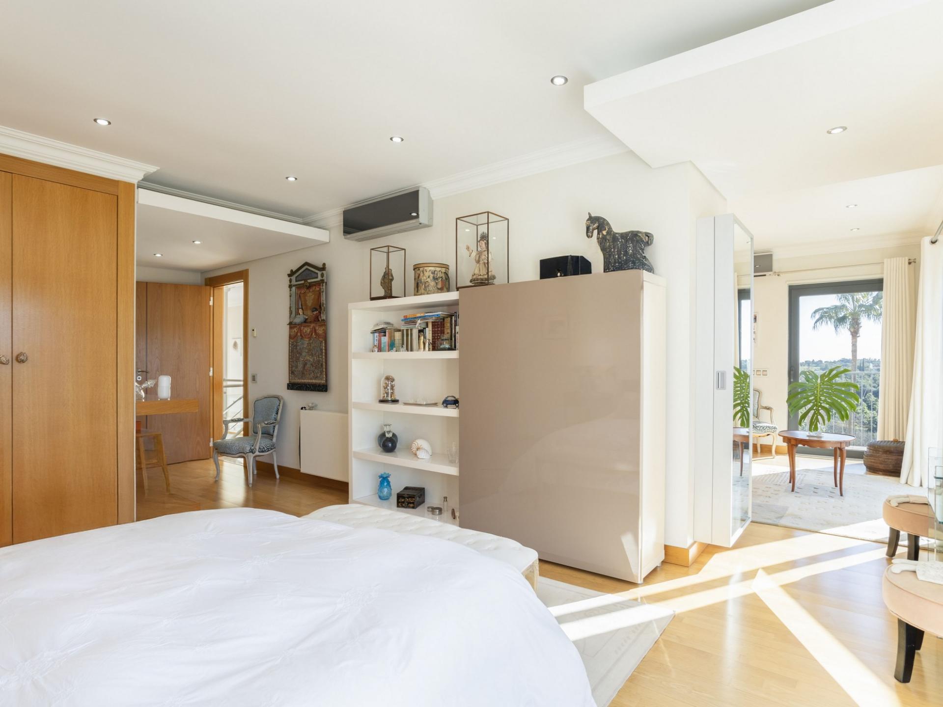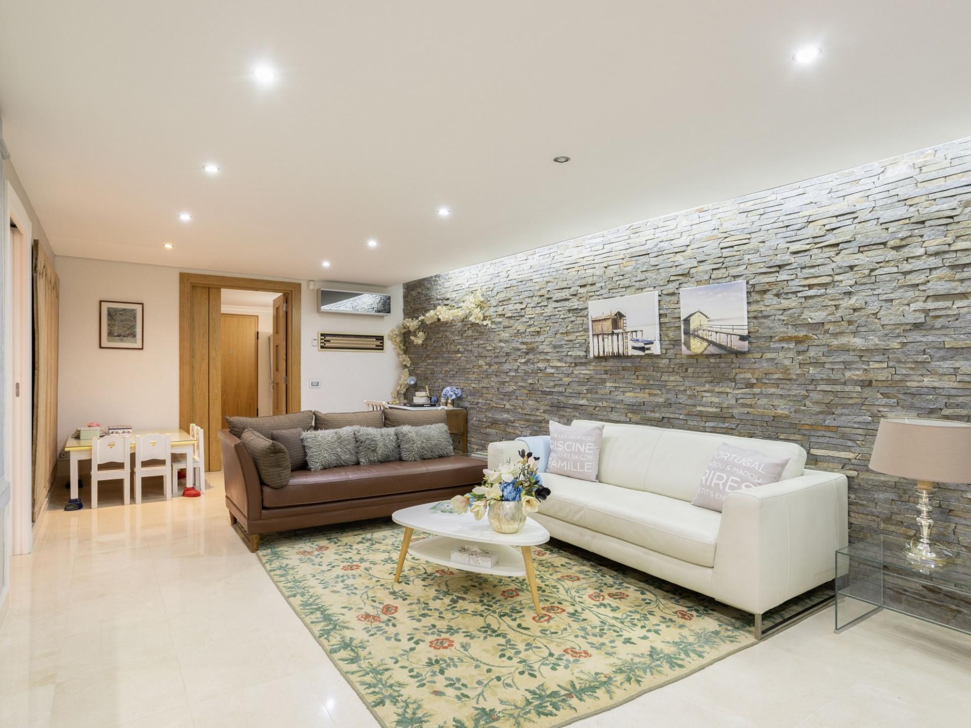 The first floor houses two spacious suites with wooden floors and private terraces, along with a luxurious 40 m² master suite featuring a sumptuous bathroom with a bathtub and shower. The basement offers additional space, including two children’s bedrooms, a bathroom, a TV room, a fully equipped laundry room, a wine cellar, and a secure garage for two vehicles.