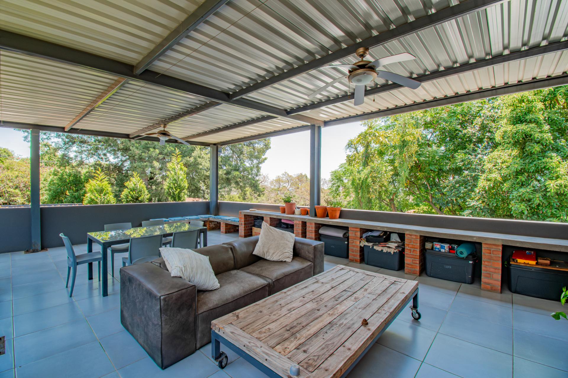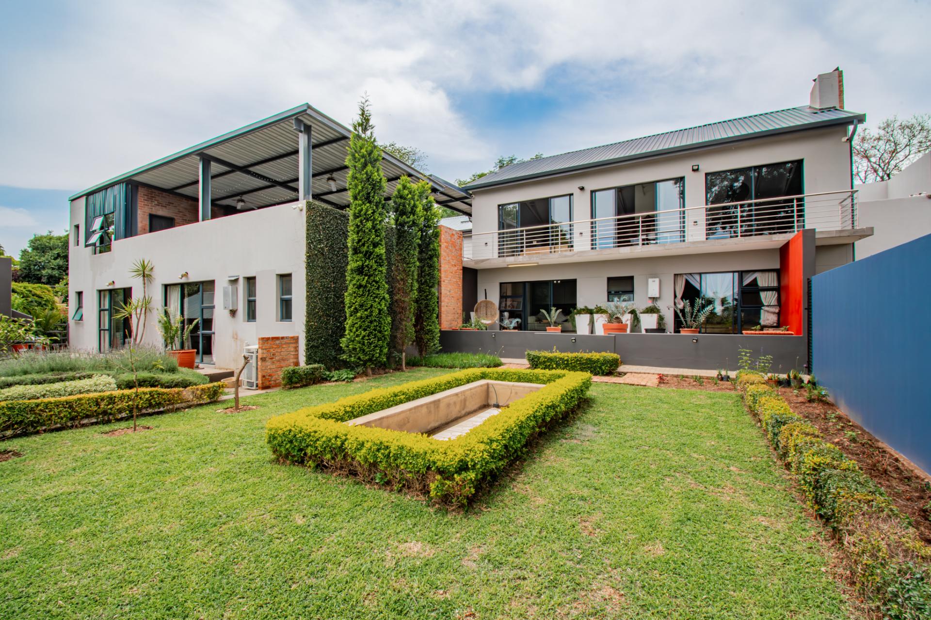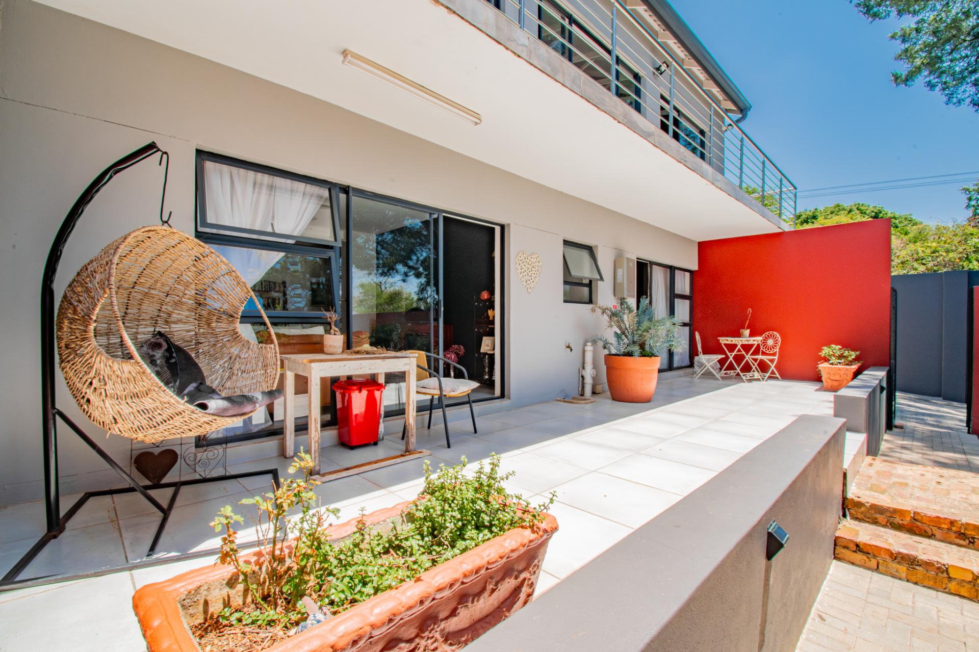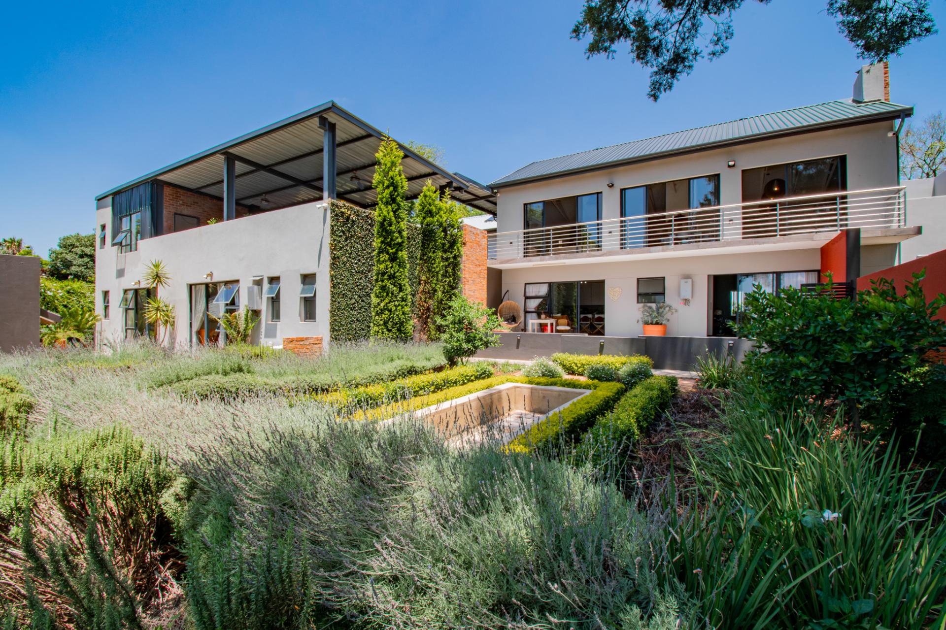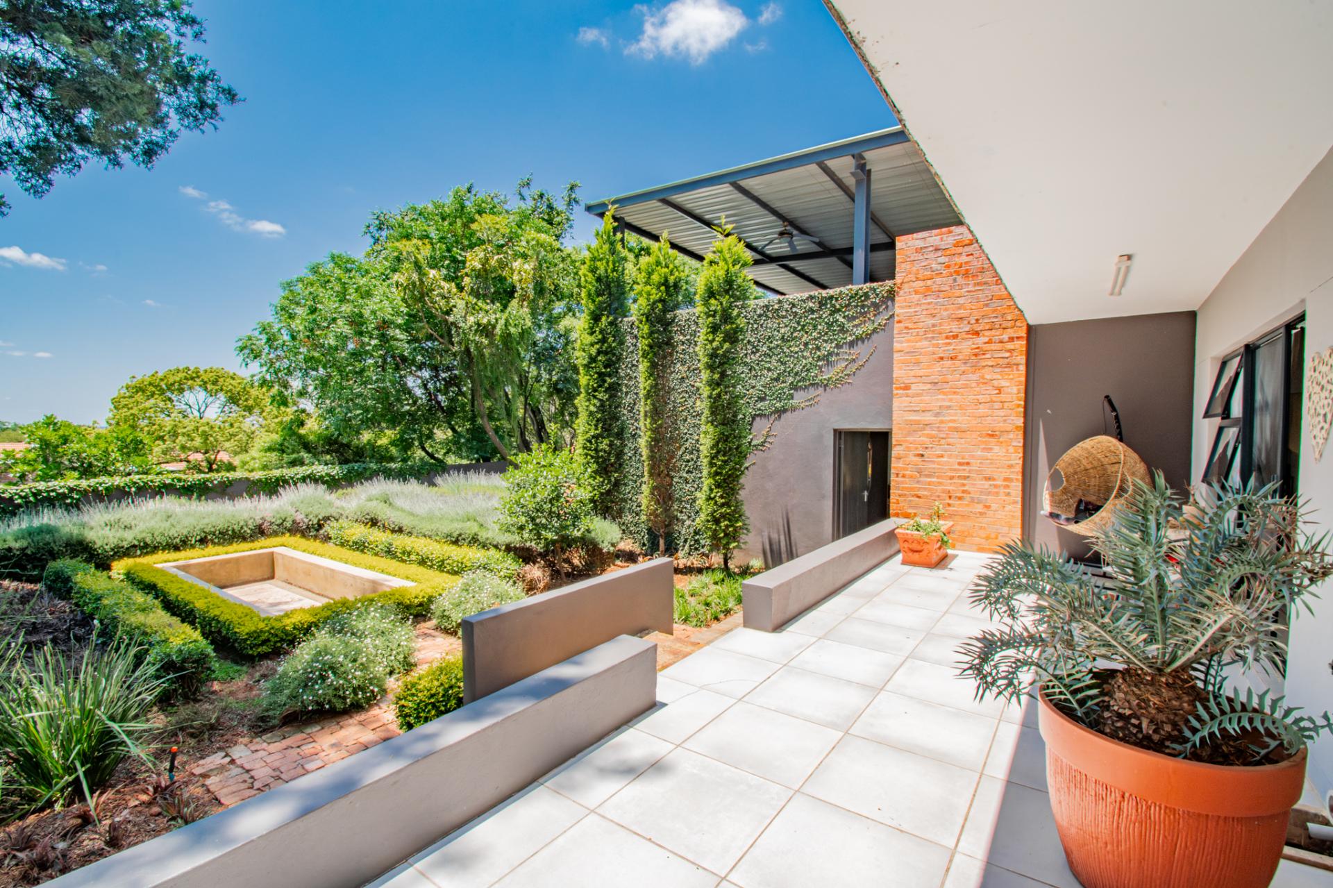Designed for effortless entertaining, the home boasts multiple outdoor living spaces, including a covered patio with a built-in braai—perfect for relaxed weekends and family gatherings and open air patios perfect for elegant evenings under the stars. A separate flatlet provides privacy and comfort for visitors, while the lush, established garden—shaded by mature trees—invites moments of peace and reflection.
