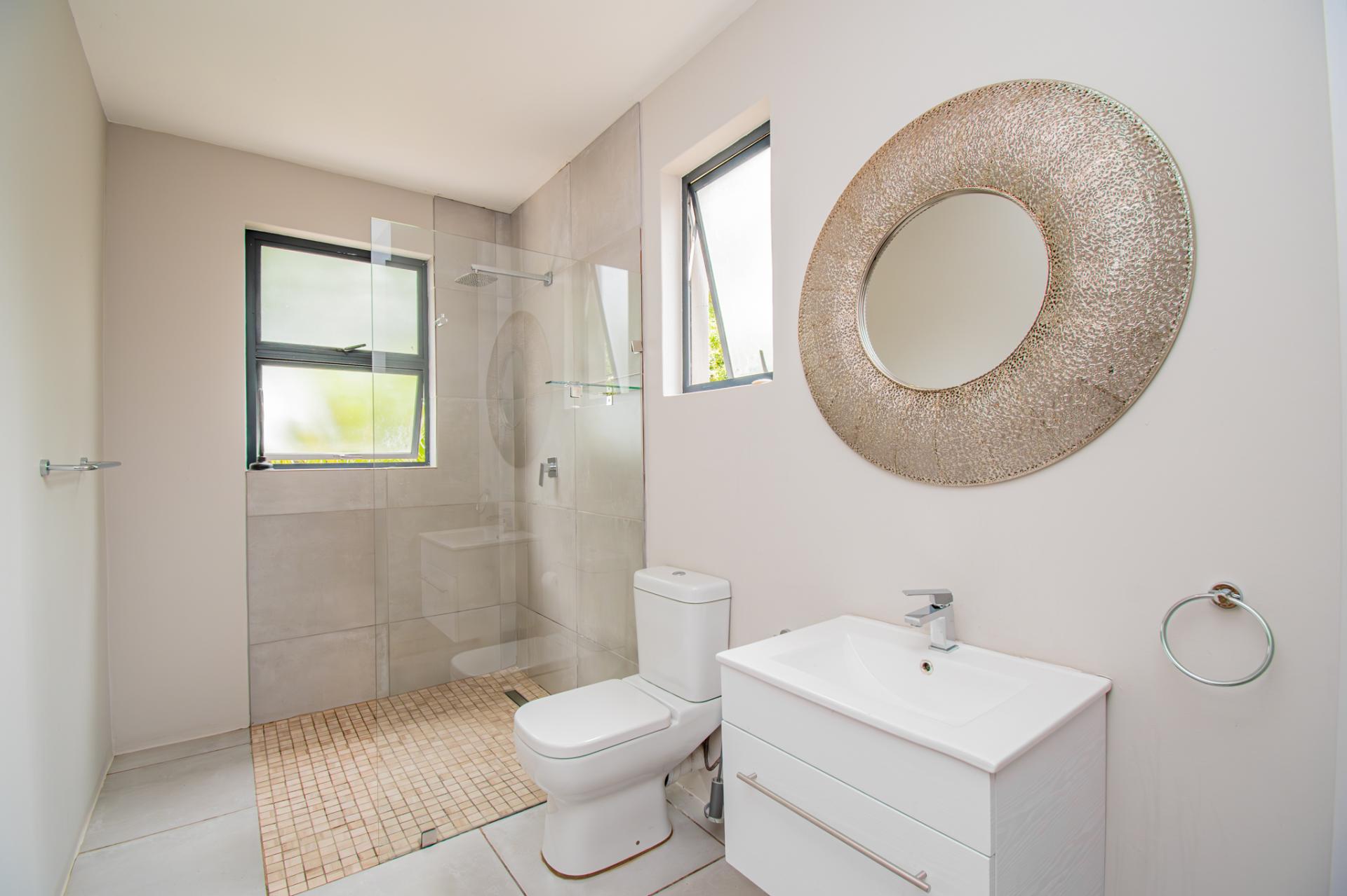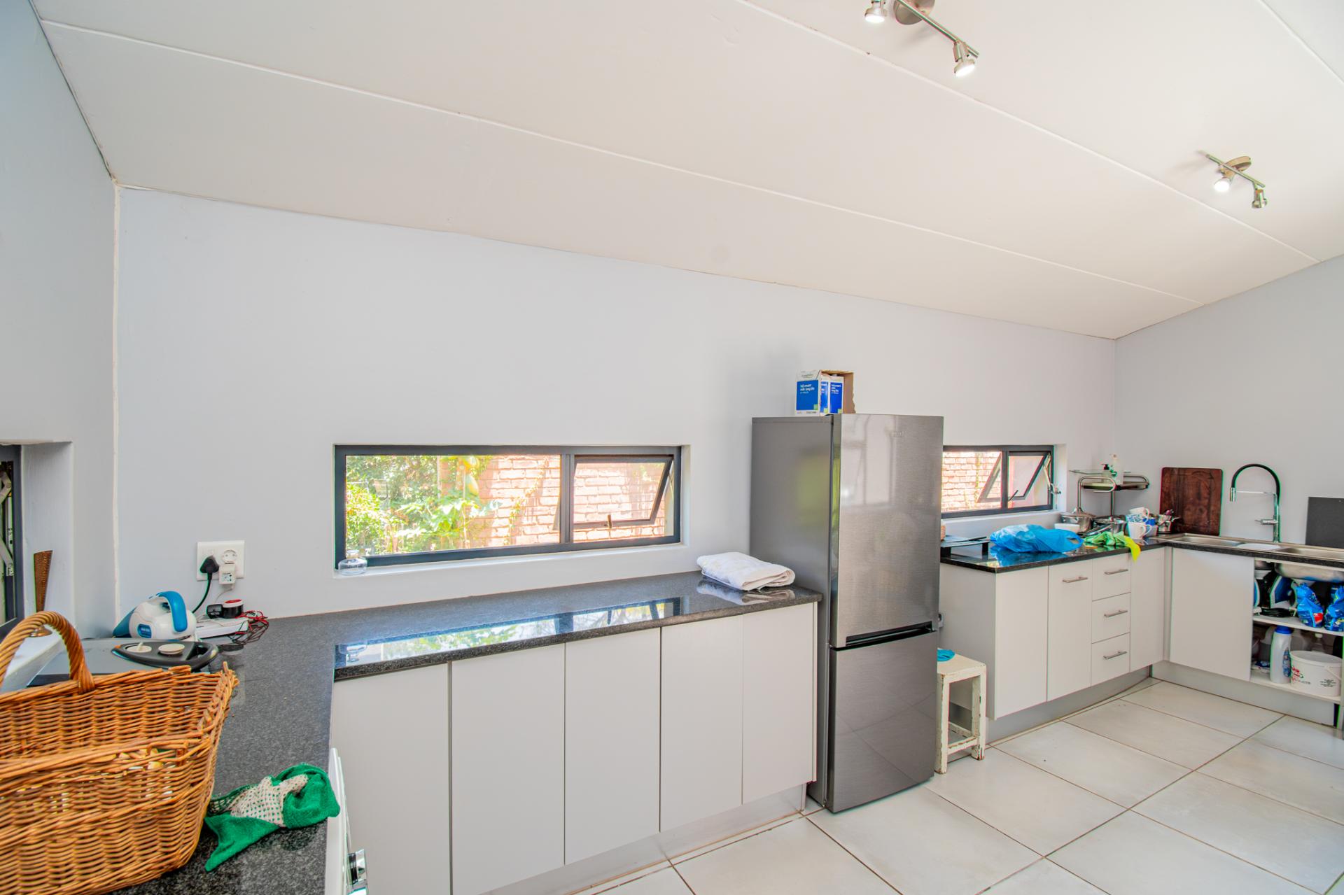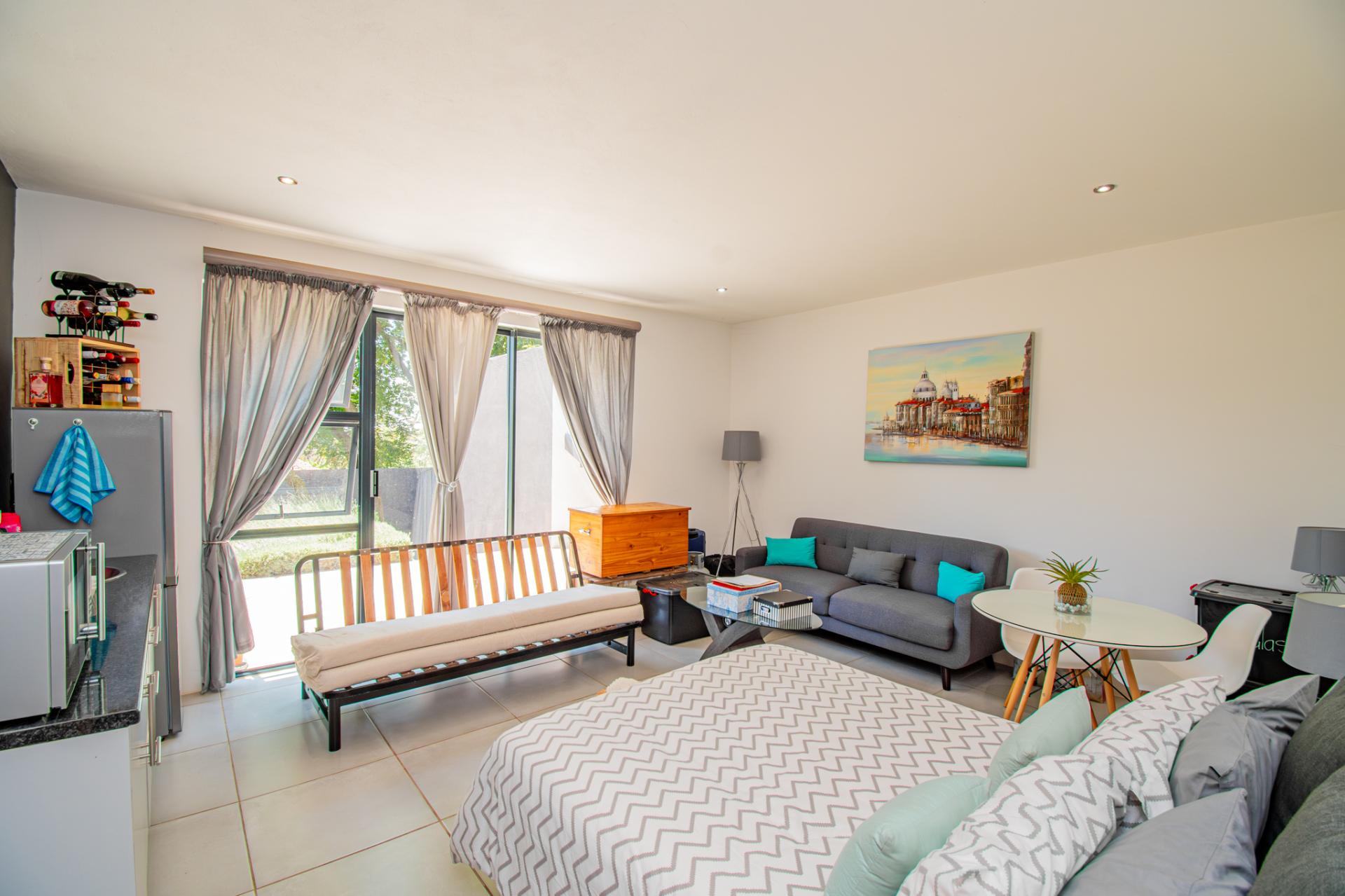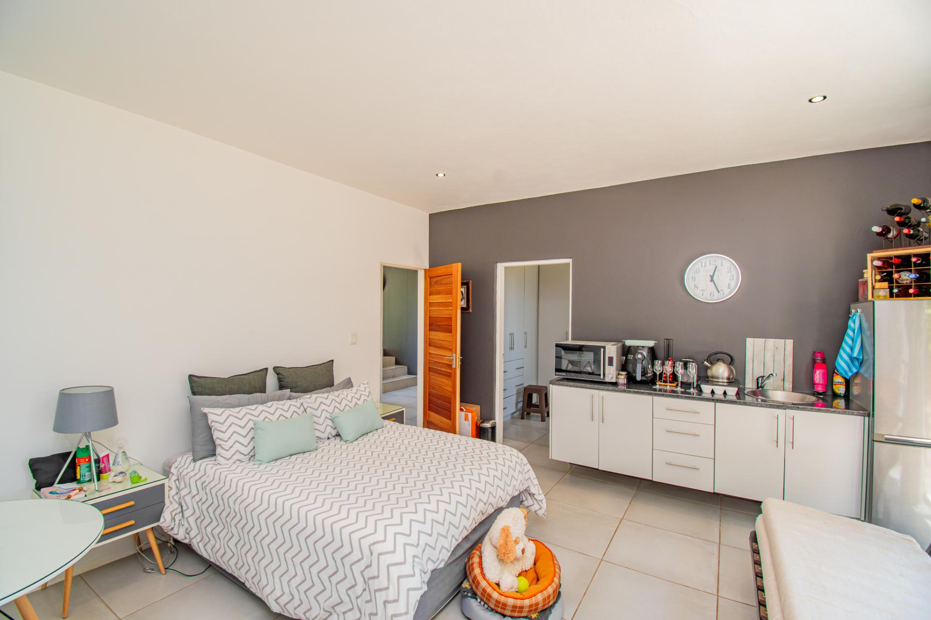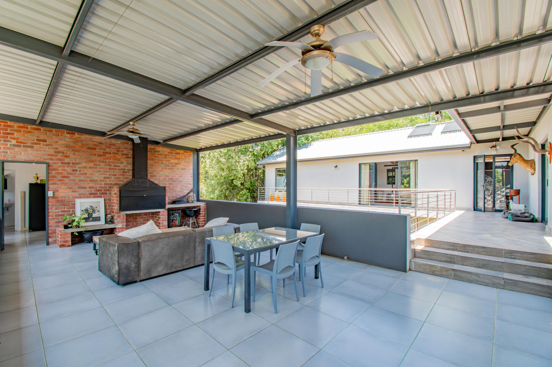 Designed for effortless entertaining, the home boasts multiple outdoor living spaces, including a covered patio with a built-in braai—perfect for relaxed weekends and family gatherings and open air patios perfect for elegant evenings under the stars. A separate flatlet provides privacy and comfort for visitors, while the lush, established garden—shaded by mature trees—invites moments of peace and reflection.