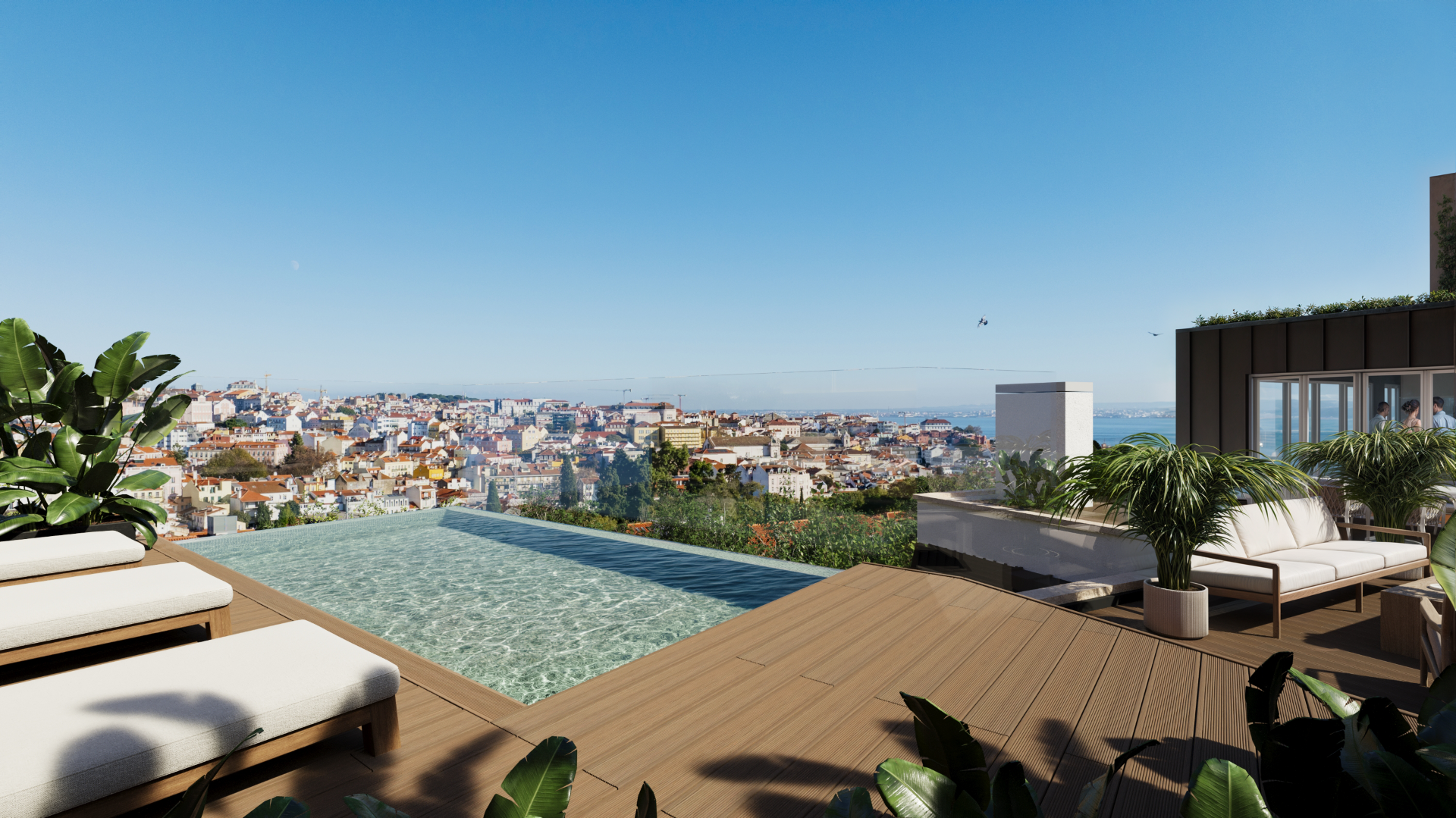 With 1,250 m² of built area spread over three floors, this palace offers a world of possibilities. Private gardens, swimming pool, gym, a stunning rooftop with a second pool, leisure area and panoramic views over Lisbon - everything invites refinement and contemplation.