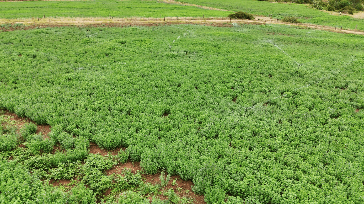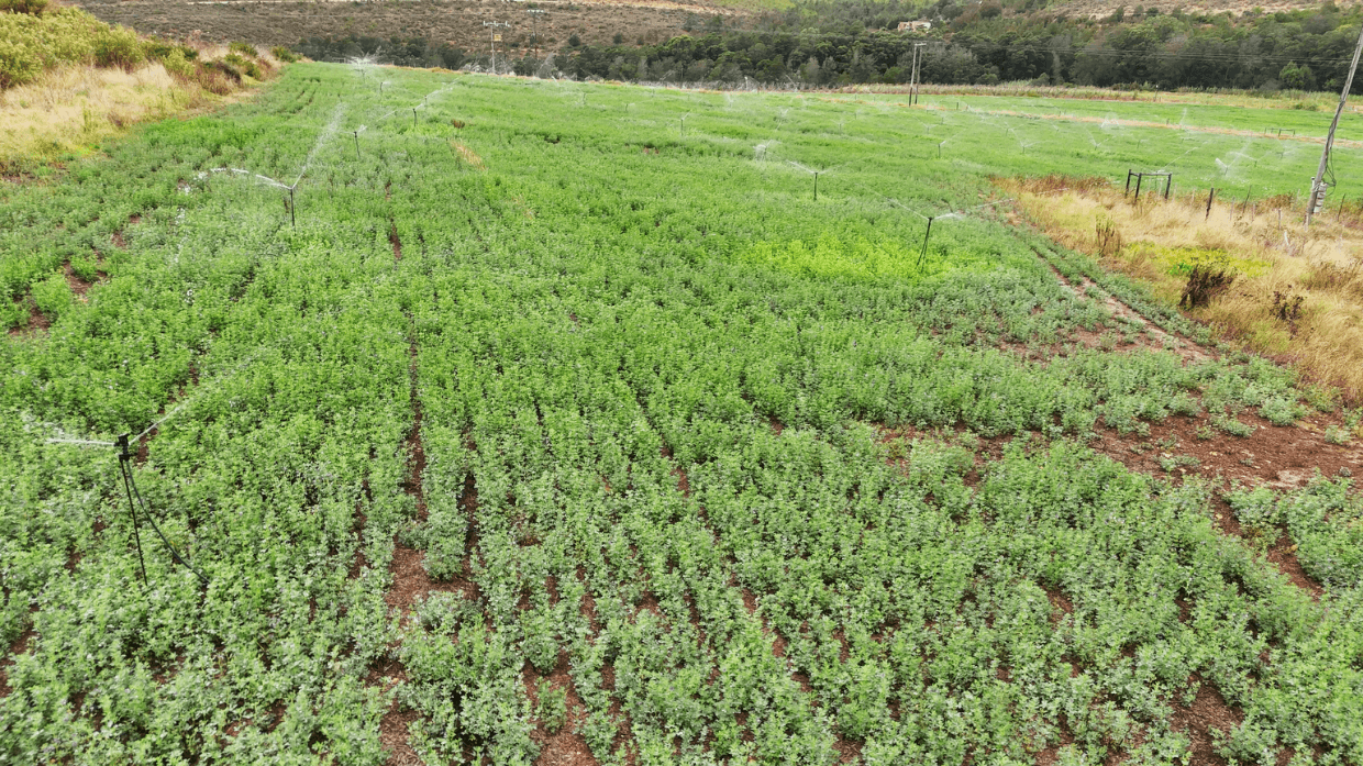 The pivot irrigates a 5-hectare circle