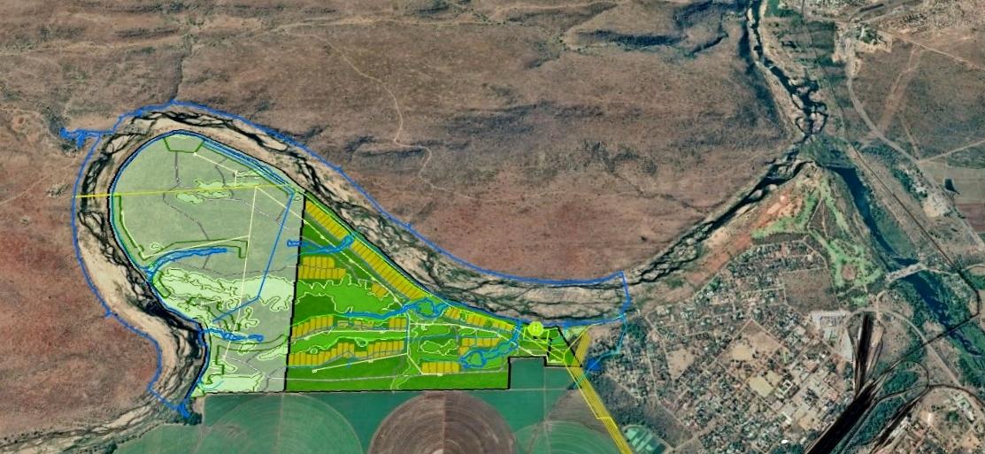 The Record of Decision (ROD) is in place, permitting a safari lodge with 150 beds, spa, curio shop and ancillary uses. More specifically: a 4-star, 150-bed development. Maximum Height 1 storey (4m). Maximum Coverage 50% of rezoned area.