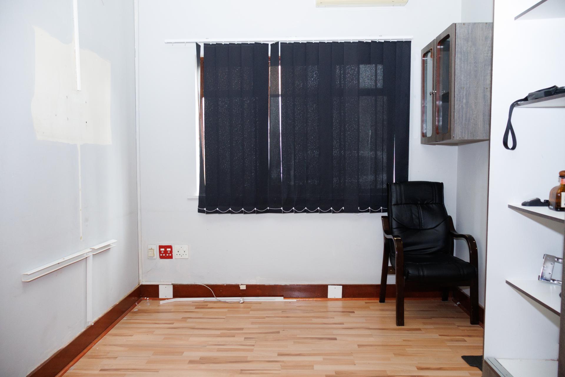Large separate office with kitchenette and bathroom.