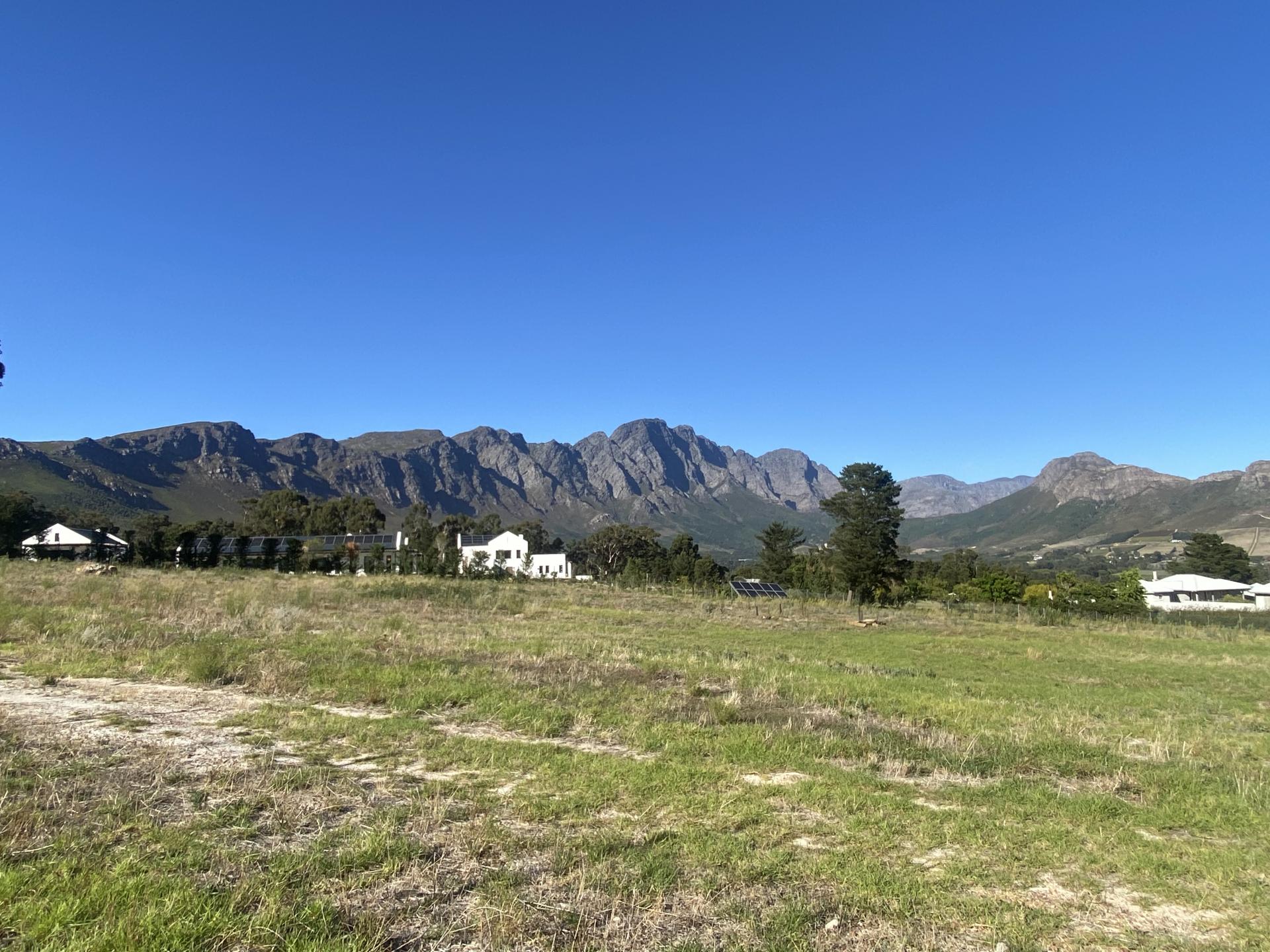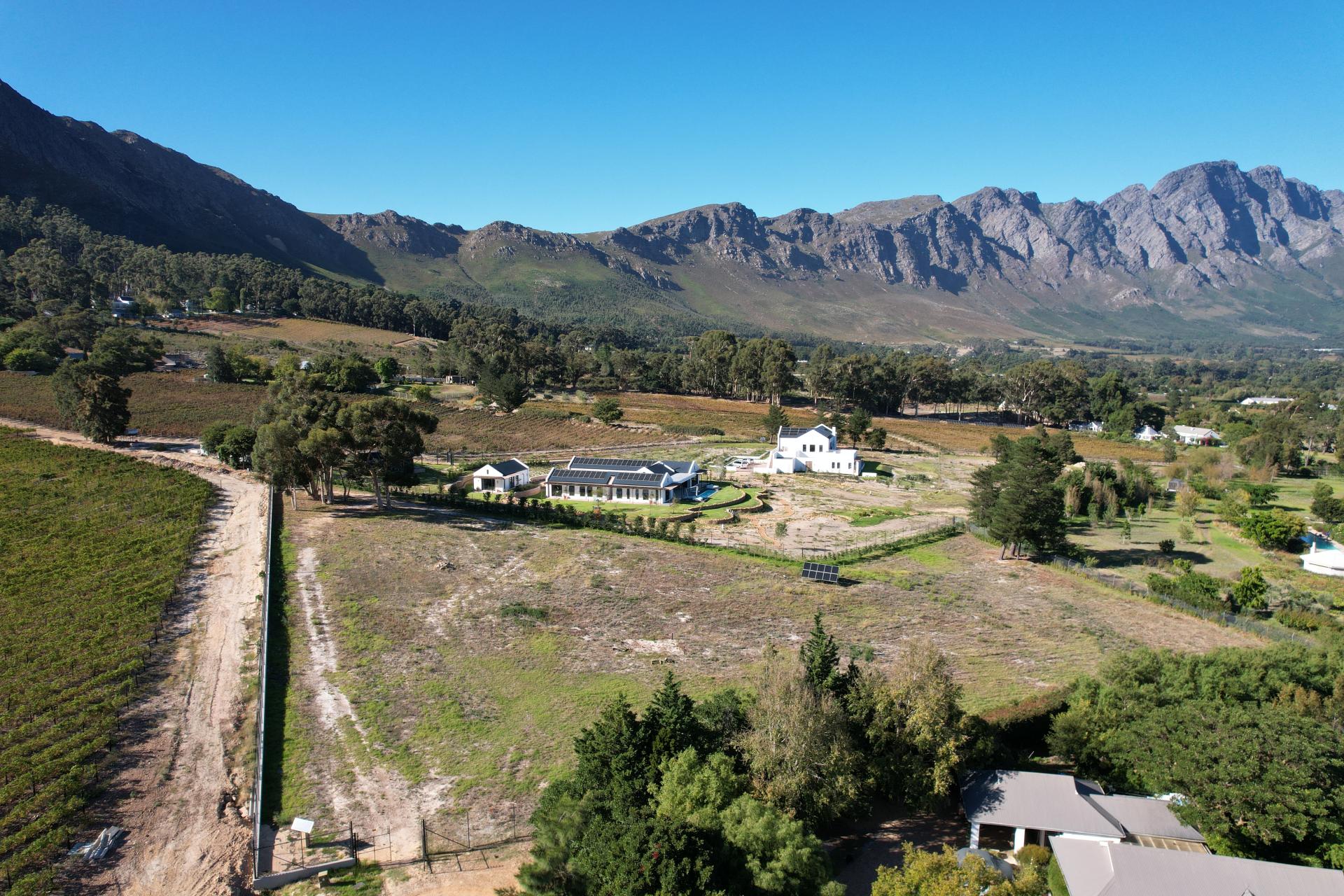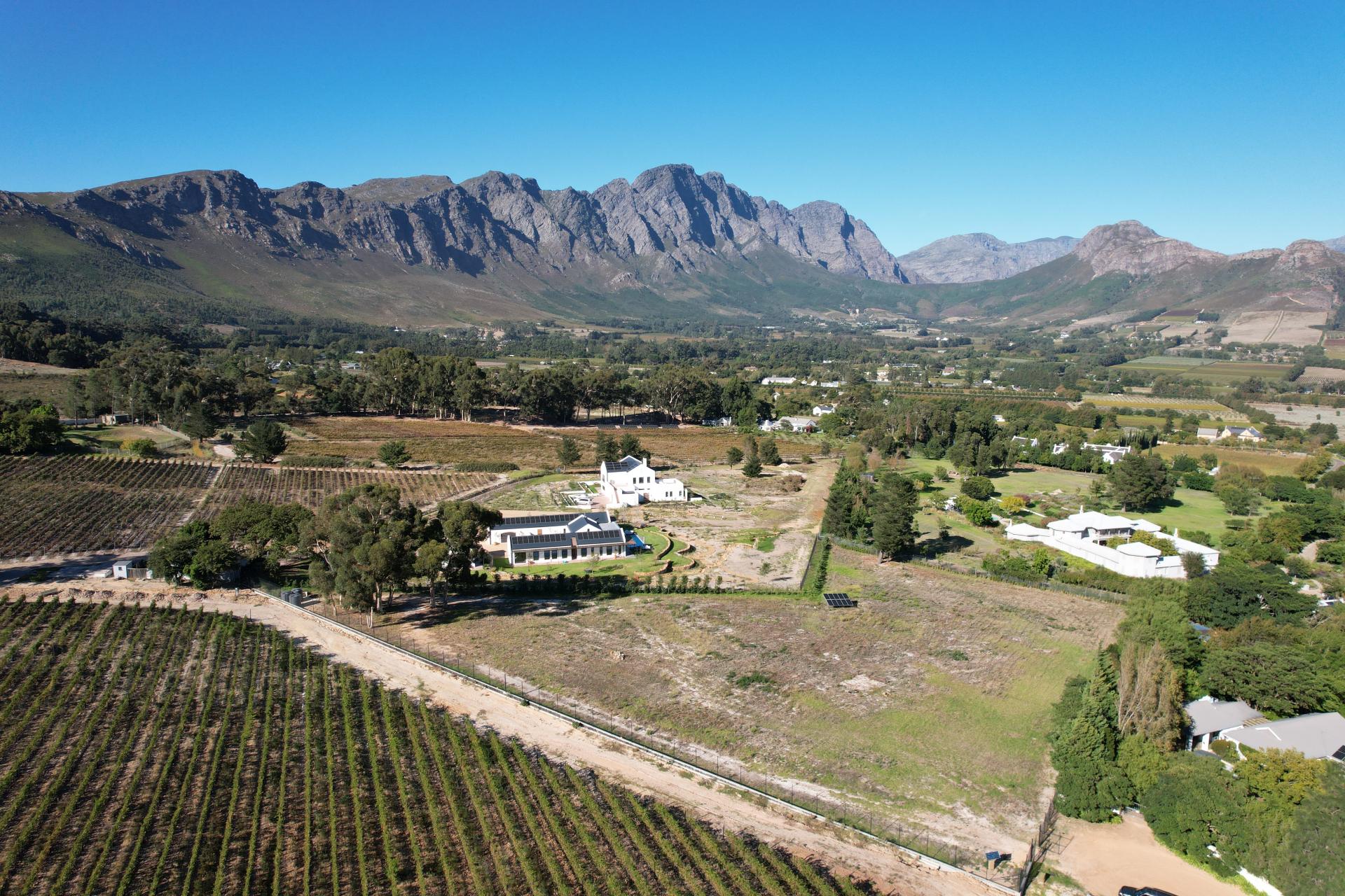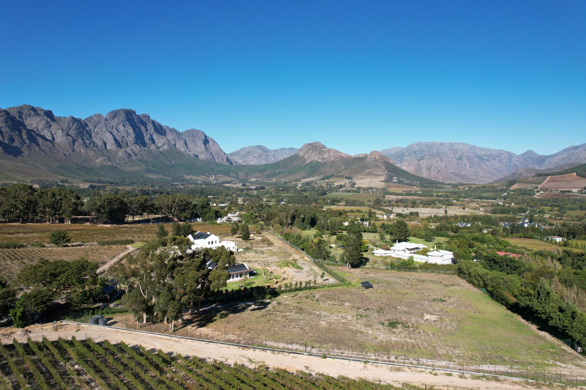 Views, views and Location. A unique opportunity to own a rarely available elevated one hectare plot with breathtaking views across the valley and gorgeous mountains as a backdrop. Nestled on the lower slopes of the Franschhoek Mountains with smallholdings and wine farms as neighbours this beautiful portion of land offers a rural secluded but secure lifestyle within easy walking distance to Franschhoek village. The ideal canvas on which to build one or two dwellings. Includes fully fenced boundary and borehole.