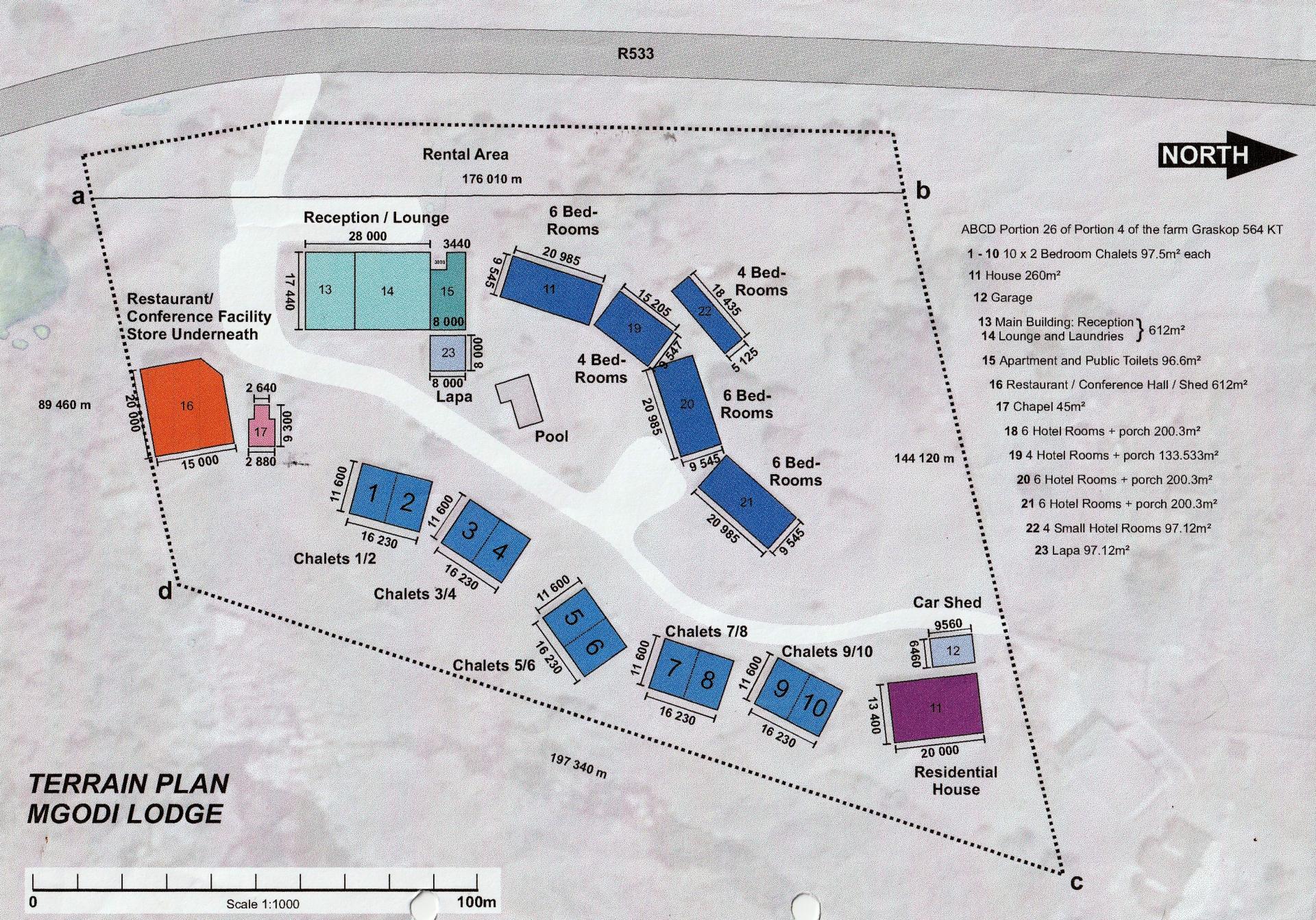 Encompassing 3.3214 hectares of perimeter-fenced land, the complex features 18 chalets, 22 hotel rooms, 4 backpacker rooms, a fully equipped restaurant (with a liquor license), a conference room, a chapel (suitable for weddings and events), a lapa, and a swimming pool. An average occupancy rate exceeding 50% speaks to the property's proven success.