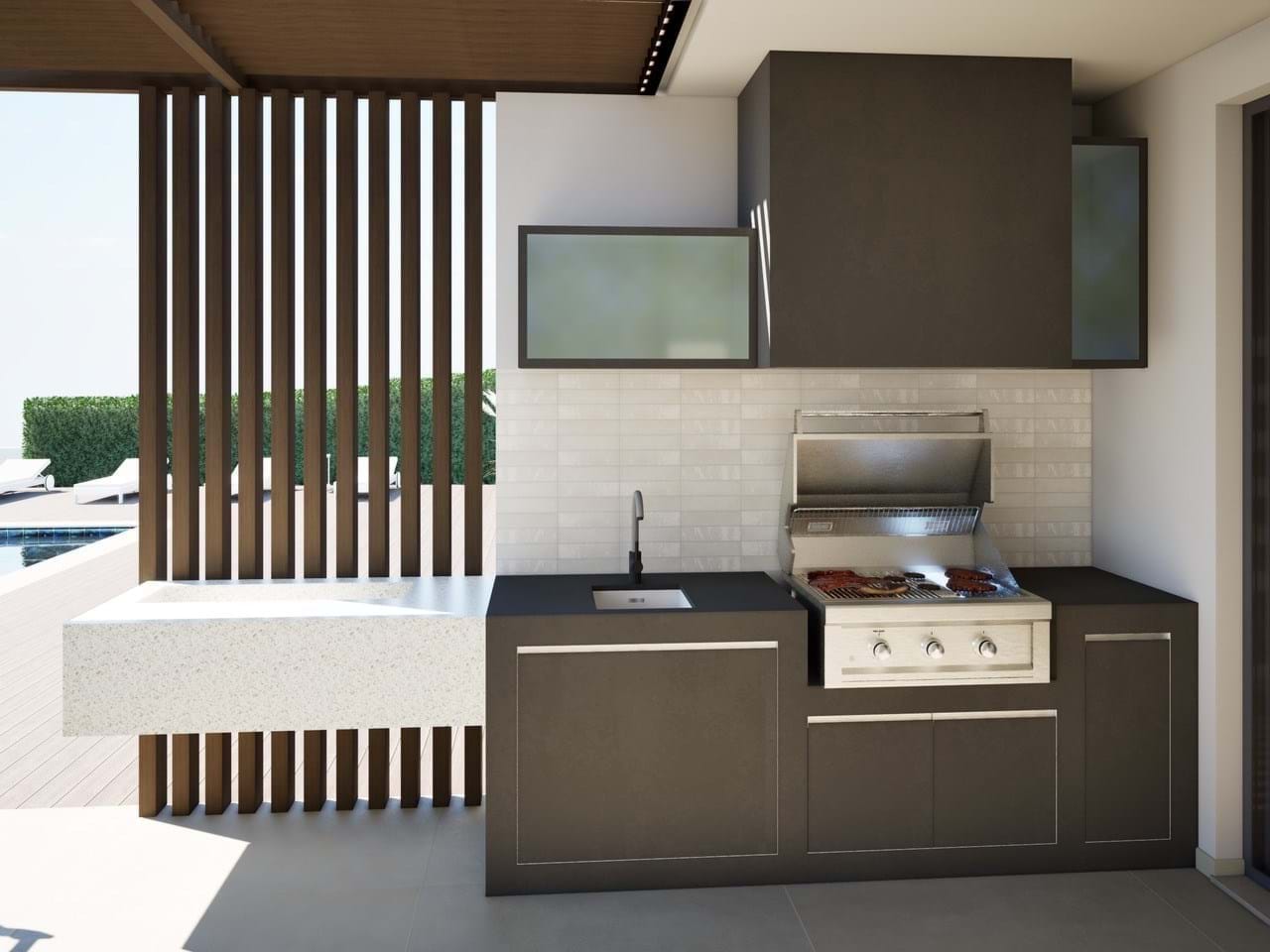 - Premium Bosch kitchen appliances and Grohe chrome faucets.