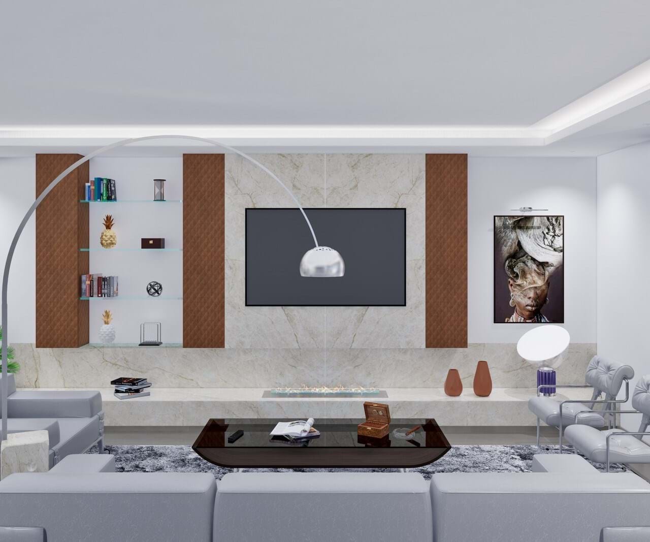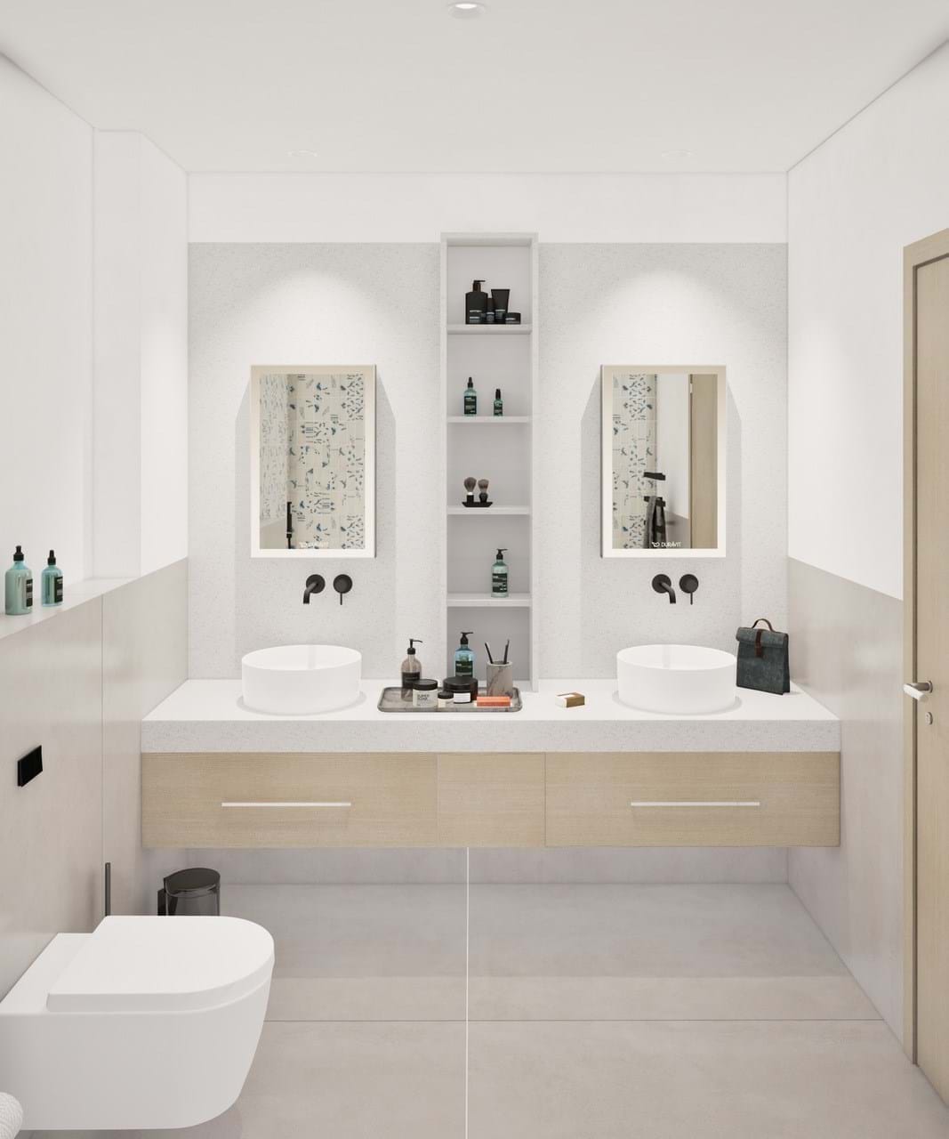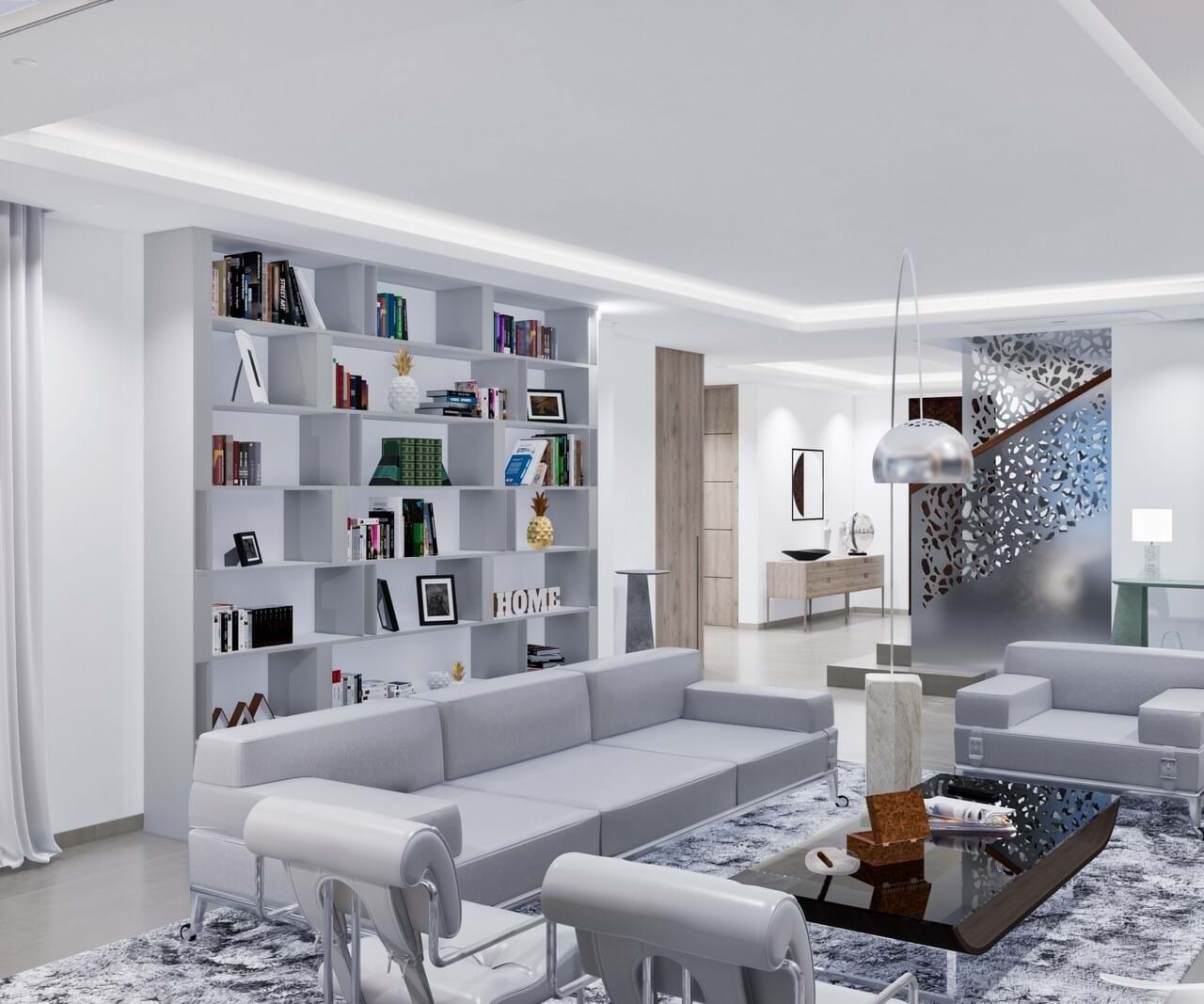 - Matte white lacquered carpentry.